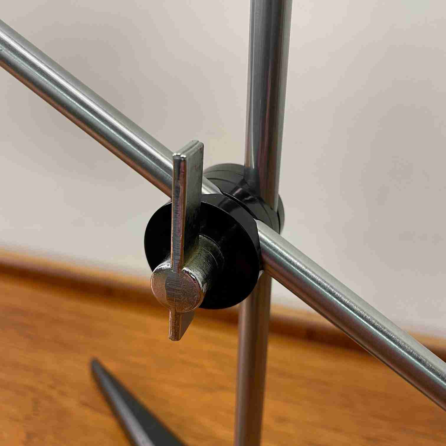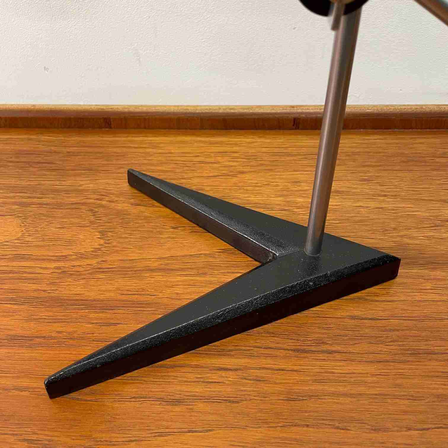 brushed steel stem and arms with painted aluminium shade and black painted steel base