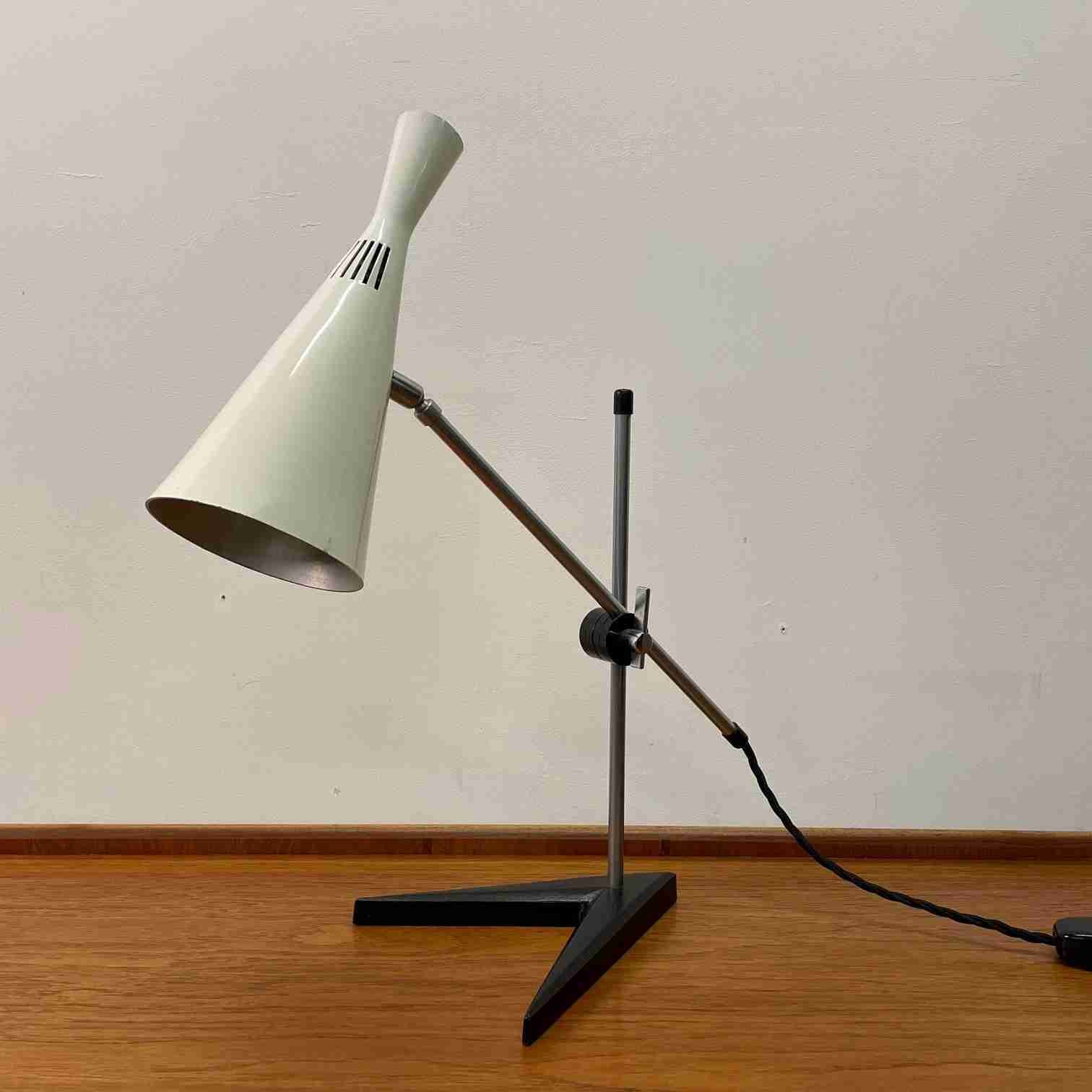 An original white 1950s adjustable desk light designed by G A Scott made by Maclamp 1958