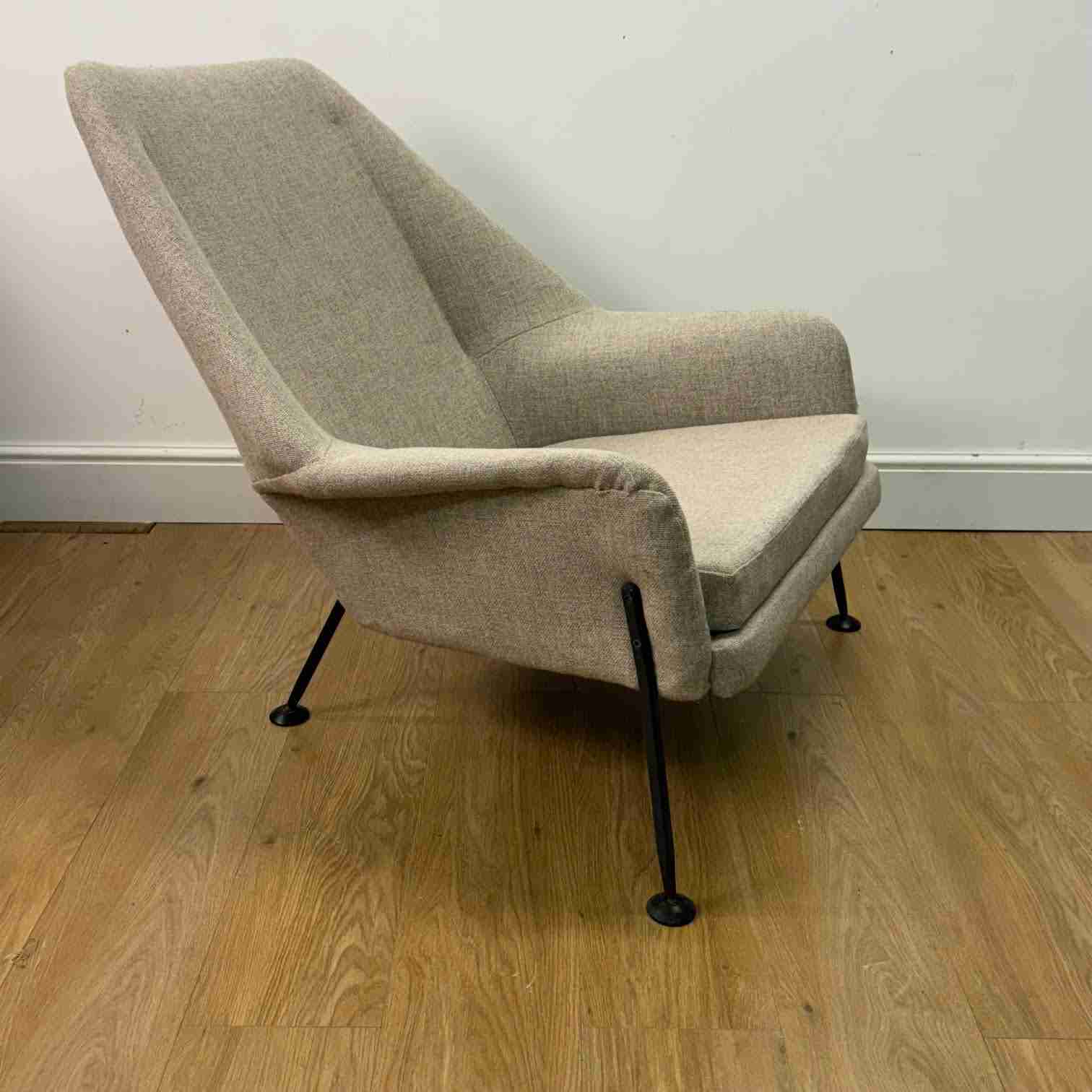 The chair is was sensitively re upholstered in a cream tweed type fabric a few years
