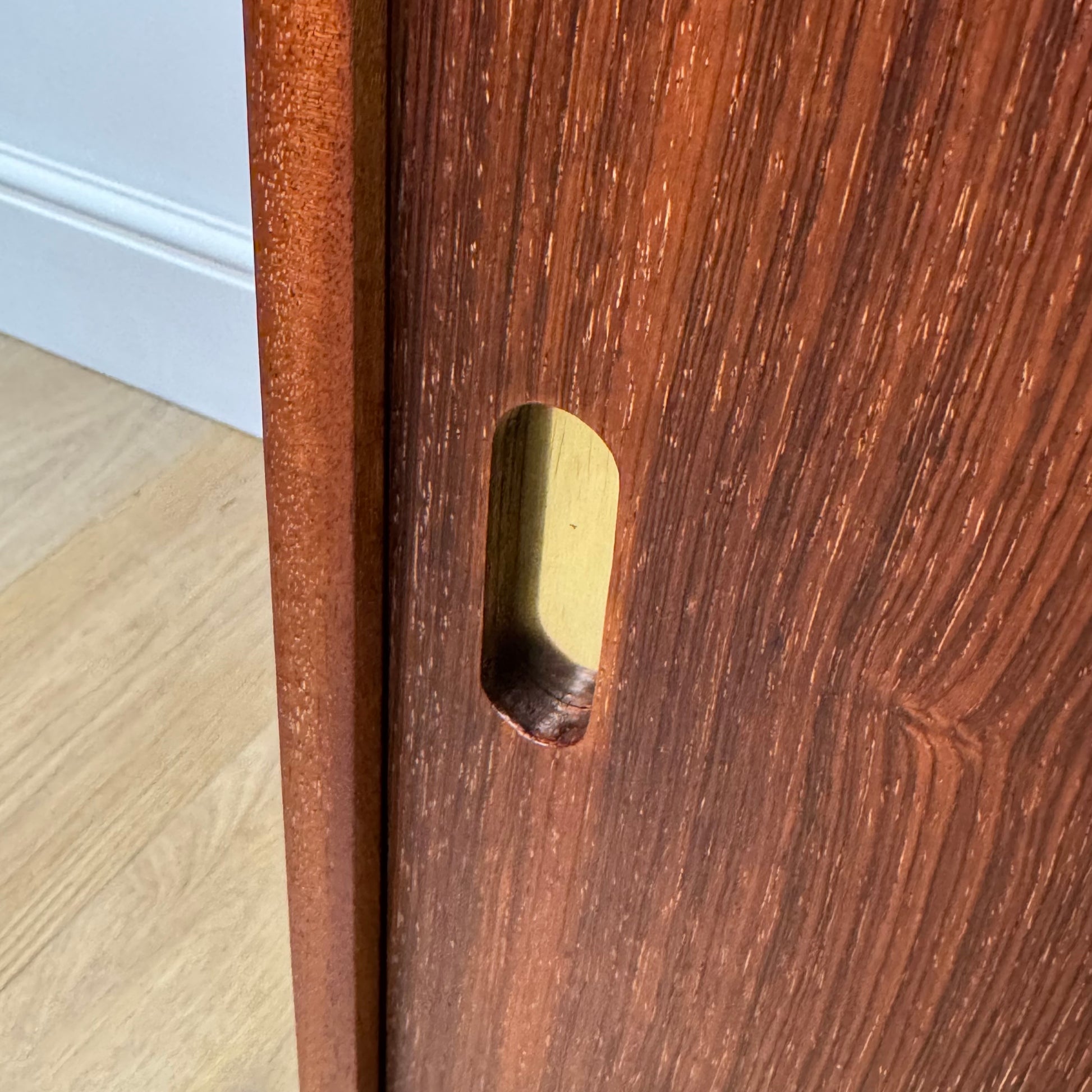 Mahogany carcass with rosewood fronted sliding doors and brass inset handles