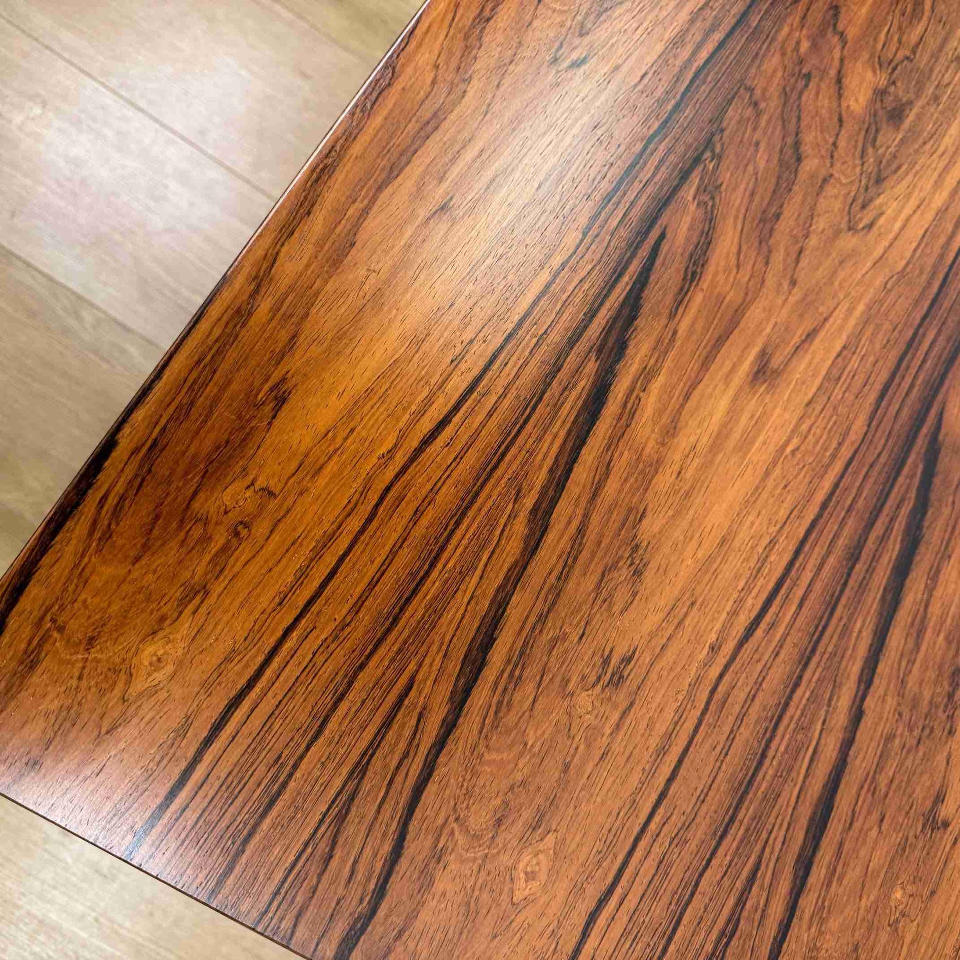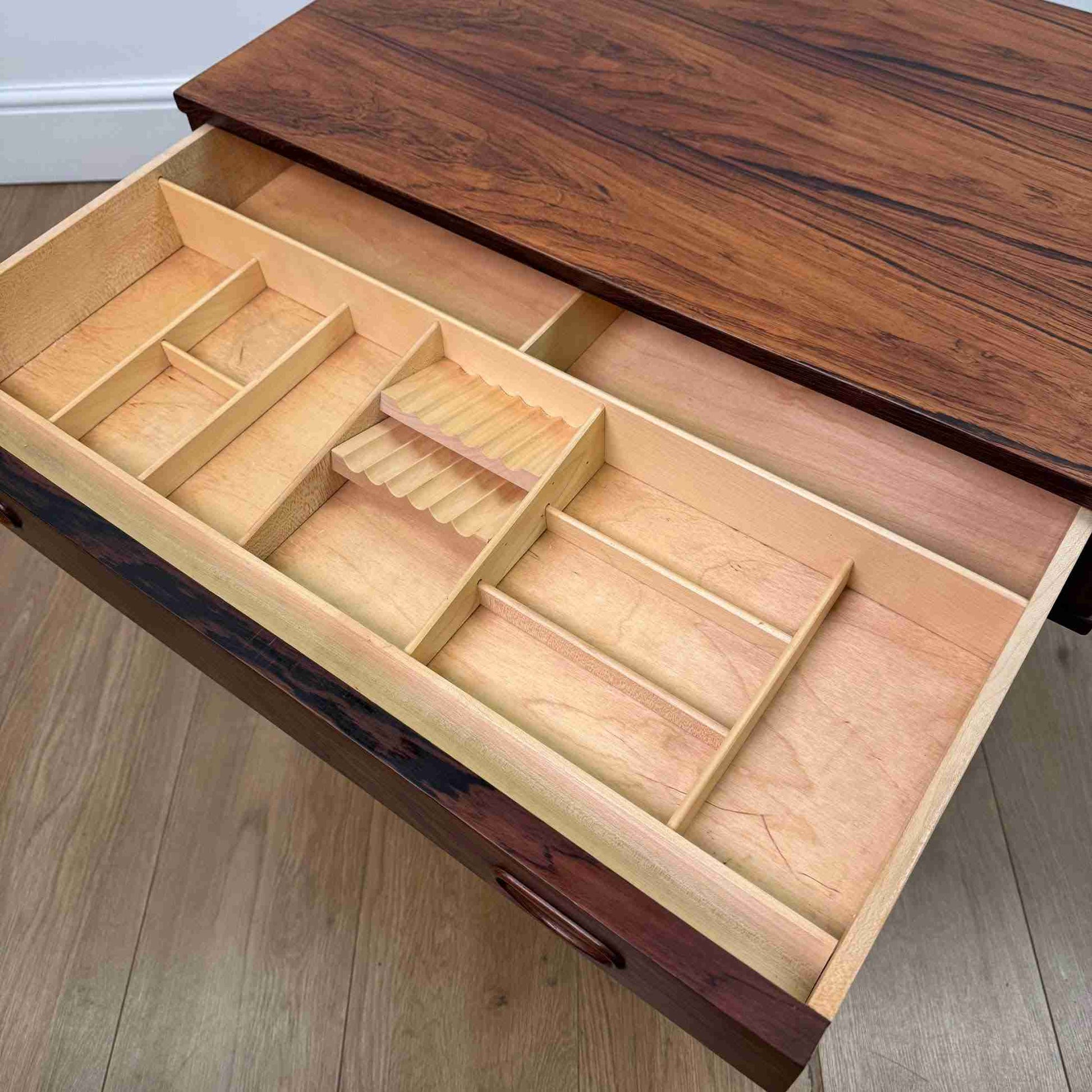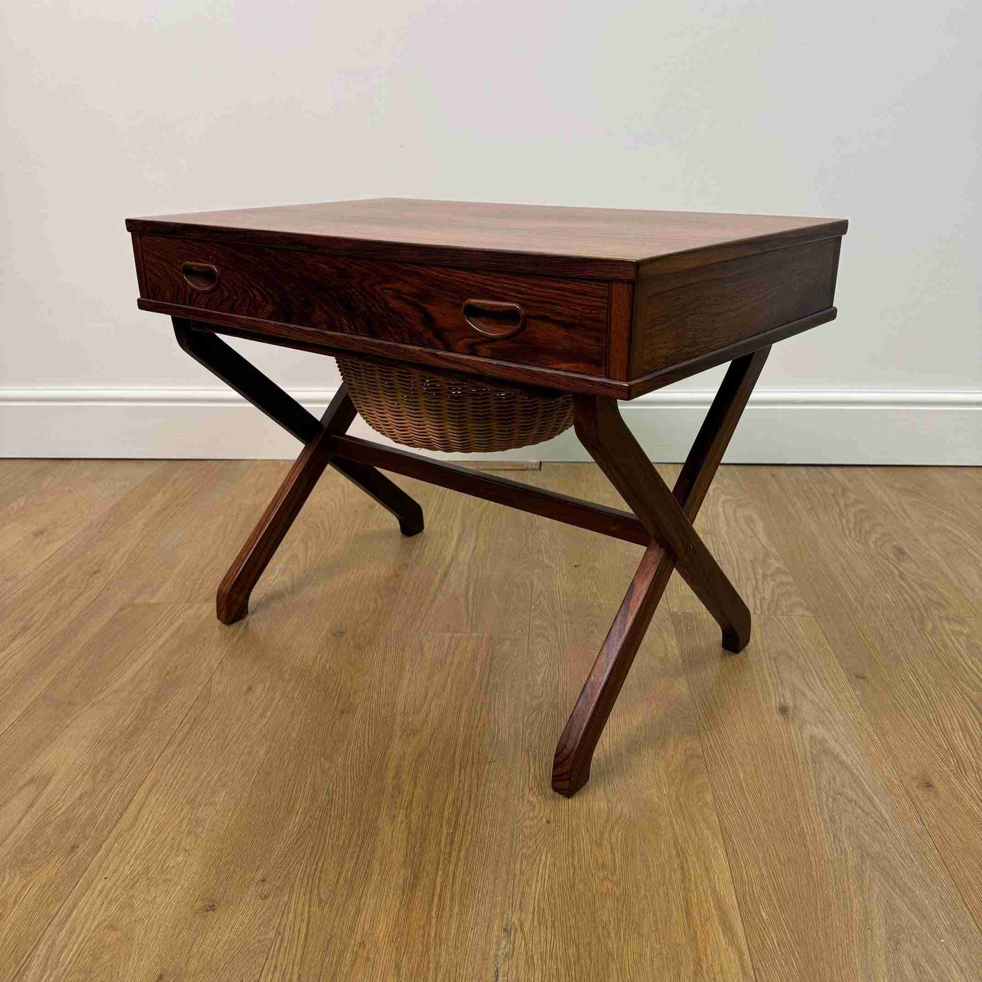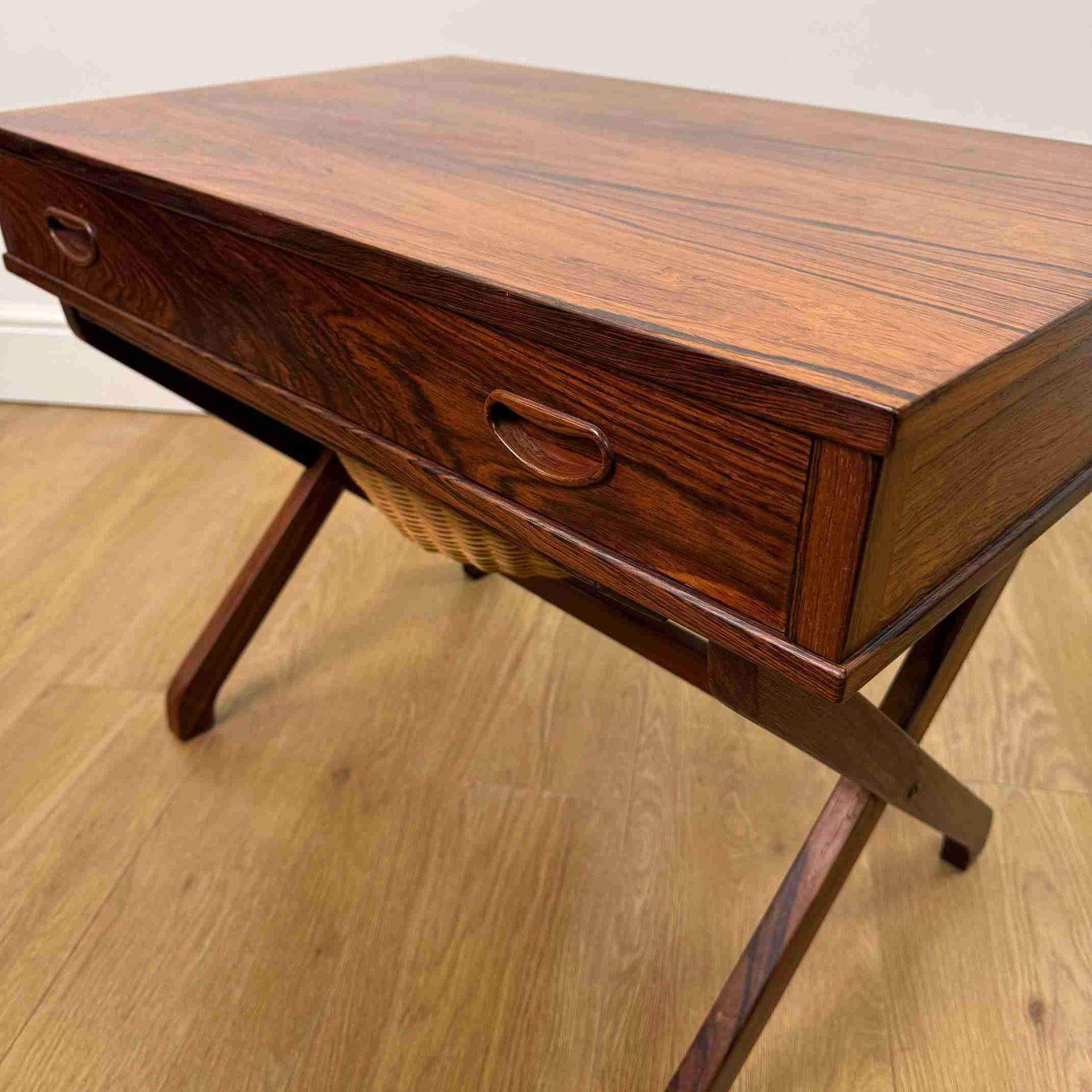 A lovely rosewood veneered sewing table on x frame legs from the 1960s