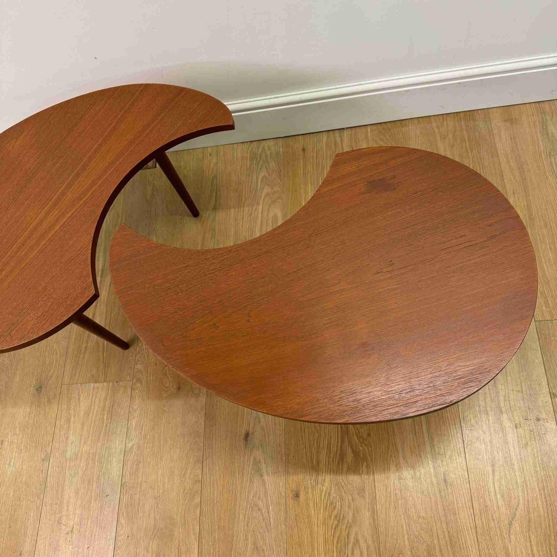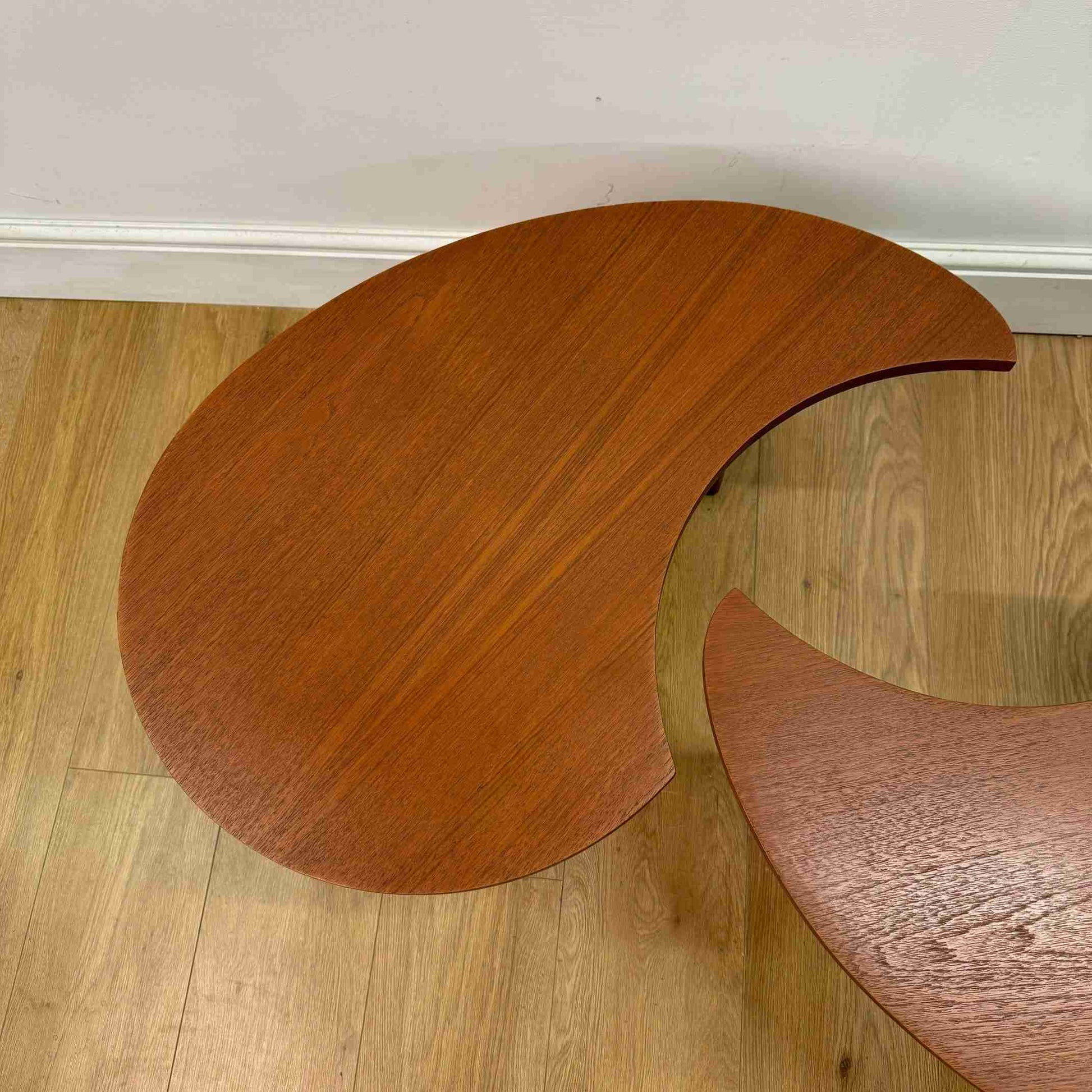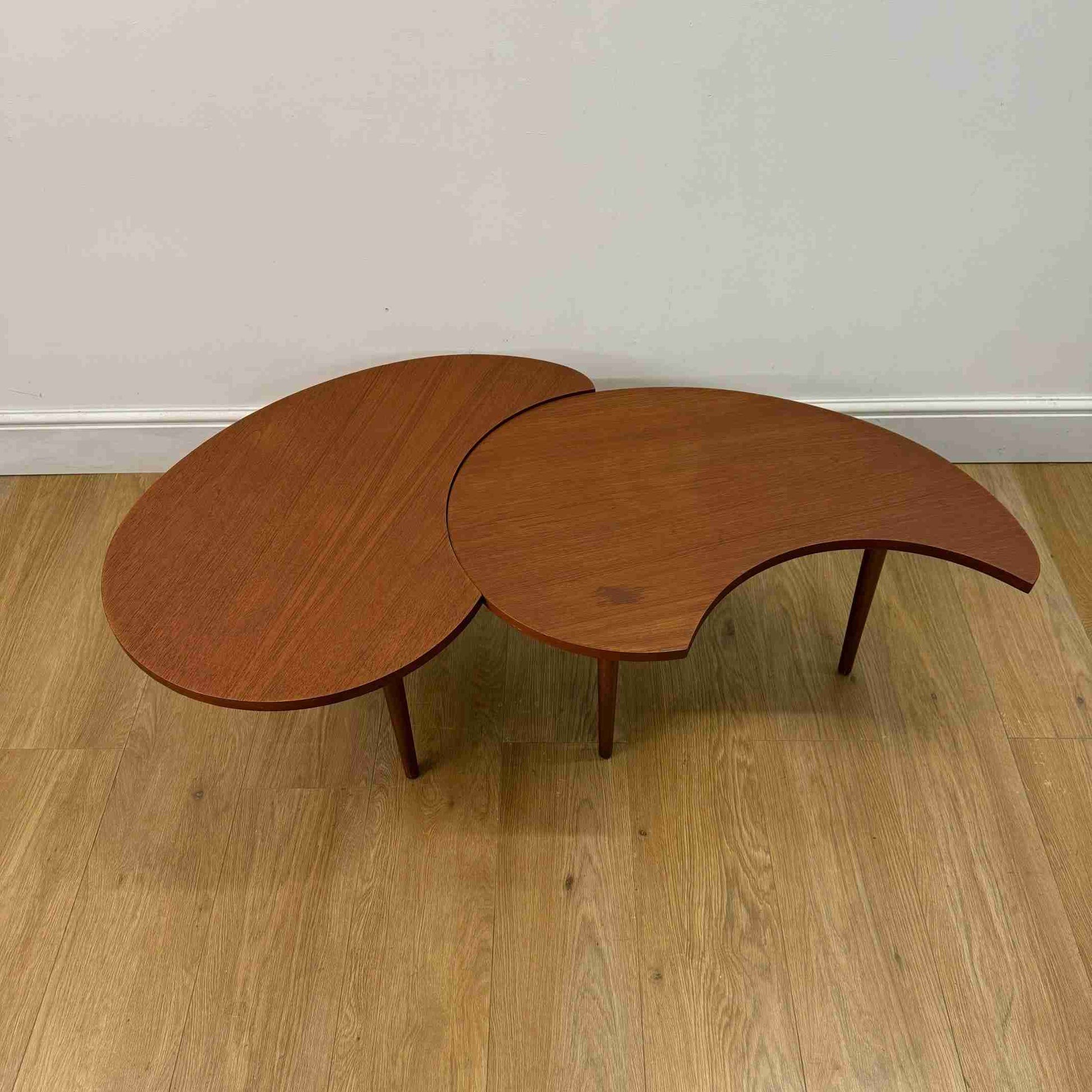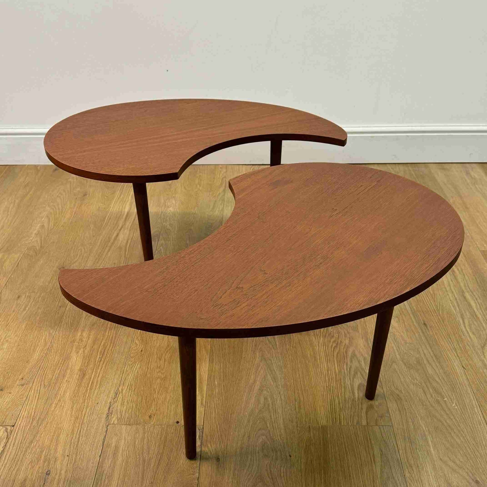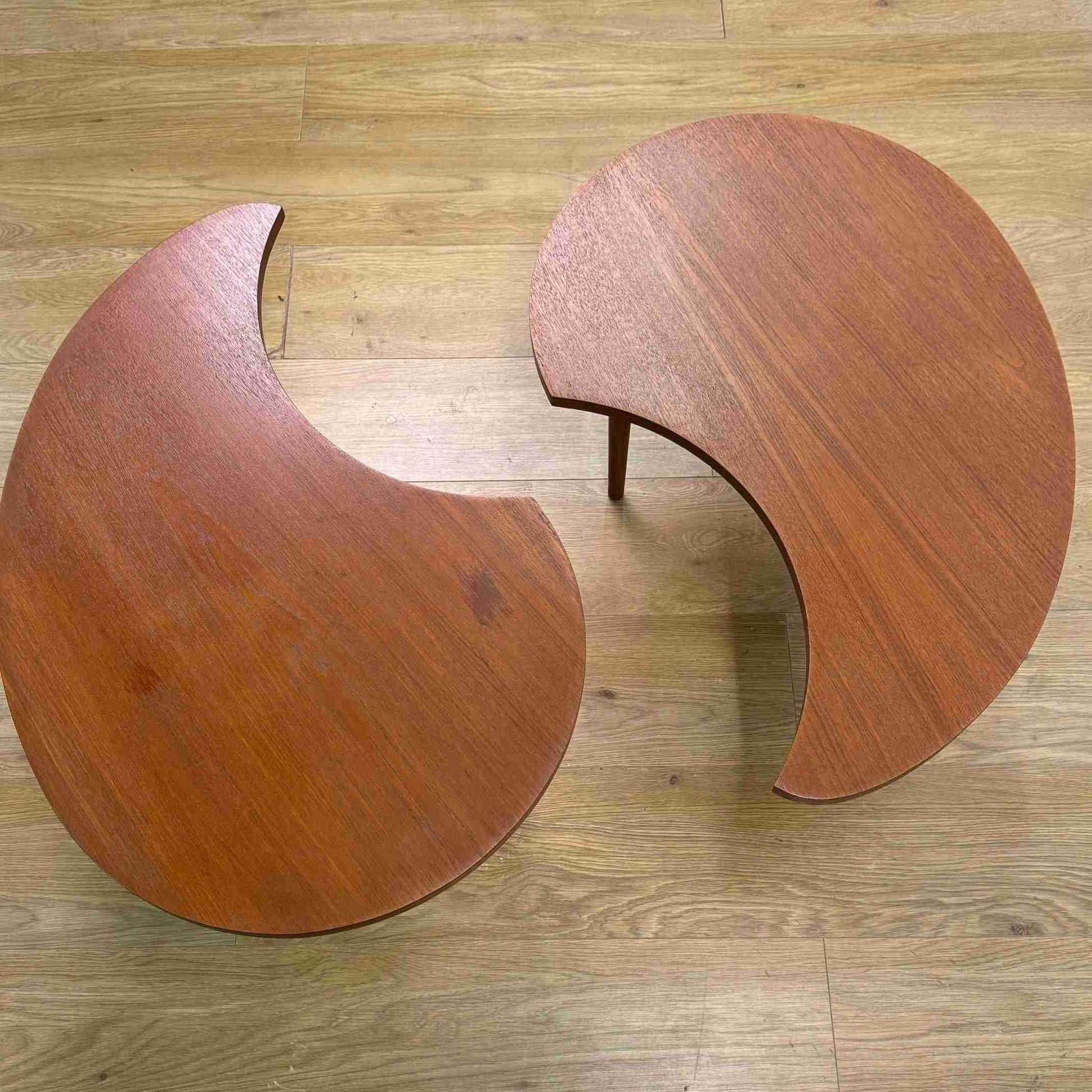 An unusual pair of teak kidney shaped occasional tables that fit together