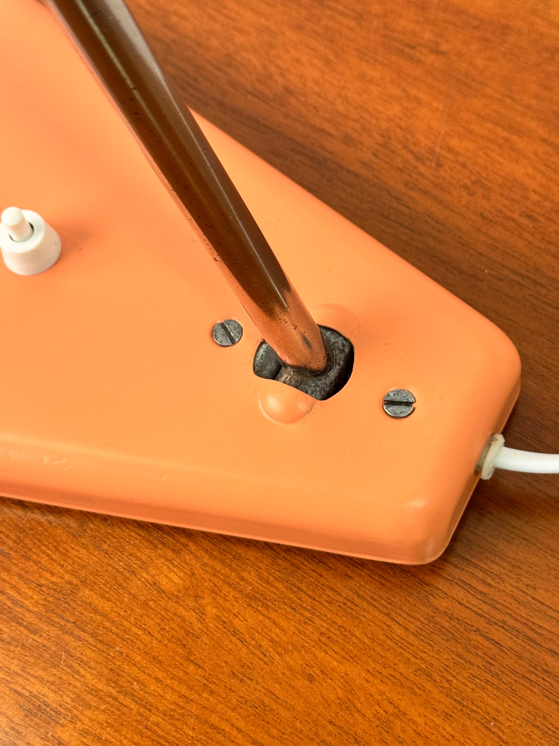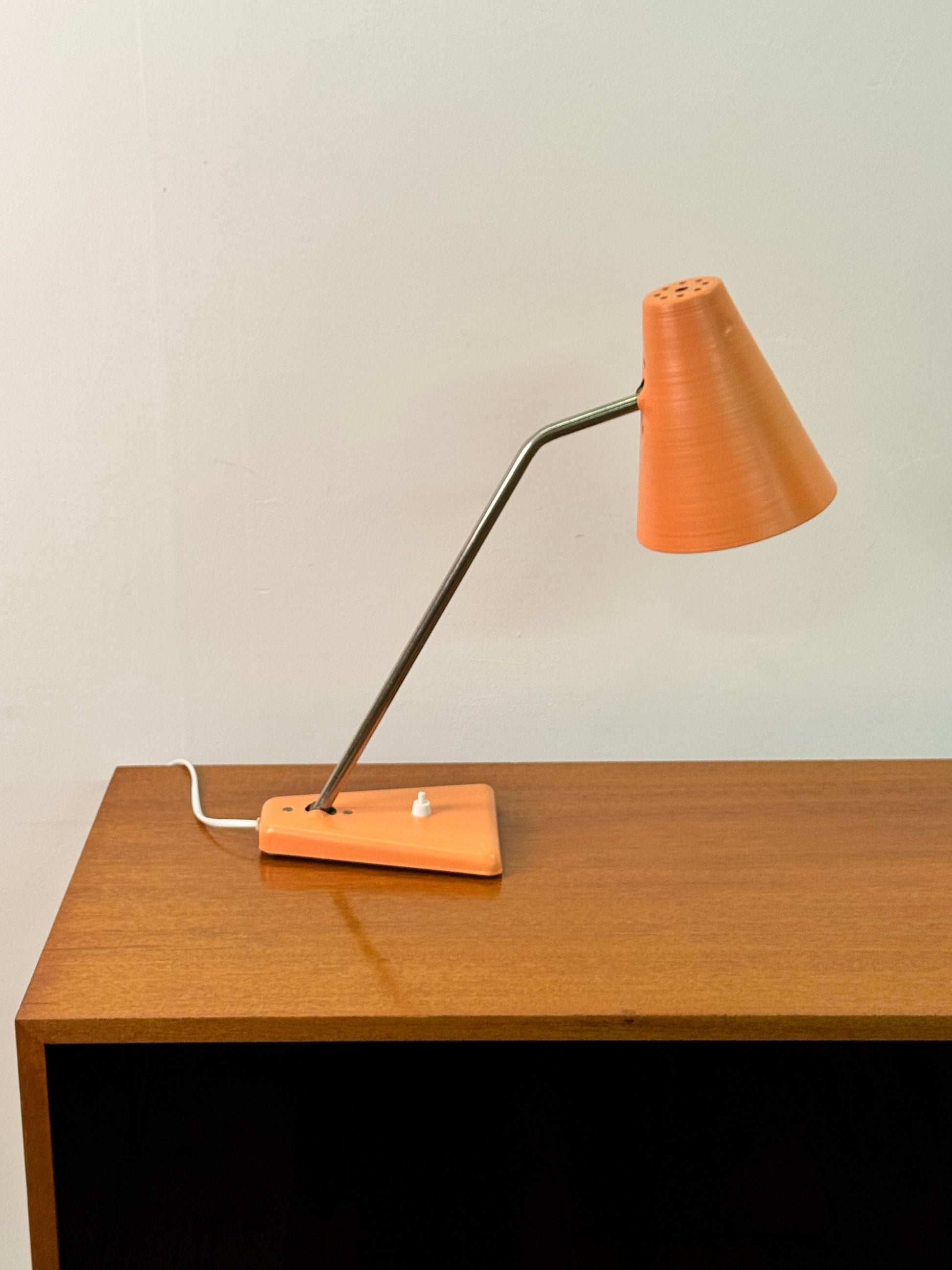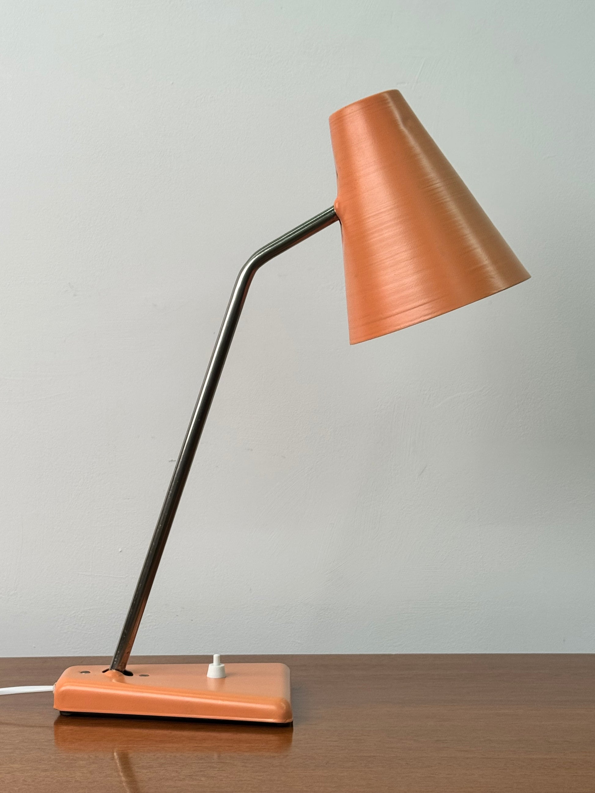 A pale orange painted metal adjustable desk lamp dating from the 60s