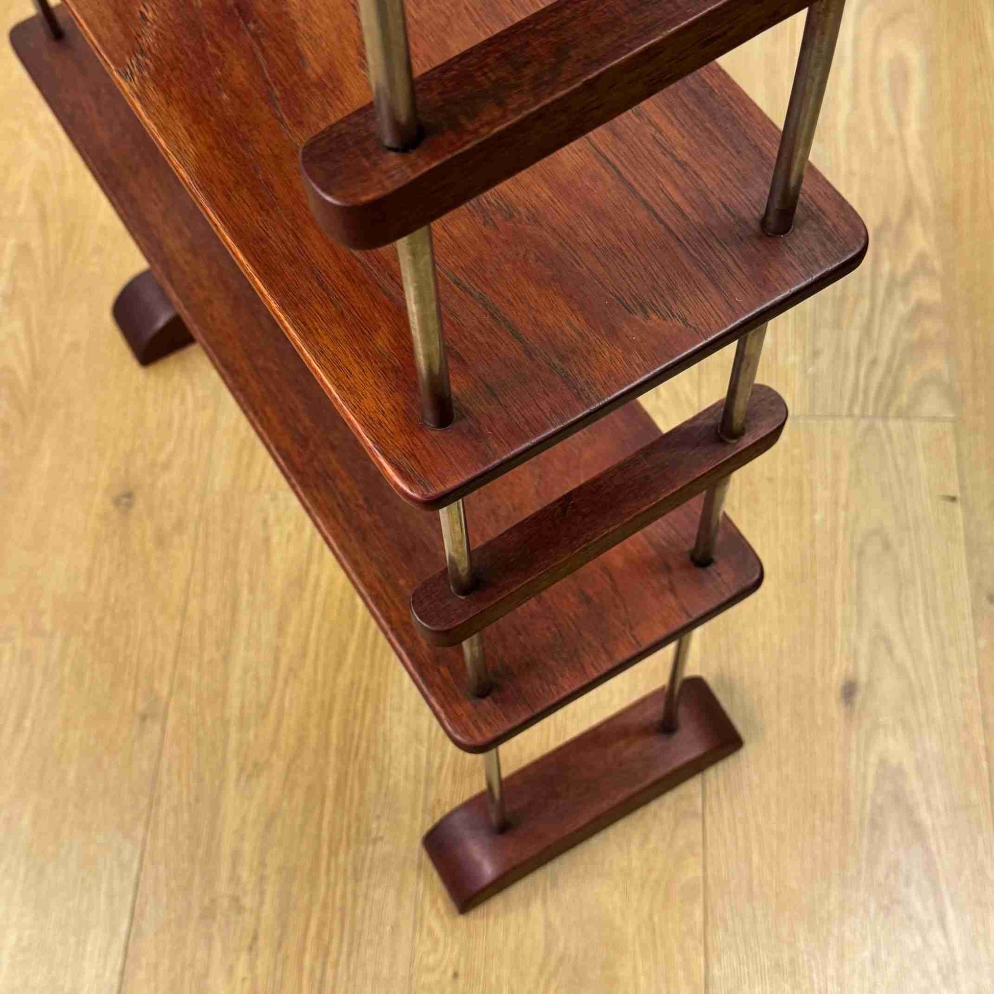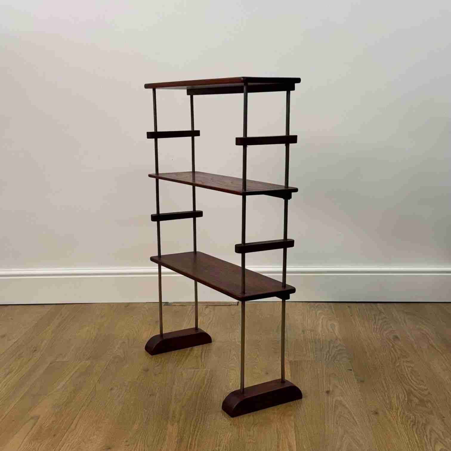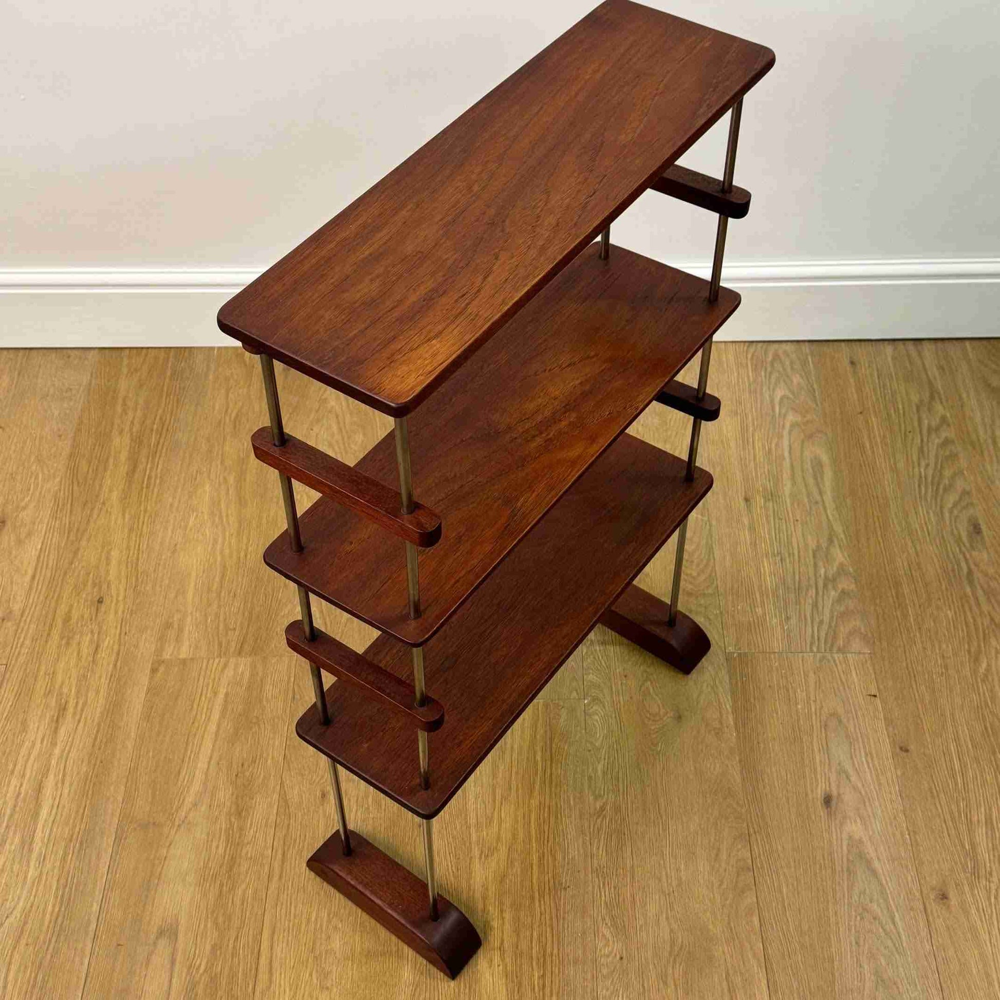 An unusual small teak and chrome rod shelf unit from the early 60s