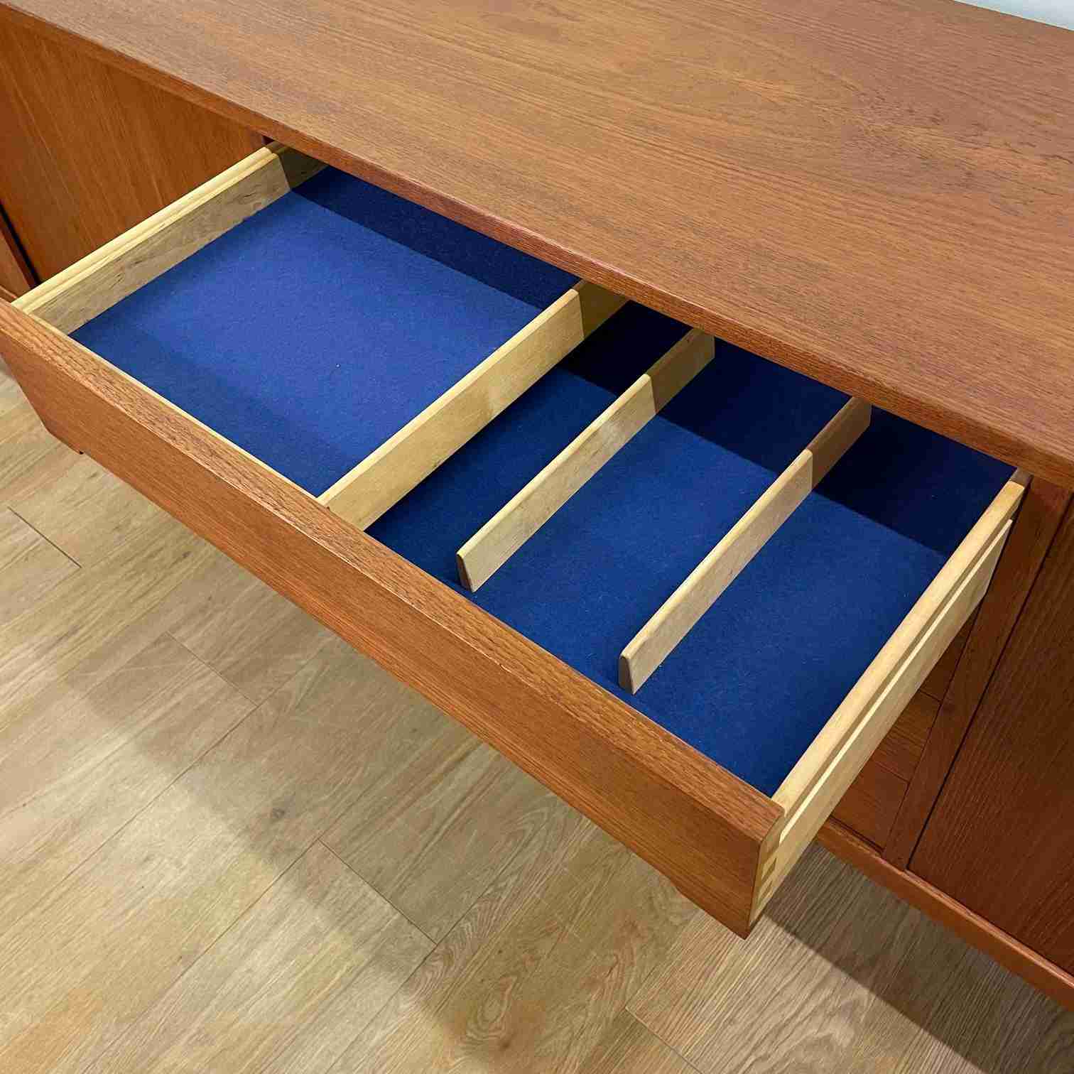 birch interiors with adjustable shelves and a blue felt lined cutlery drawer