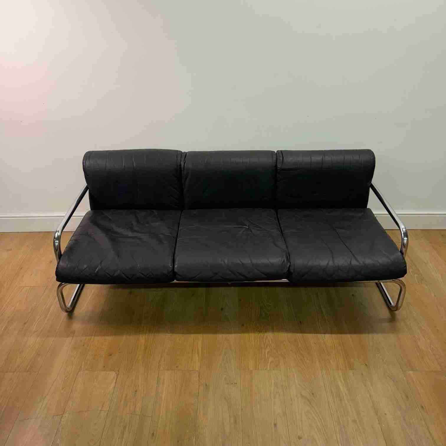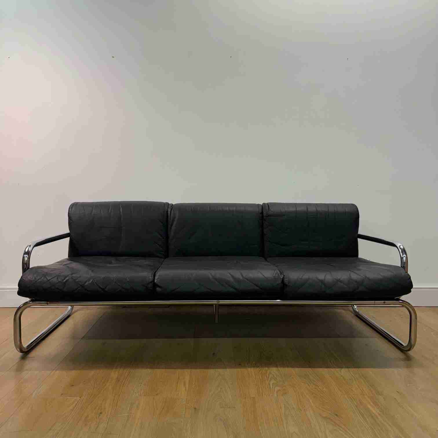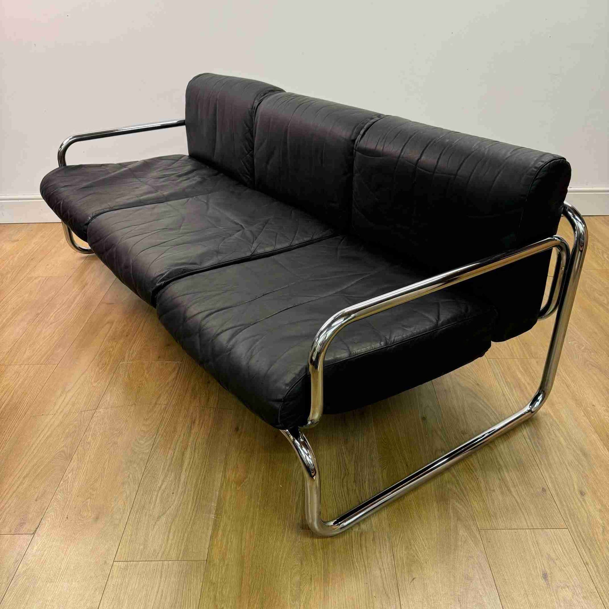 A T range chrome and leather sofa designed by Rodney Kinsman for OMK late 1960s