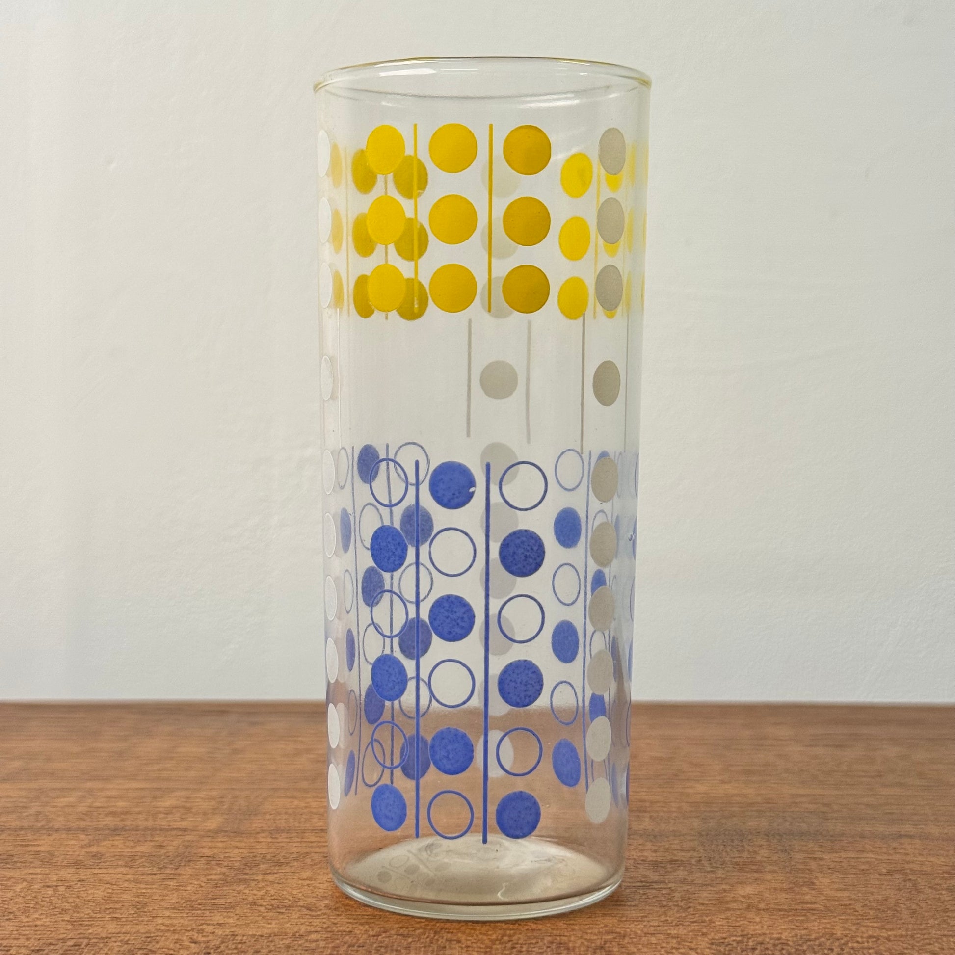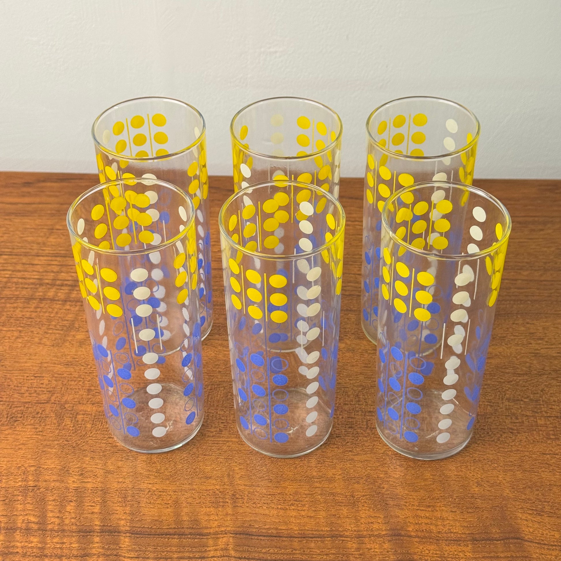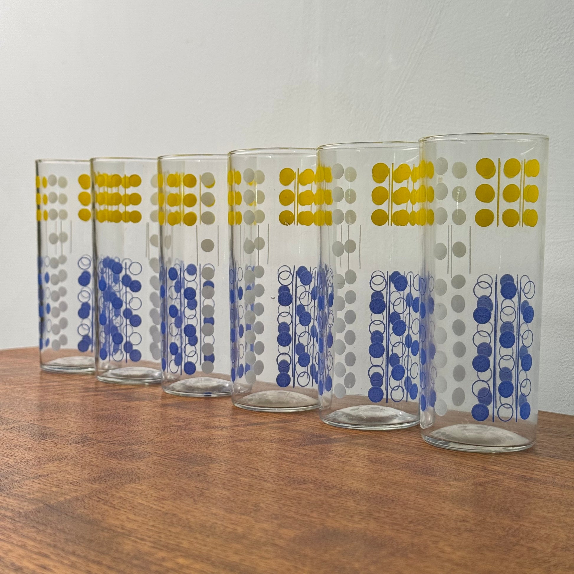 A set of 6 slim Jims drinking glasses with abstract domino decoration