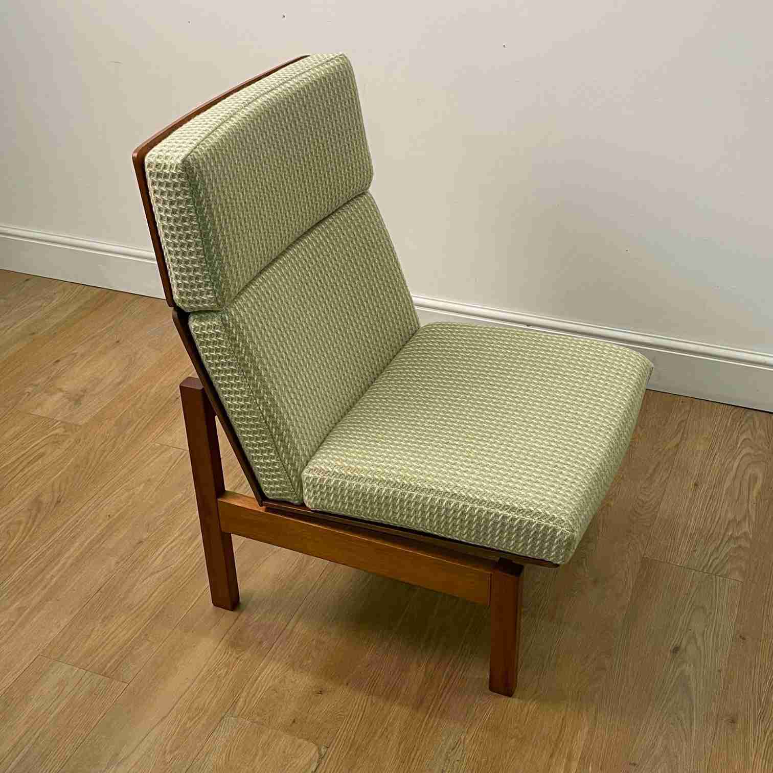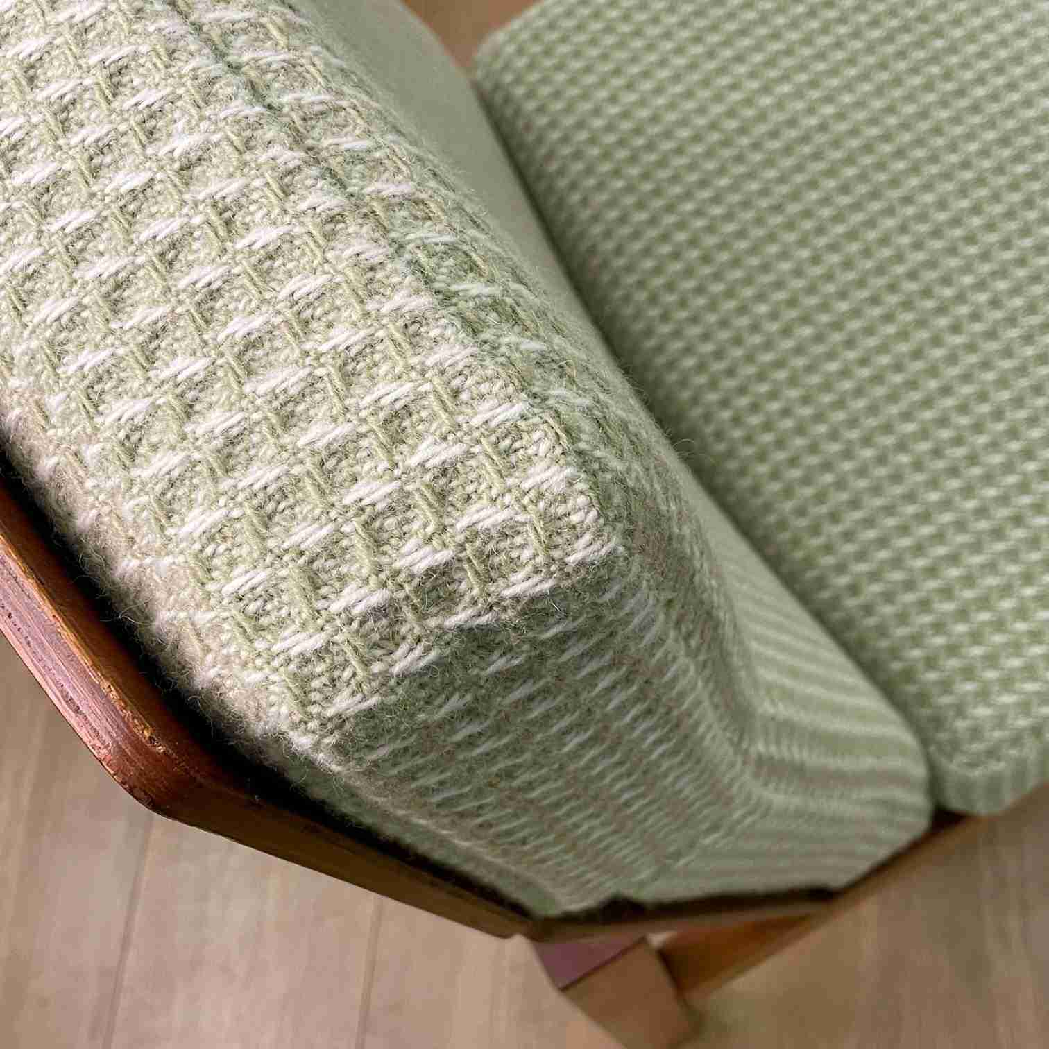 great condition having been newly upholstered in a chunky pale green wool fabric from Bute