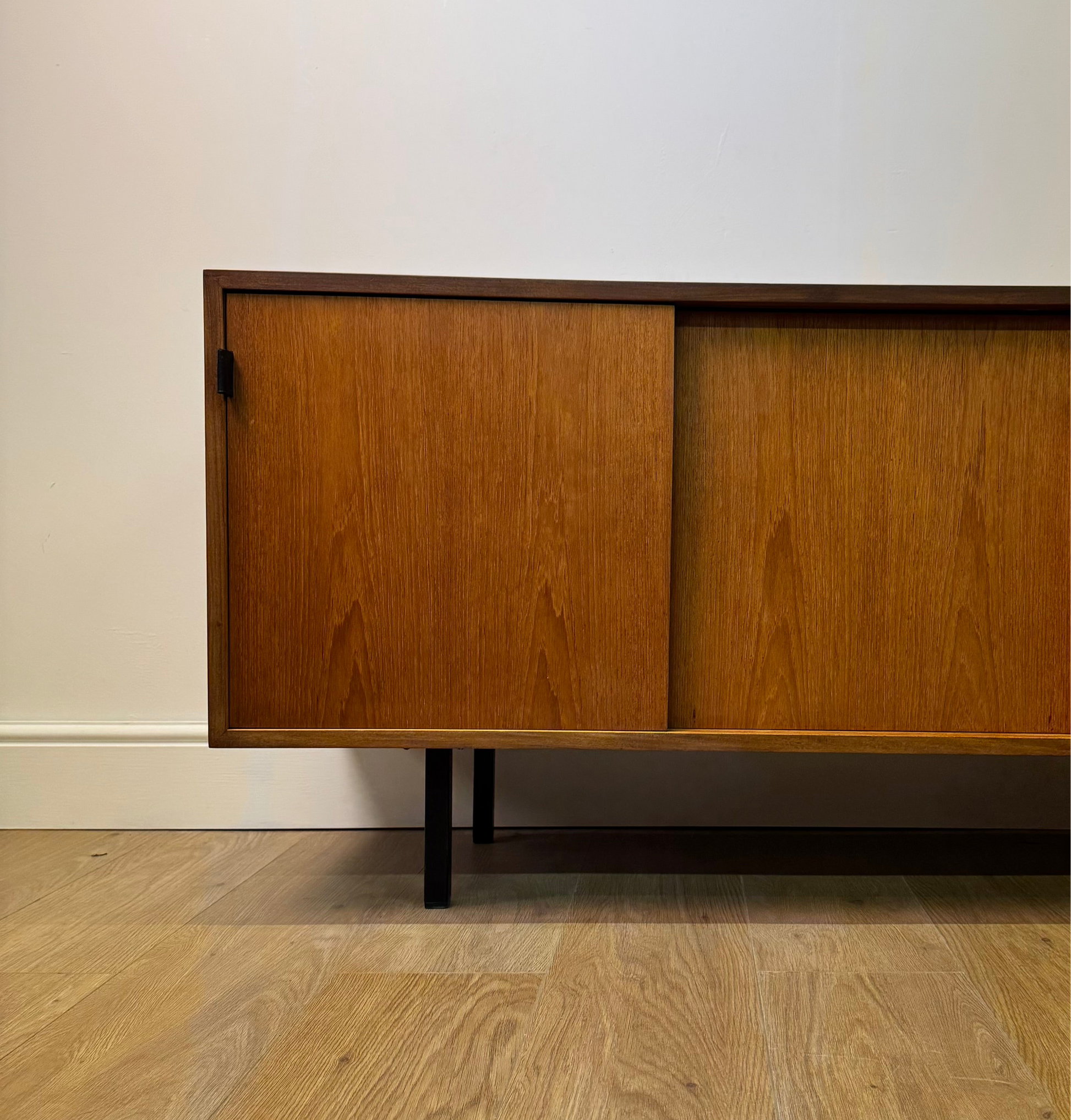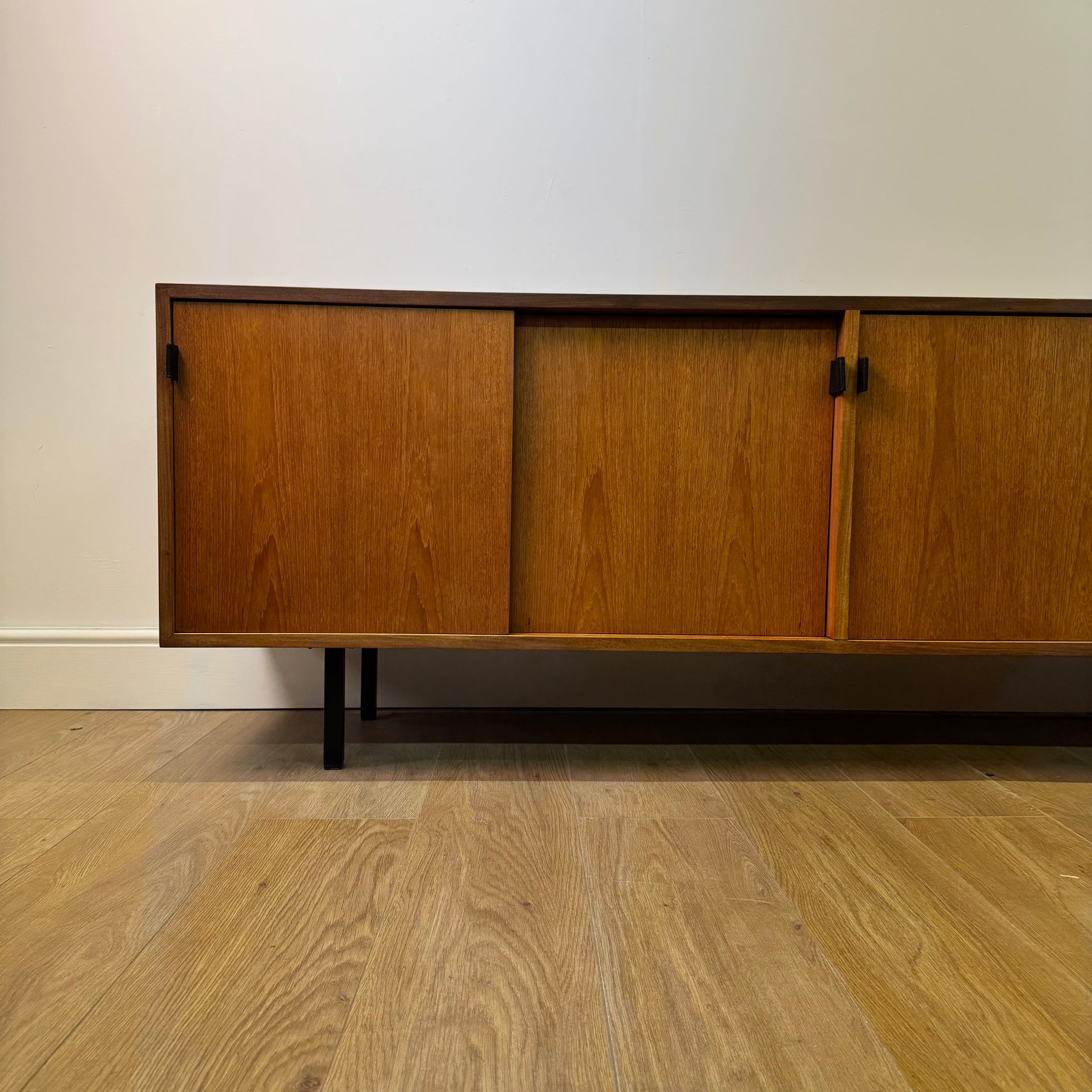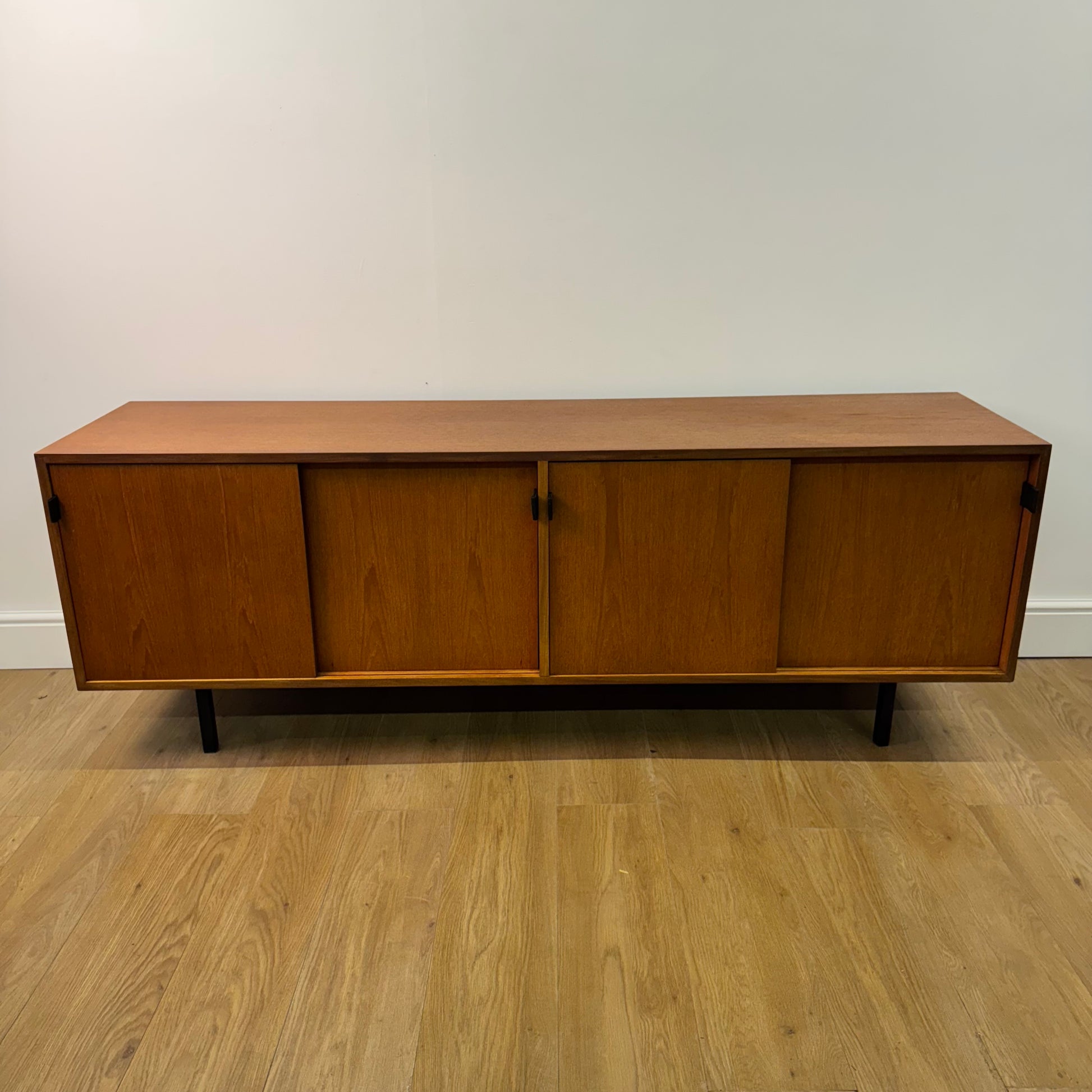 A classic 1960s sliding door sideboard with leather handles designed by Florence Knoll for Knoll international USA