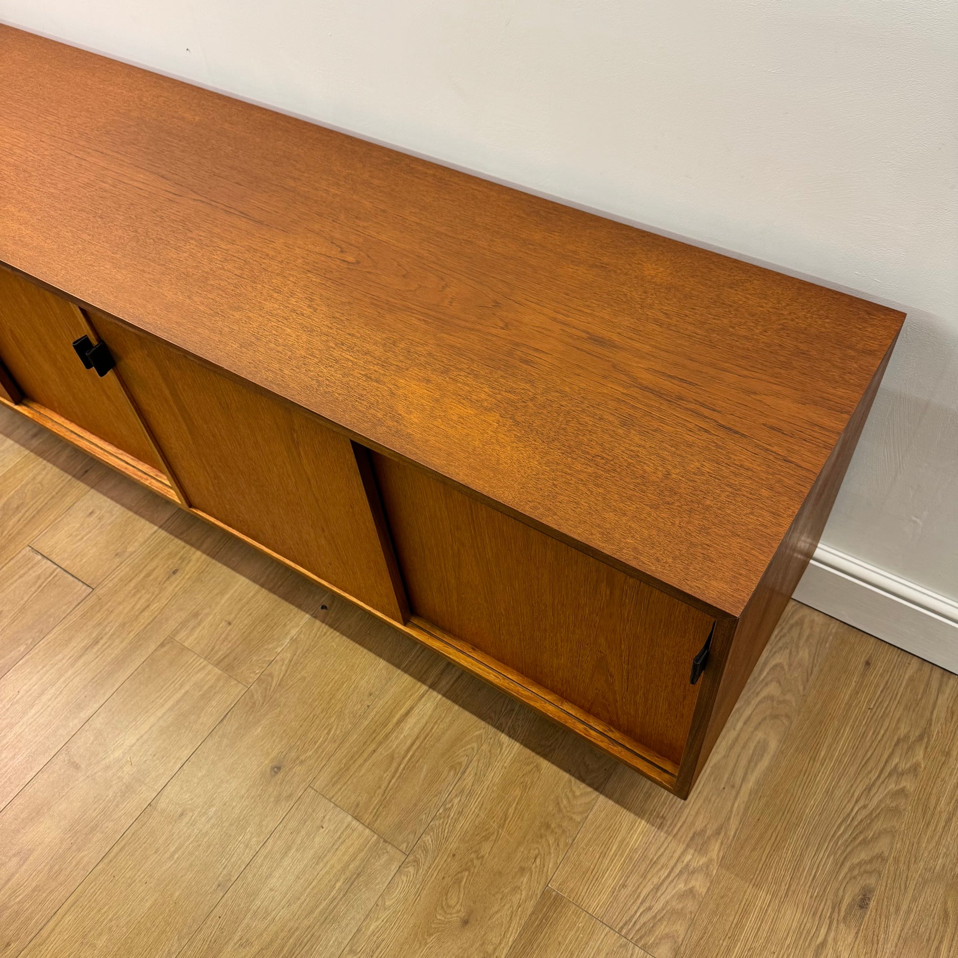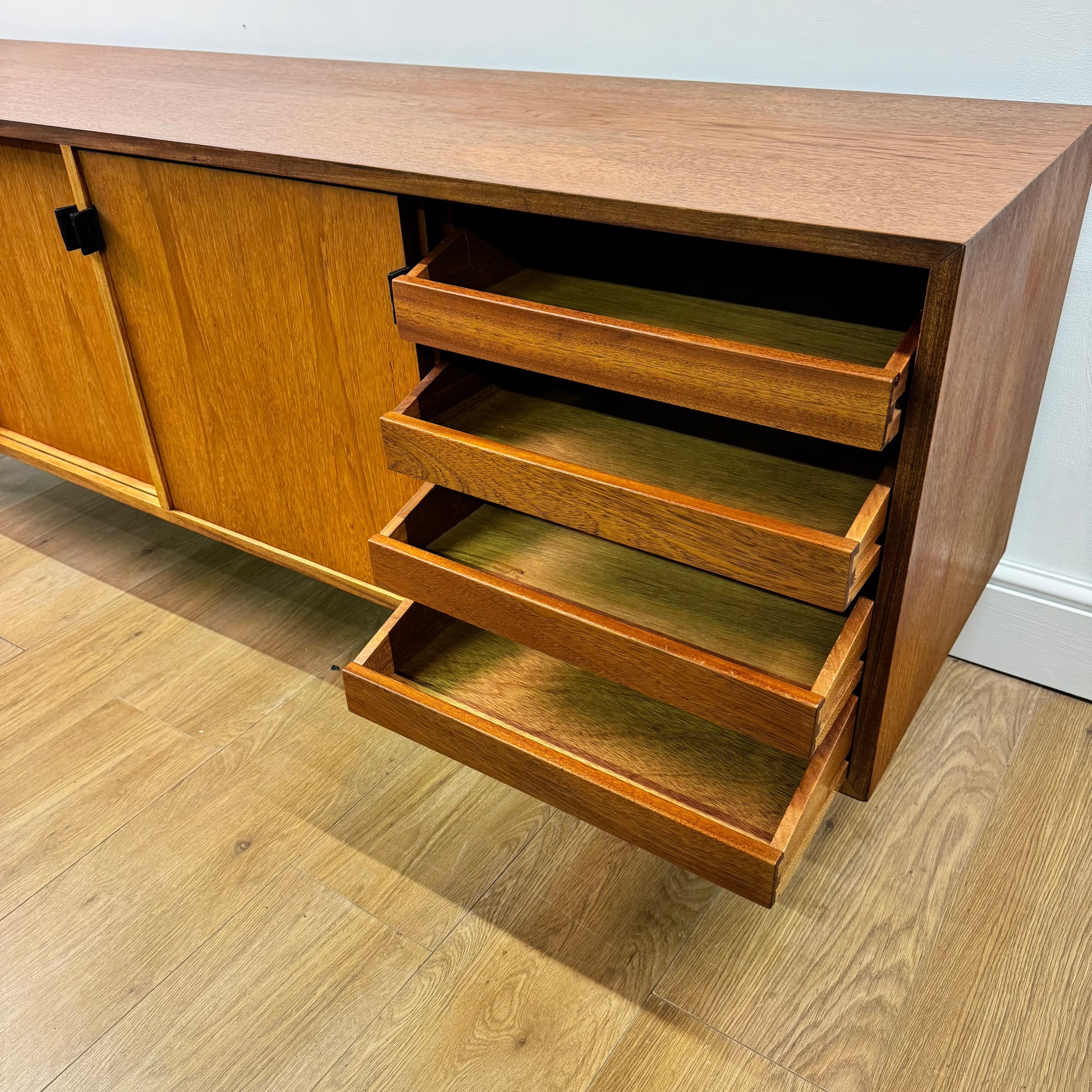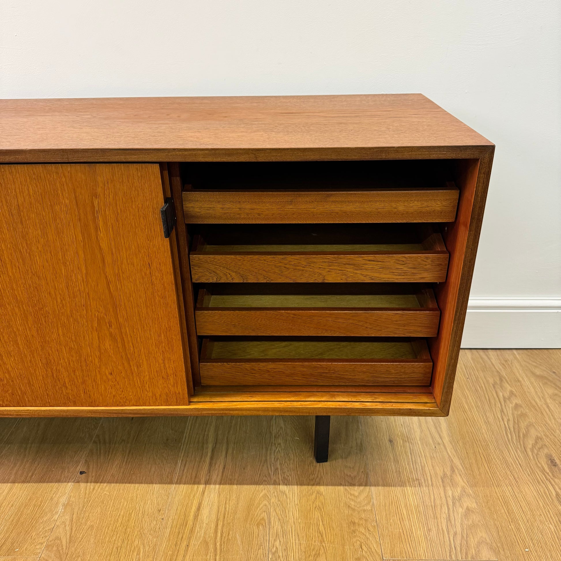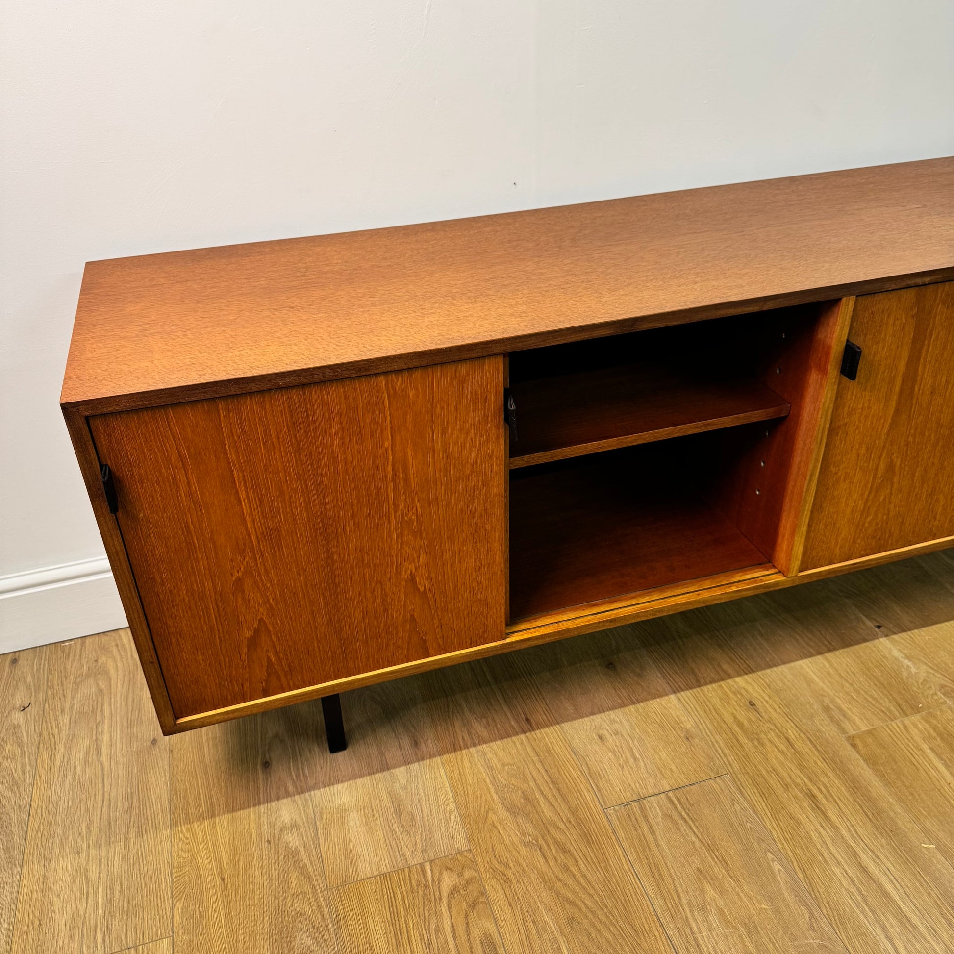A classic 1960s sliding door sideboard with leather handles designed by Florence Knoll for Knoll international USA
