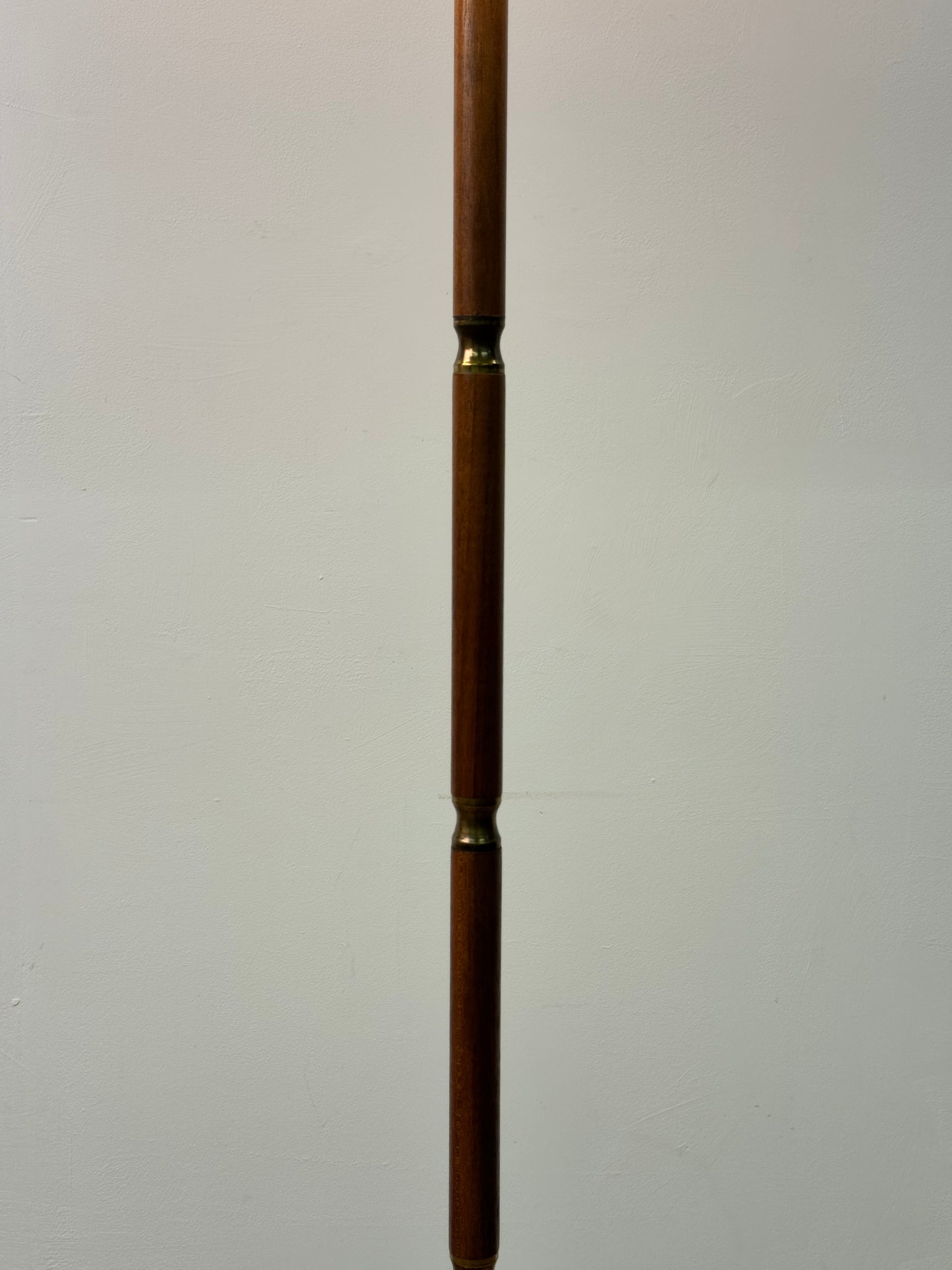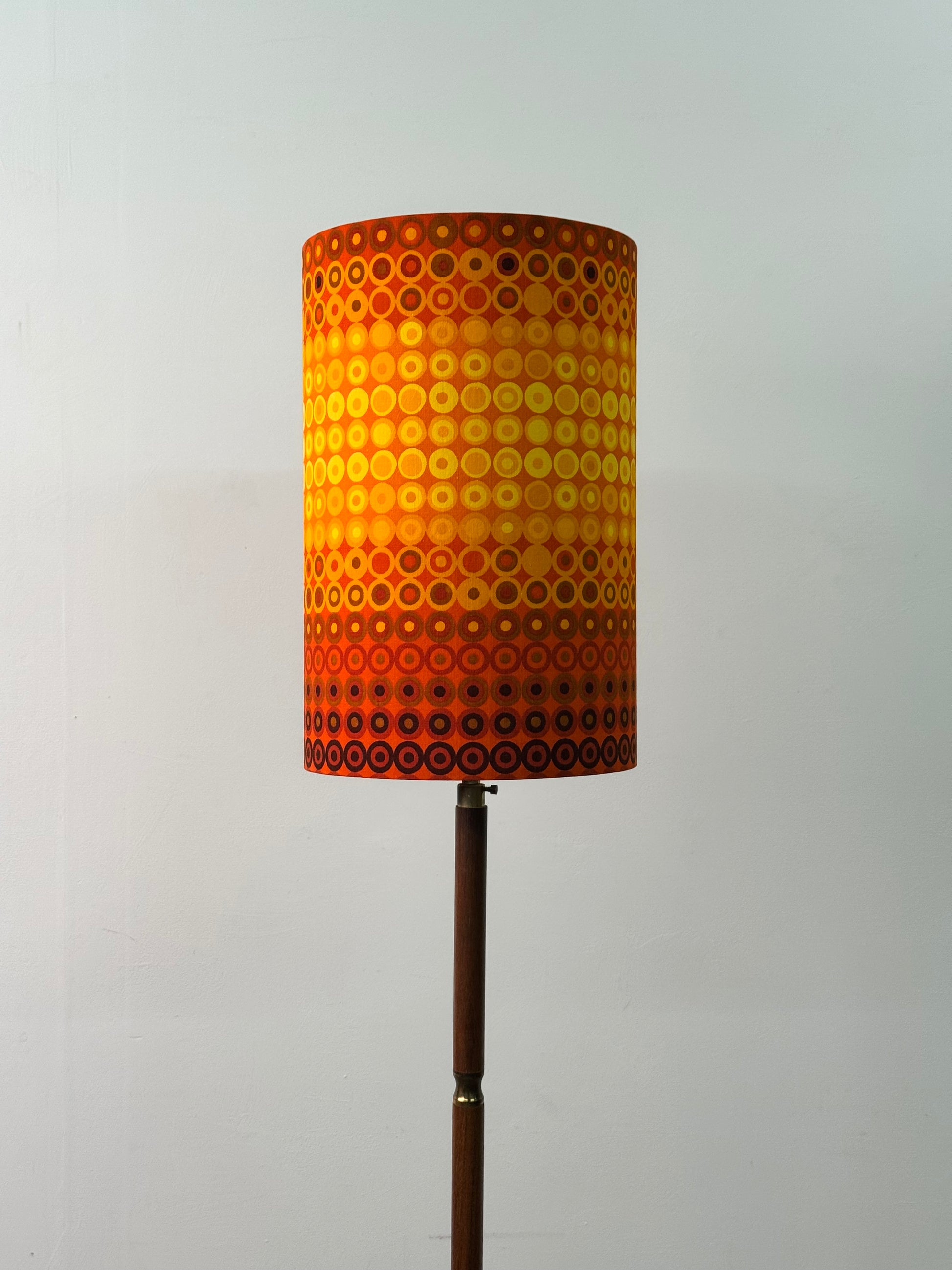 A teak standard lamp with brass details, from the early 60s with new shade made with vintage decoplus fabric