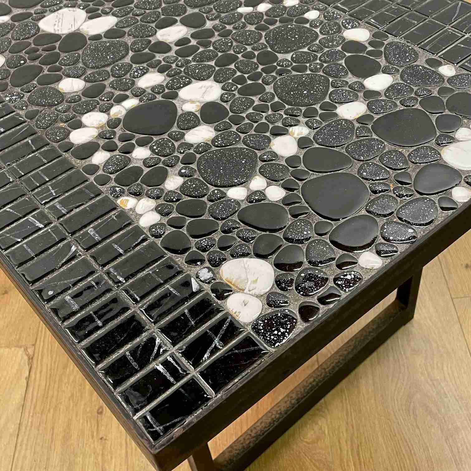 1960s tiled coffee table on black steel legs
