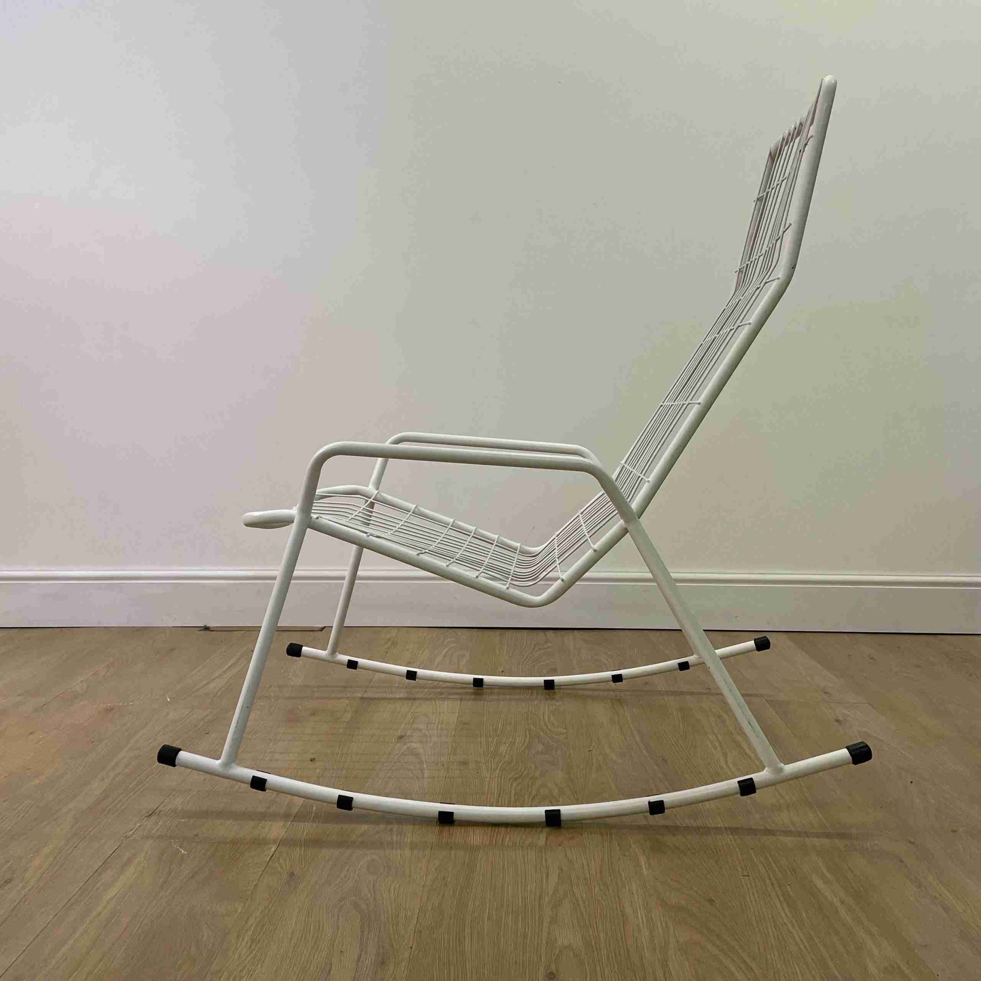 1960s white wire garden rocking chair lounger