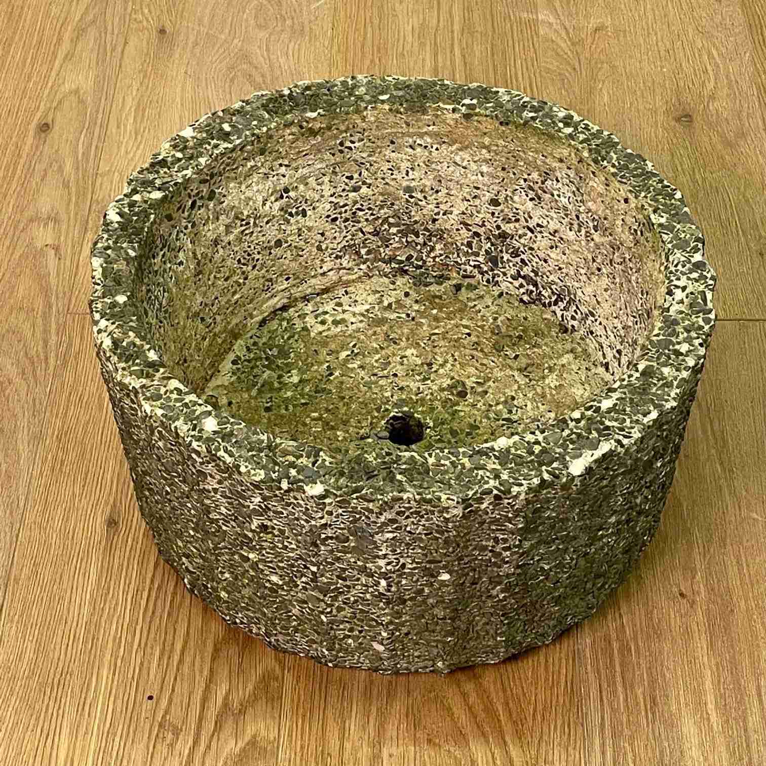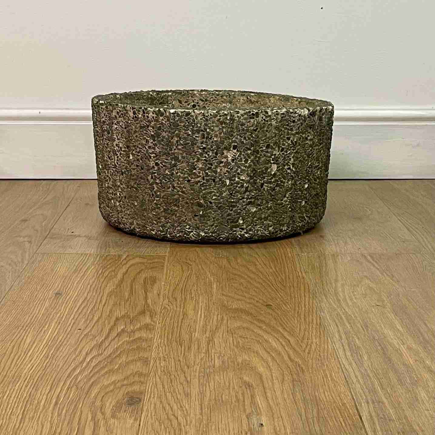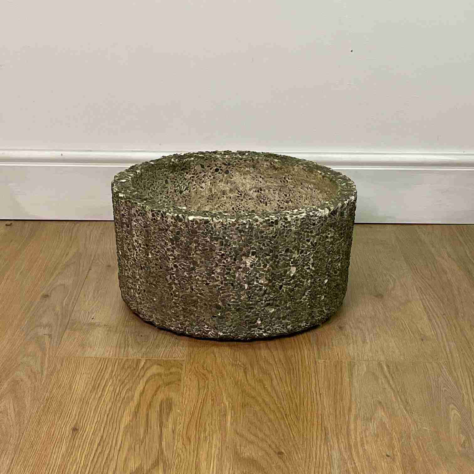 A simple 1970s Brutalist concrete planter with fluted detail to the outside
