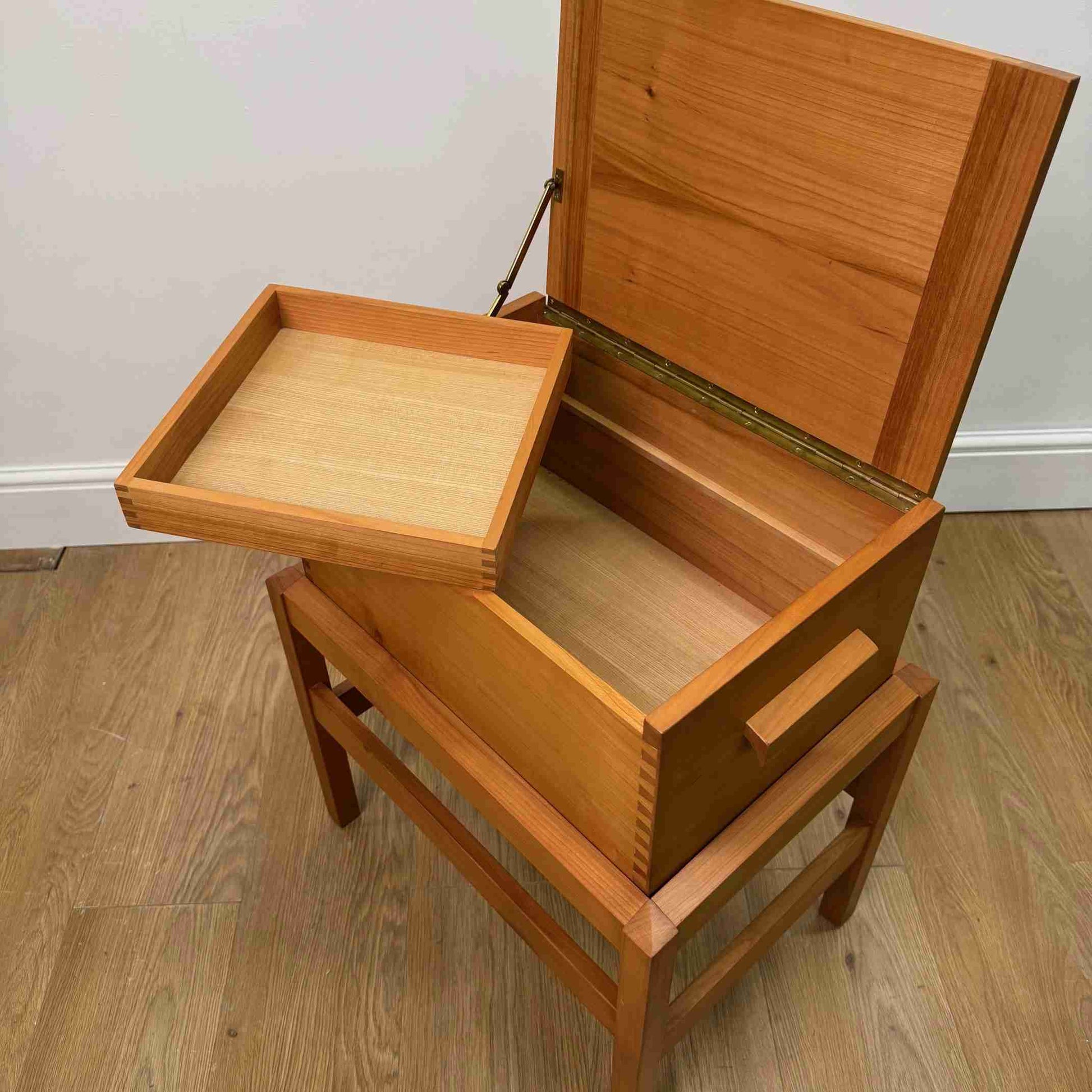 1980s beech work box on stand