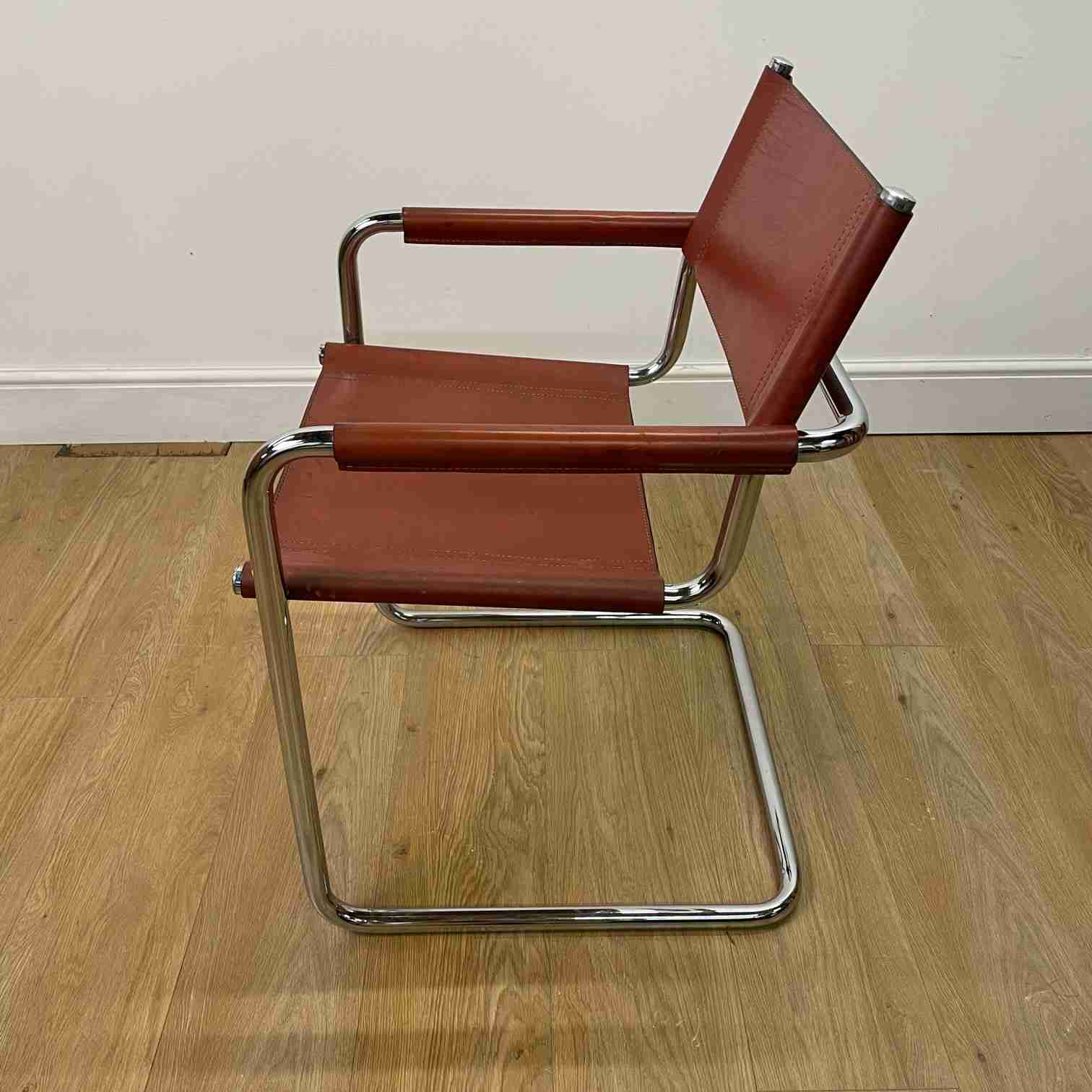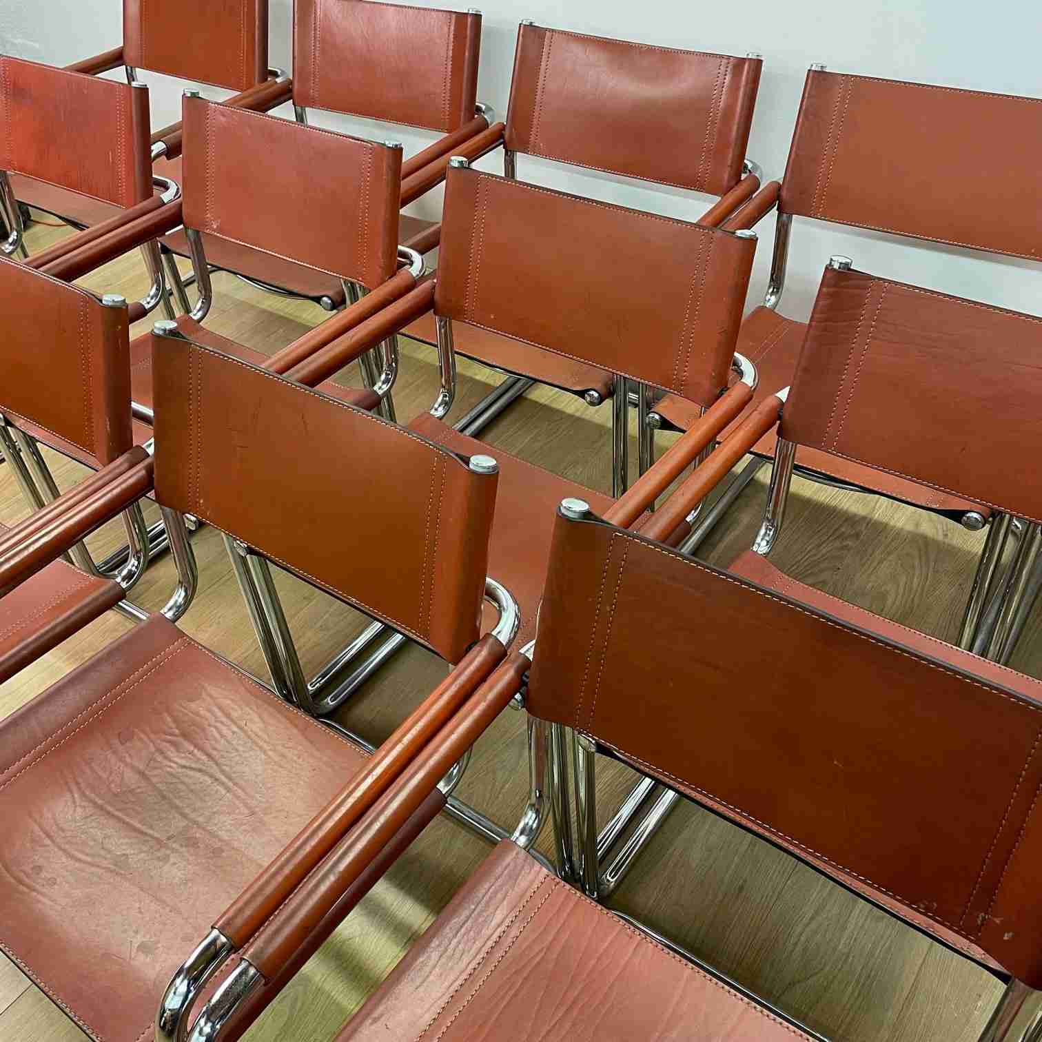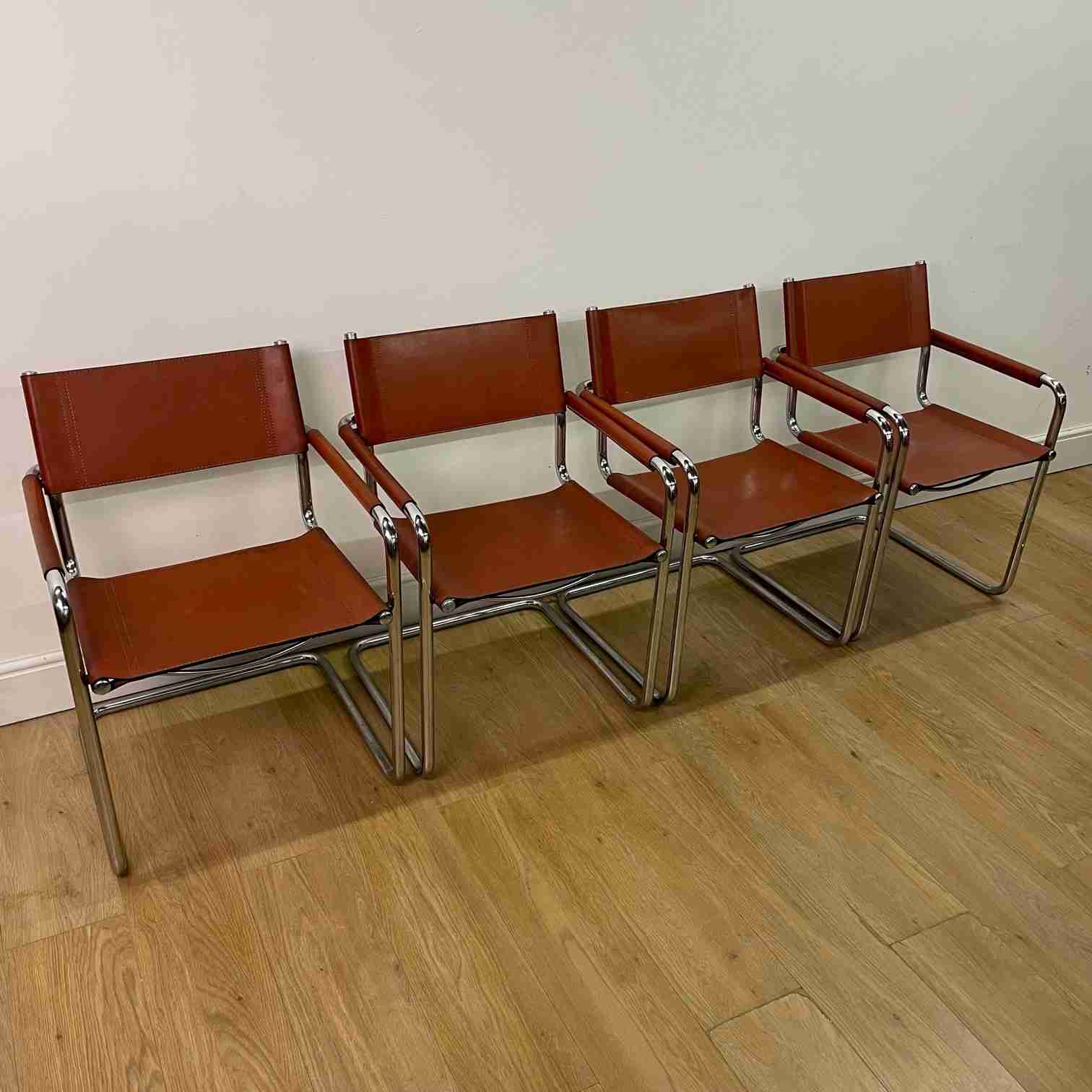 A beautiful set of 6 chrome and leather cantilevered chairs