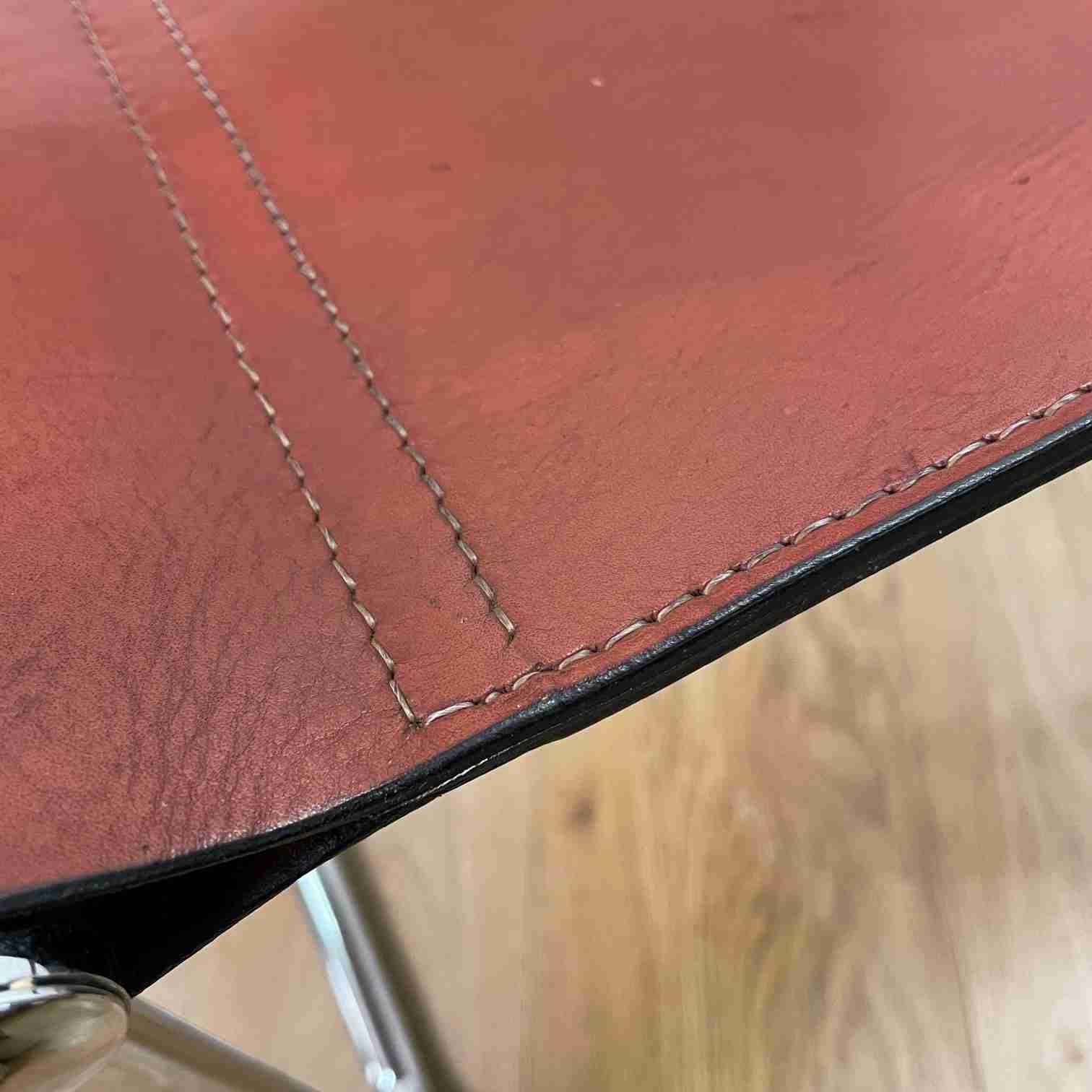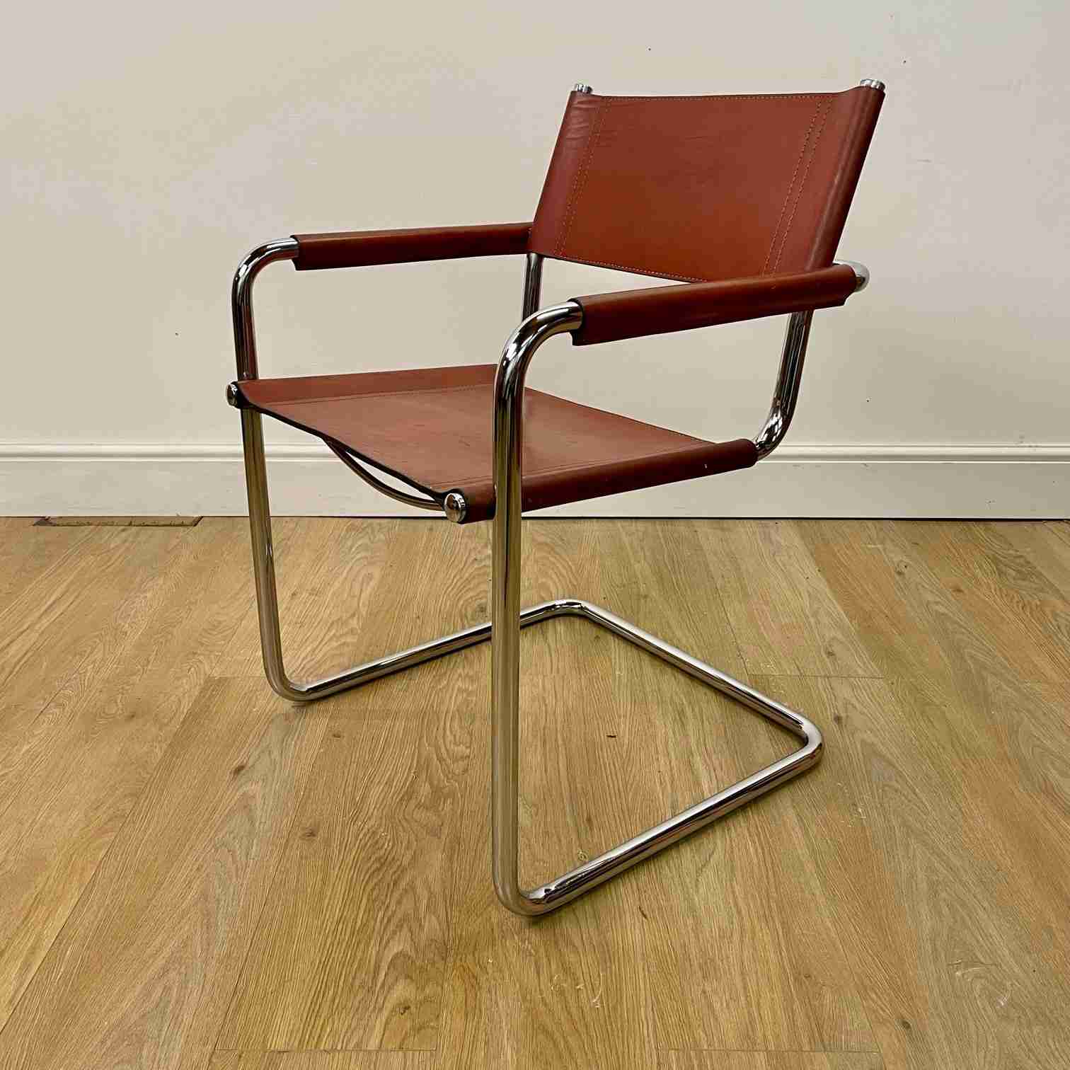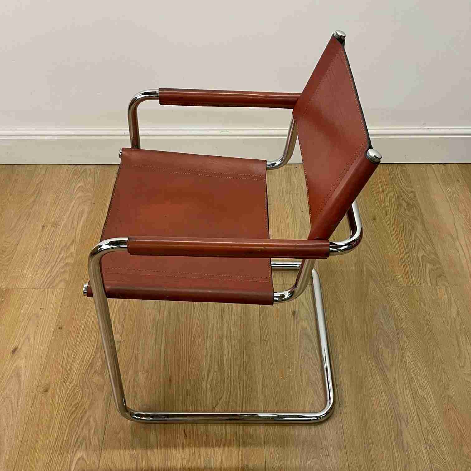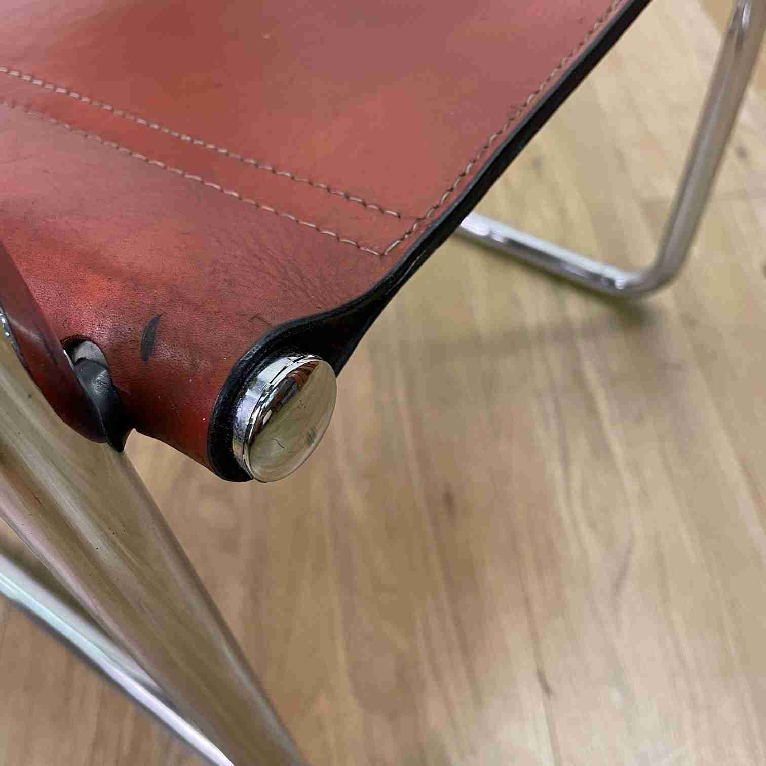 A beautiful set of 6 chrome and leather cantilevered chairs