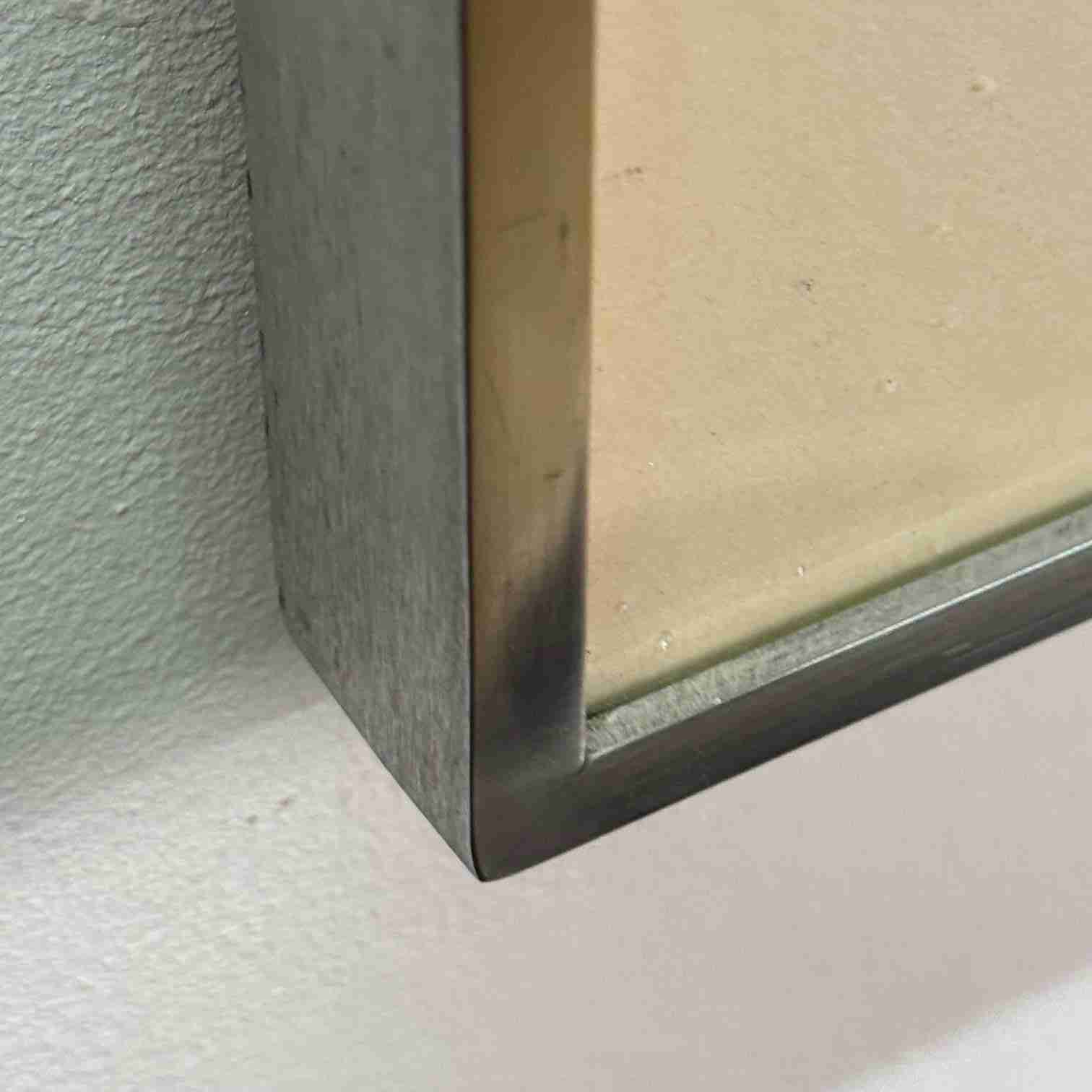 Metal and wood frame behind glass