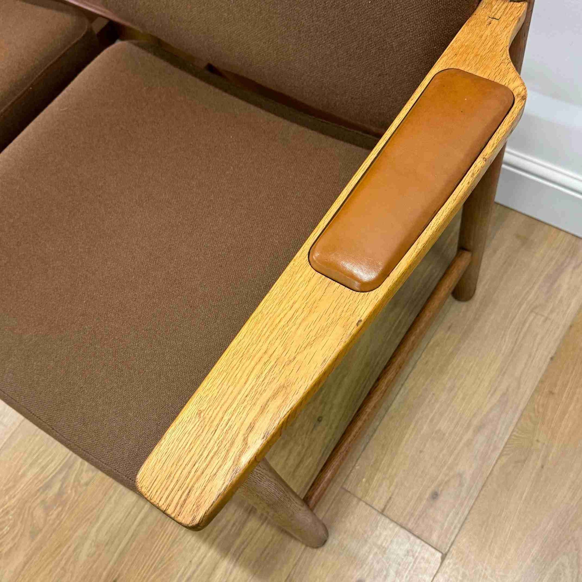 oak frame with wool upholstered seats.