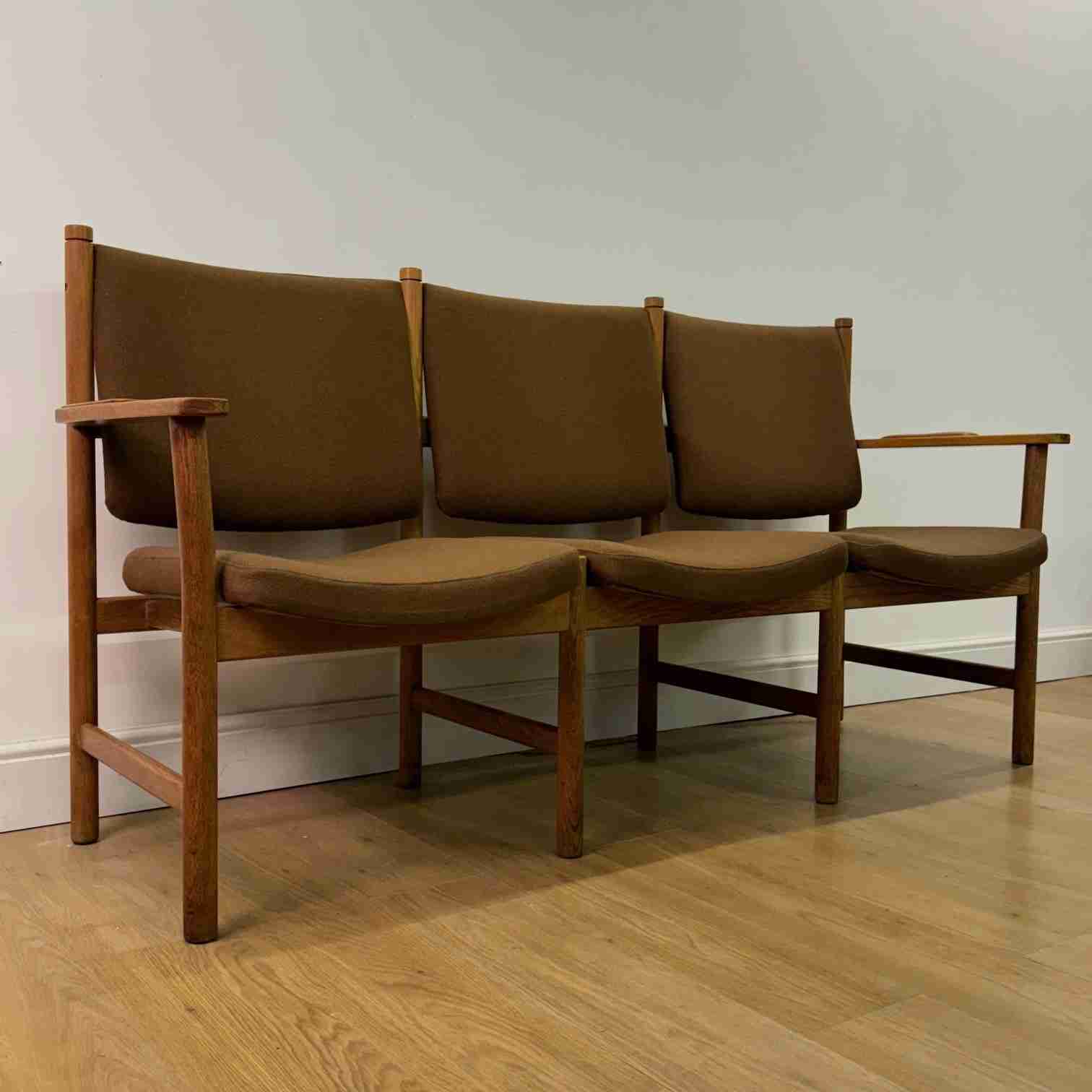 An unusual 3 seat bench designed by Kurt Ostervig for Slagelse Mobelfarbrik Denmark