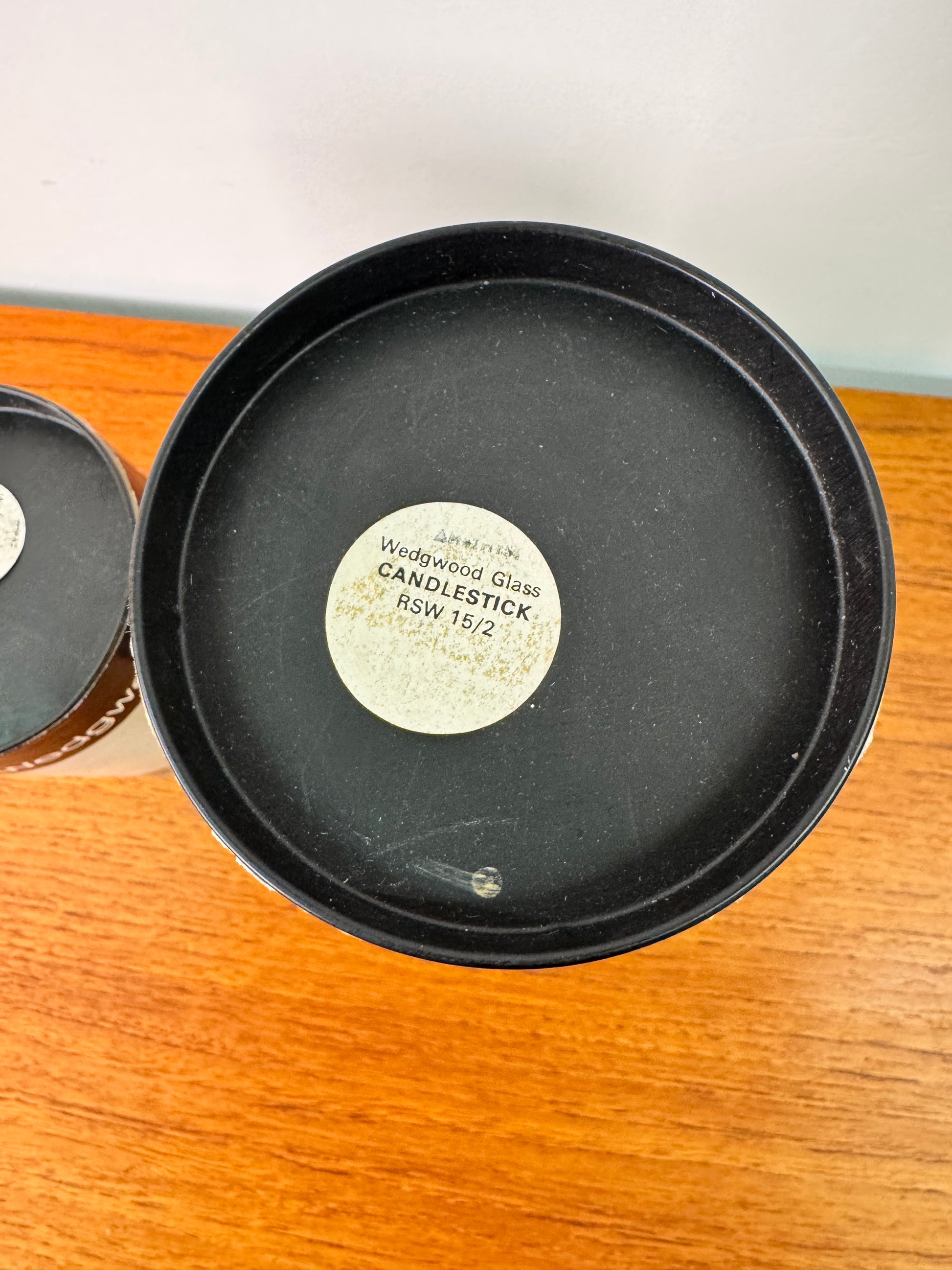 A pair of Brancaster blue glass candlesticks designed by Ronald Stennet Wilson for Wedgwood glass 1970s
