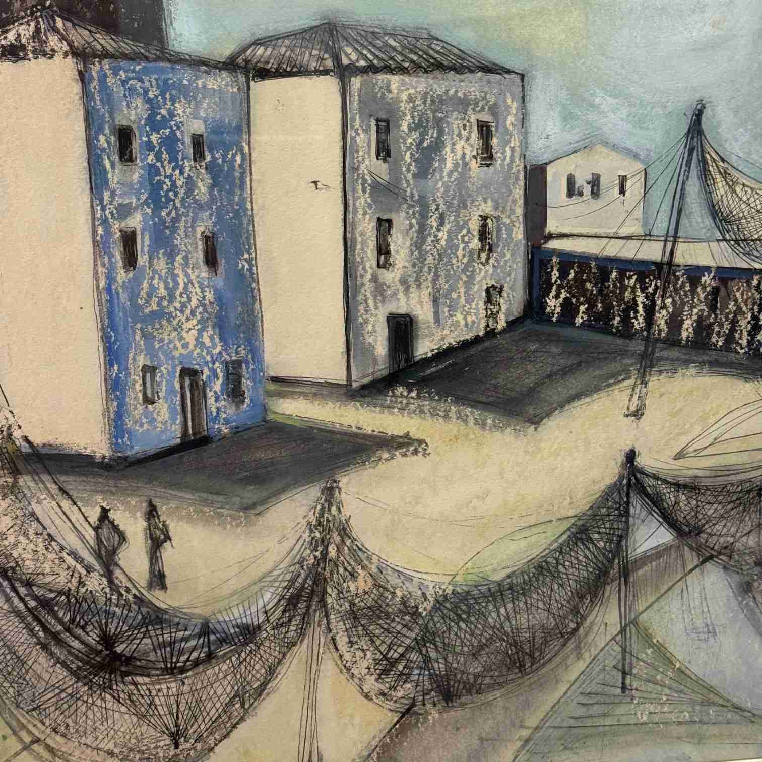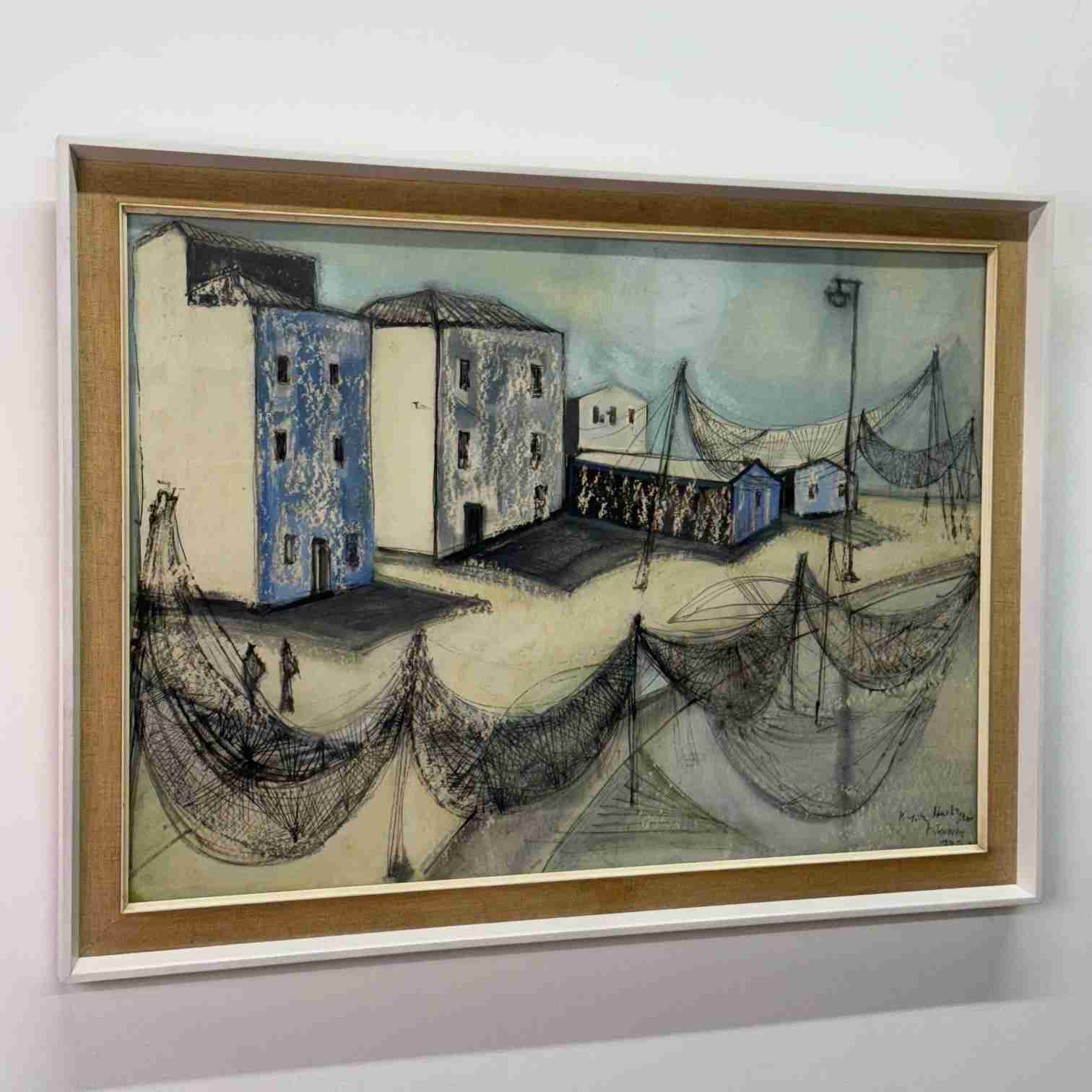 Coastal village with fishing nets by Brigitte Heiliger Kramm 1960