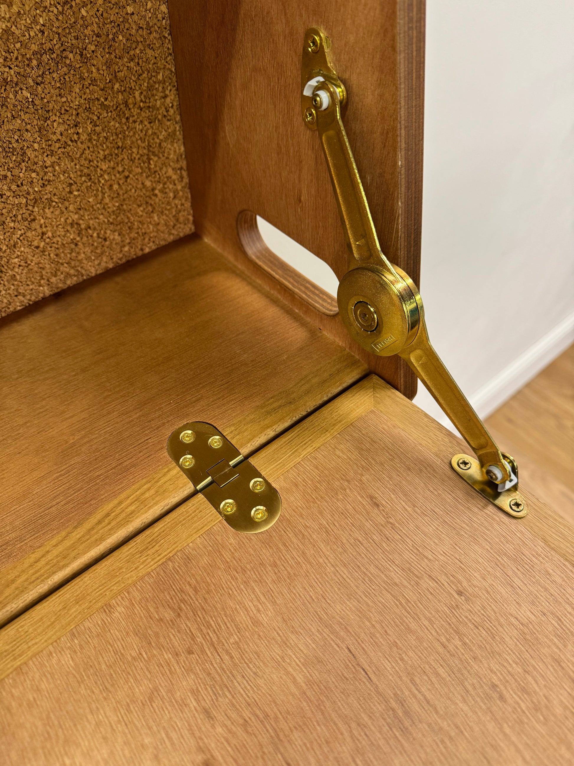 64cm wide 23.5cm deep and 73cm tall , desk projects 48cm