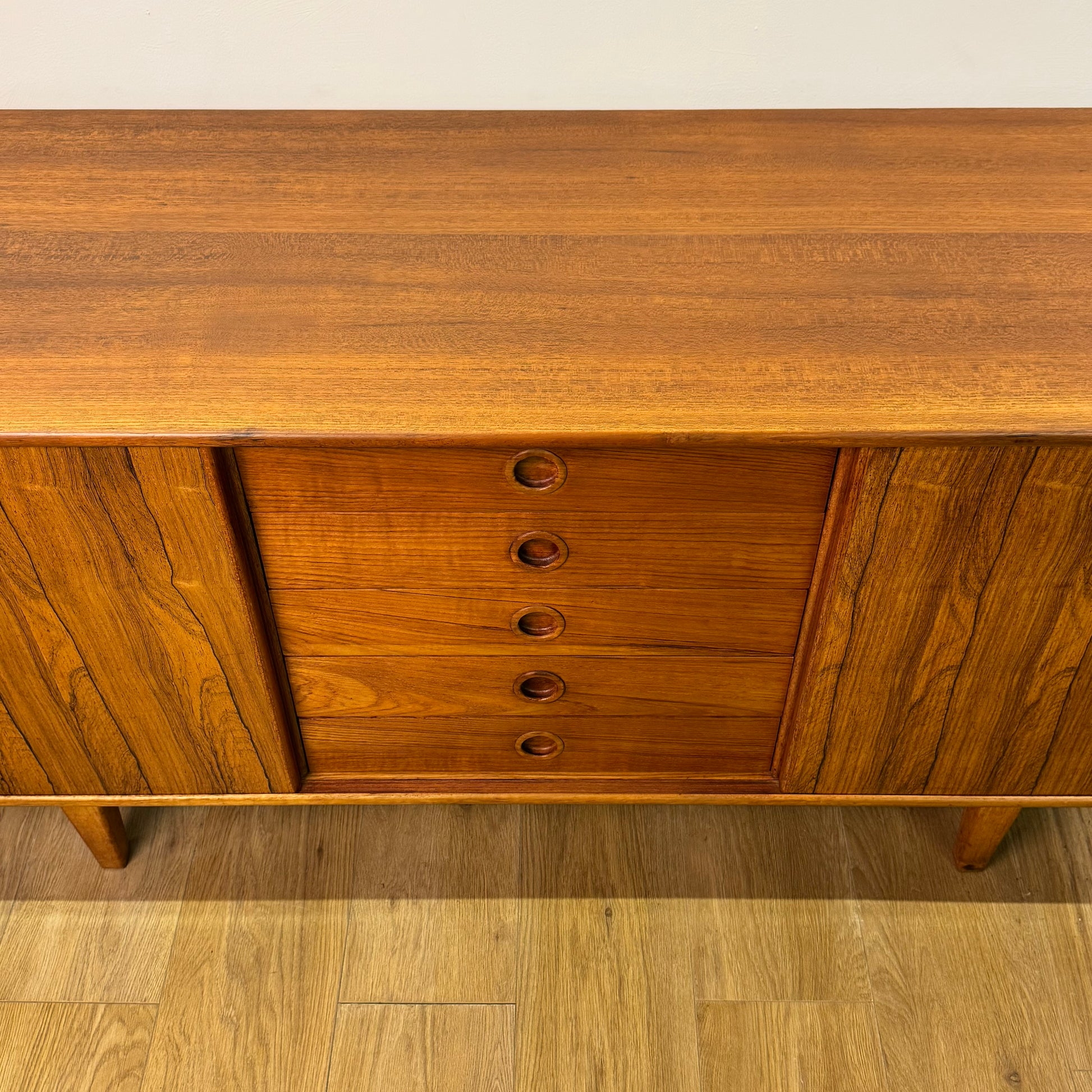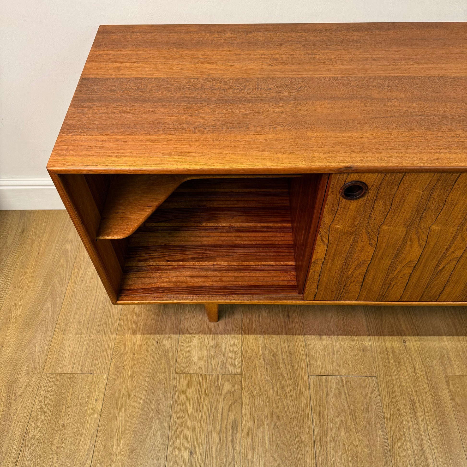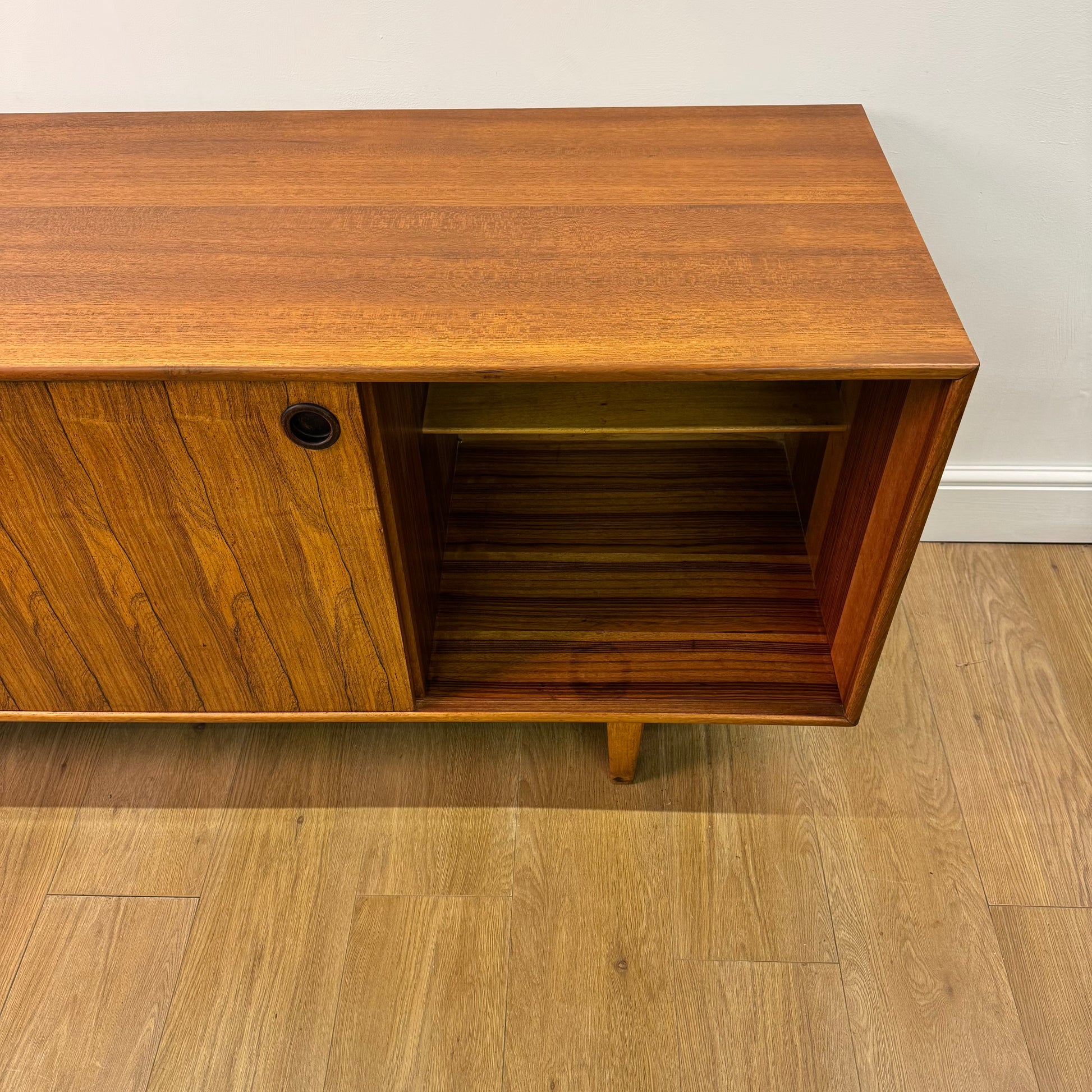An unusual teak sideboard with rosewood sliding doors dating from the 1950s