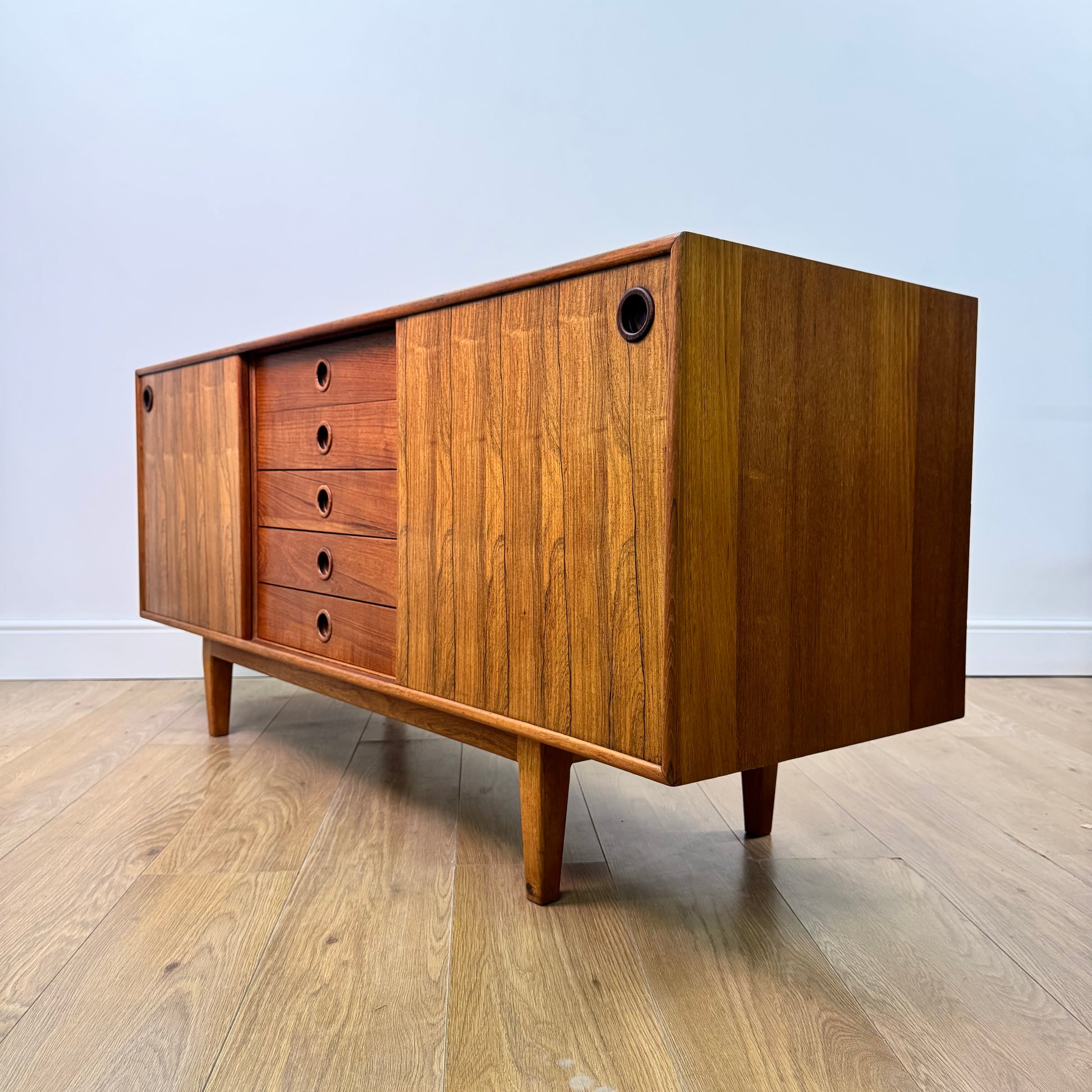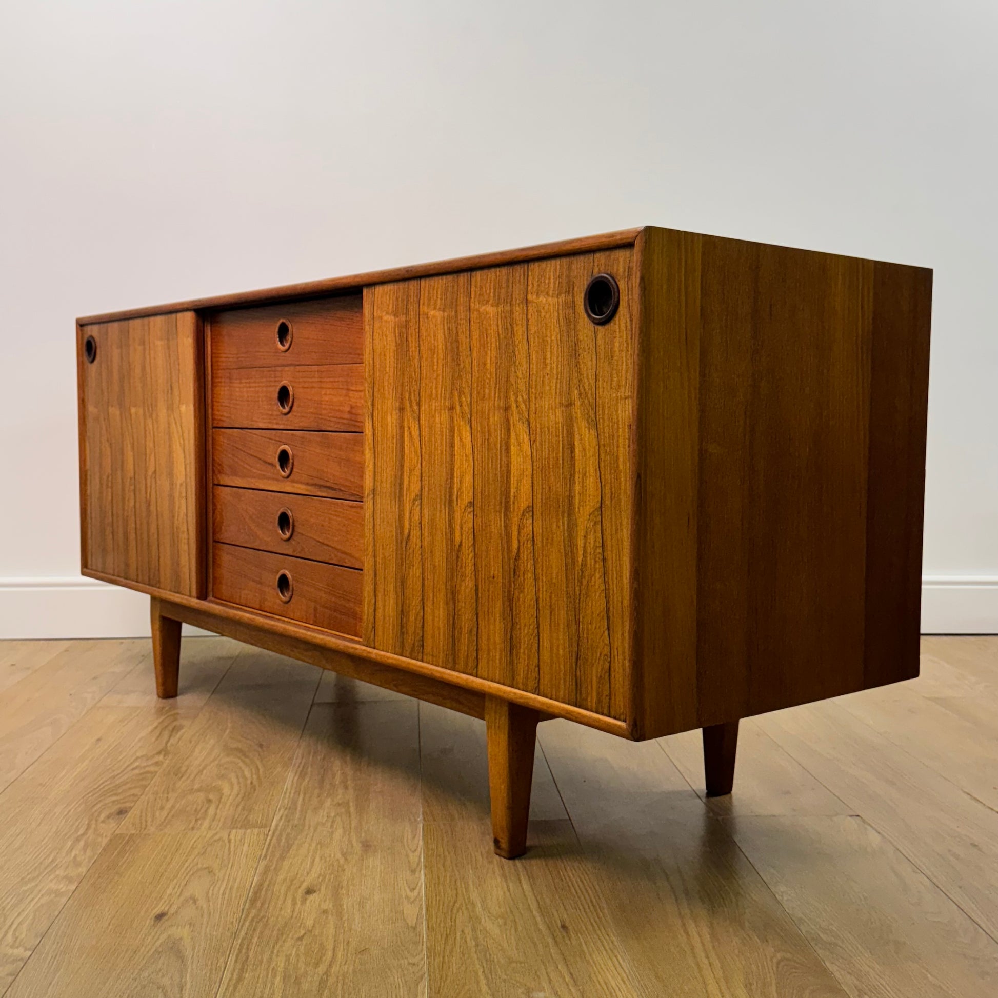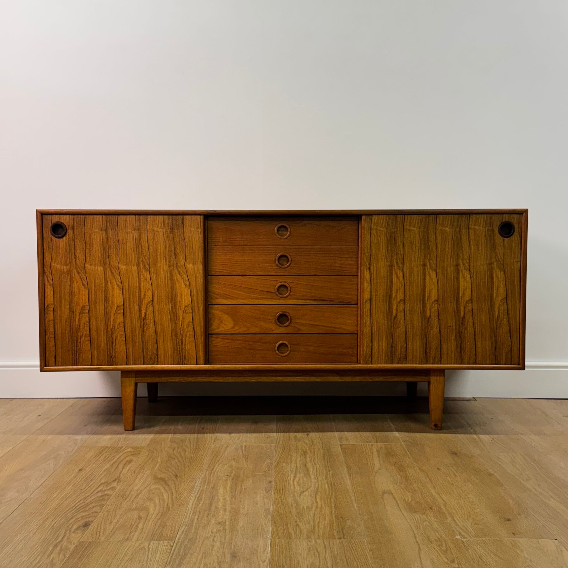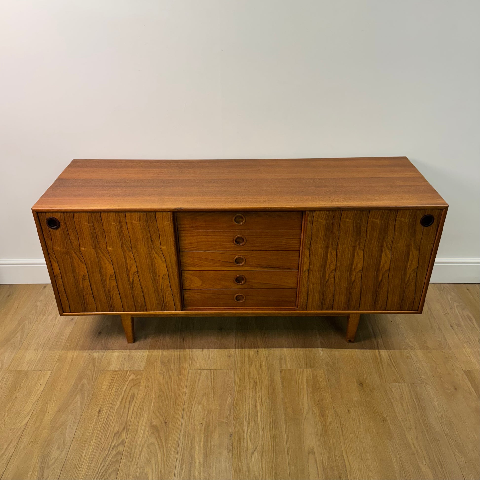 An unusual teak sideboard with rosewood sliding doors dating from the 1950s