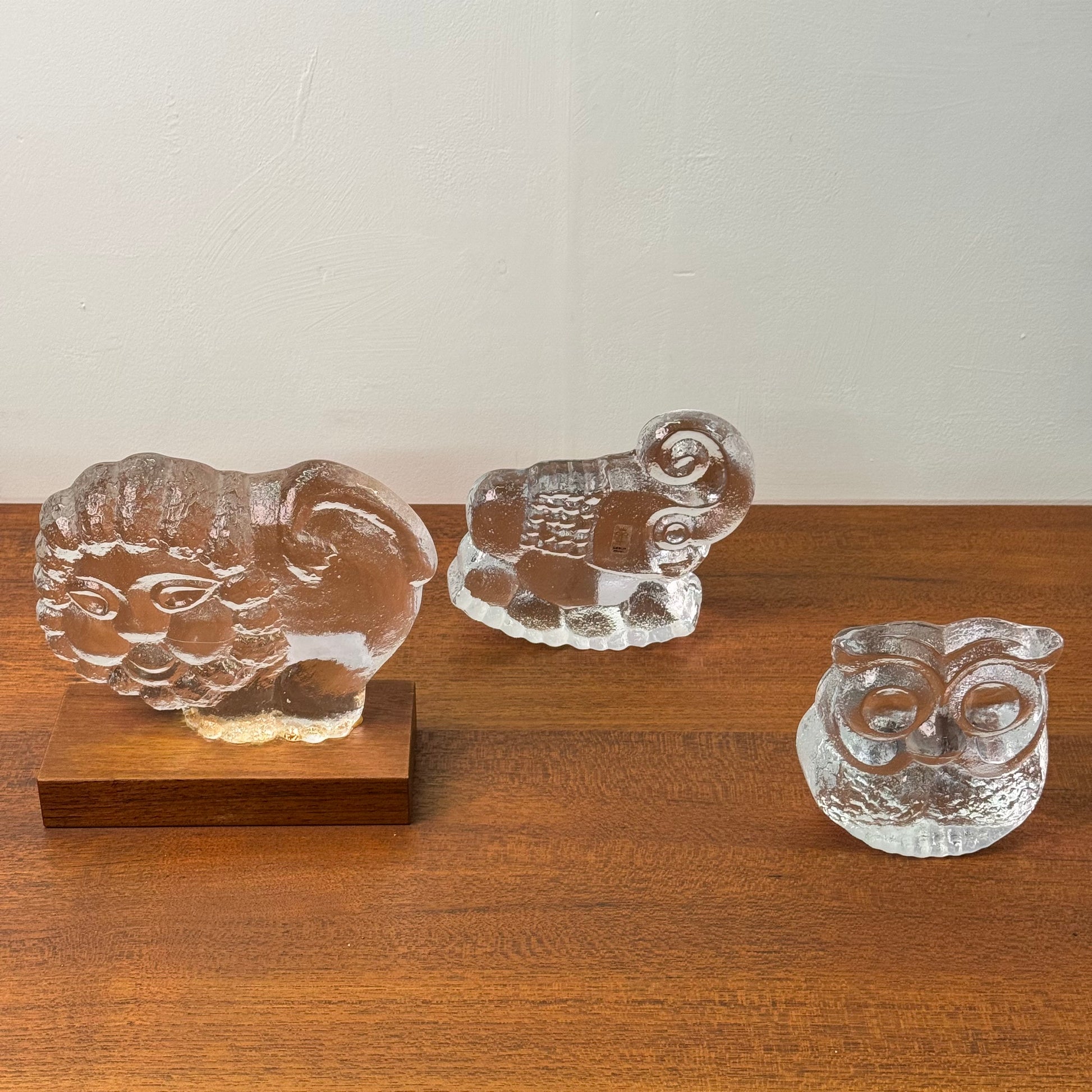 A Brutalist glass elephant figurine designed by Lars Hellsten for Kruf Glasbruk Sweden 1970s