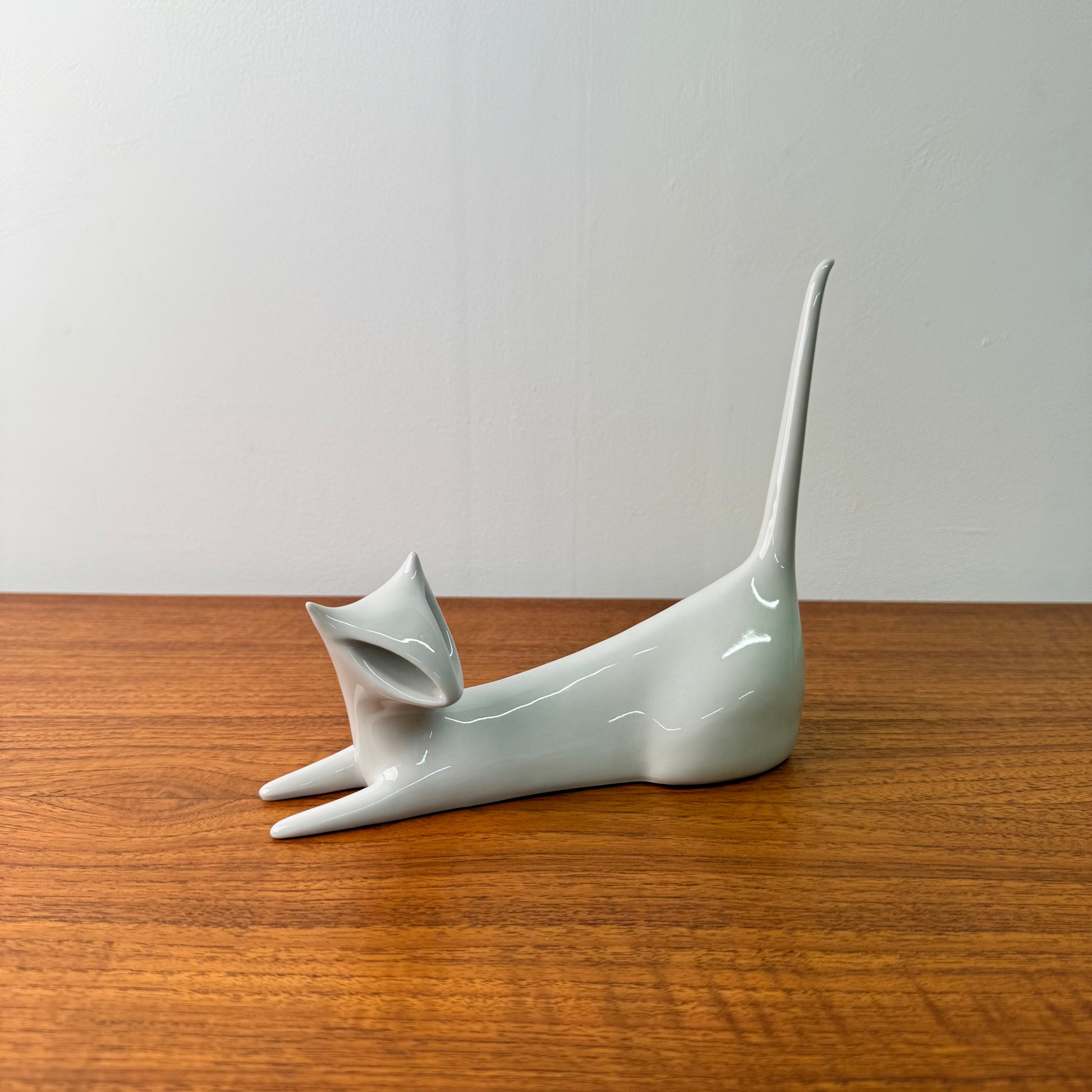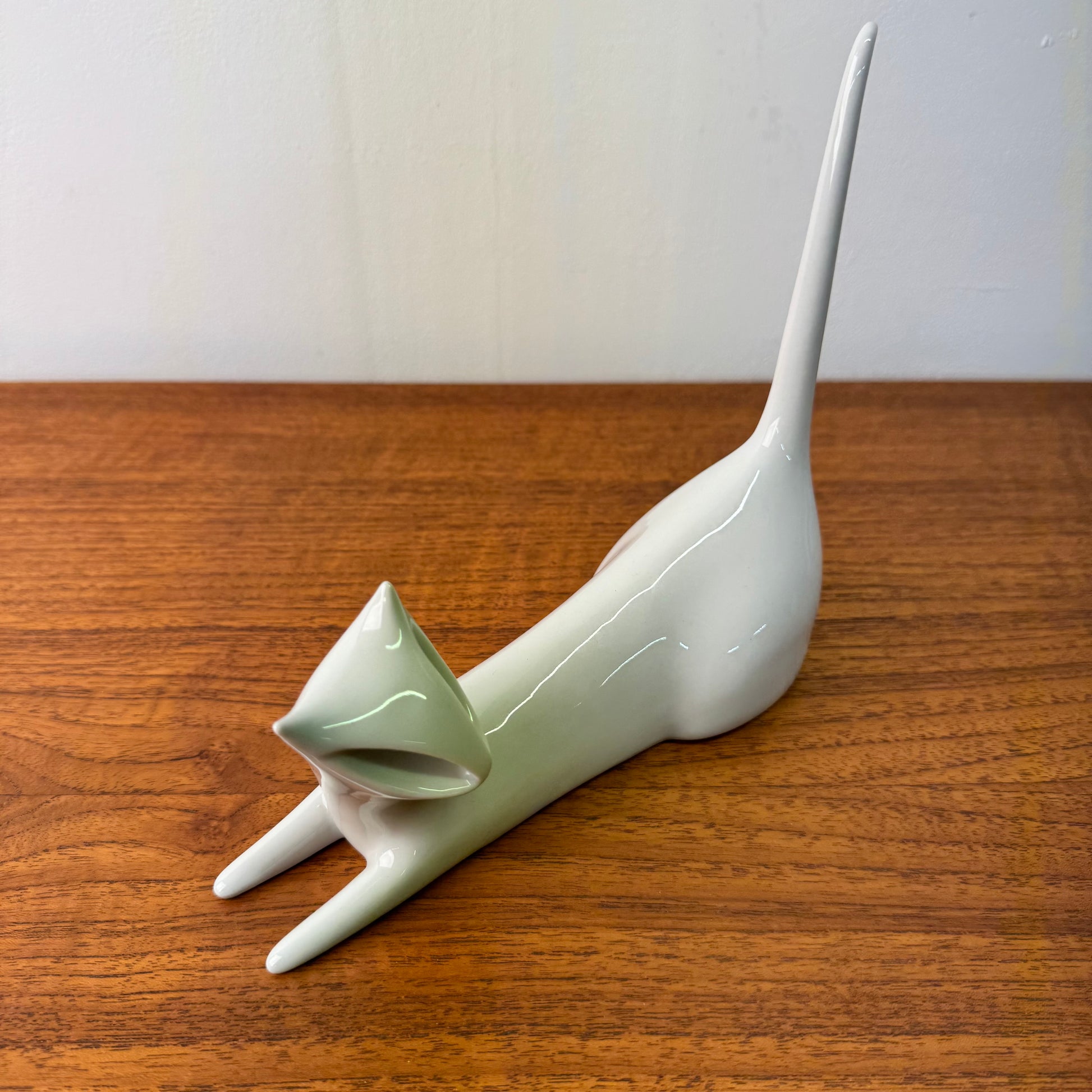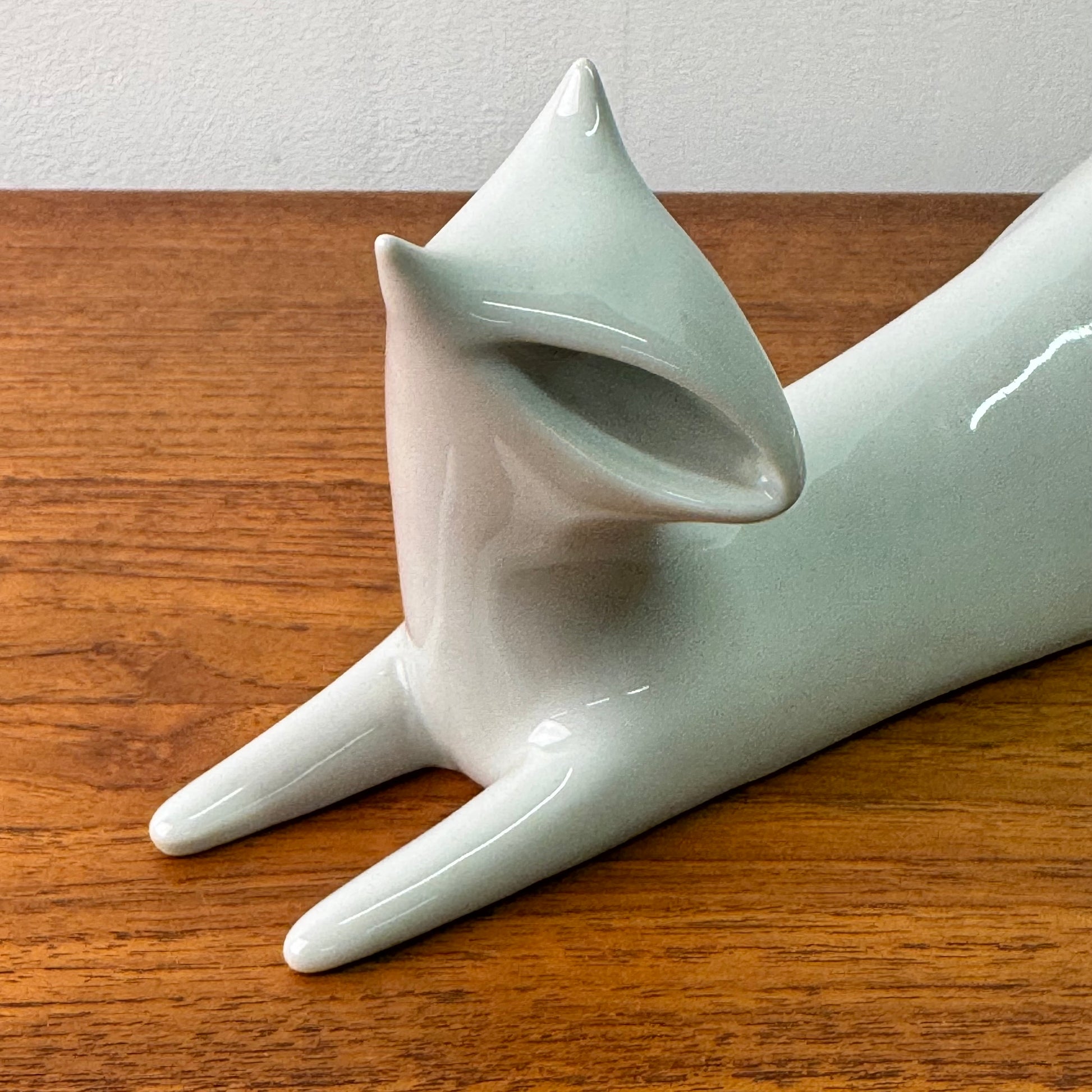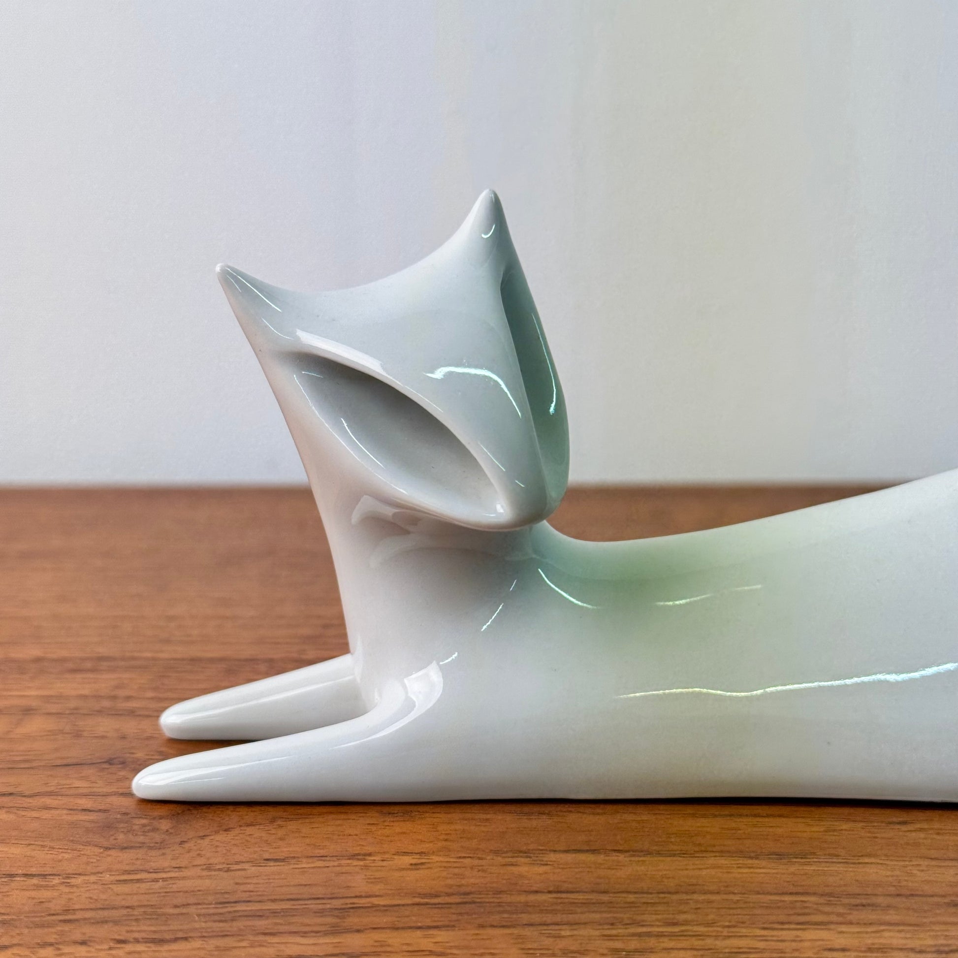Midcentury white stylised ceramic cat designed by Jaroslav Jezebel