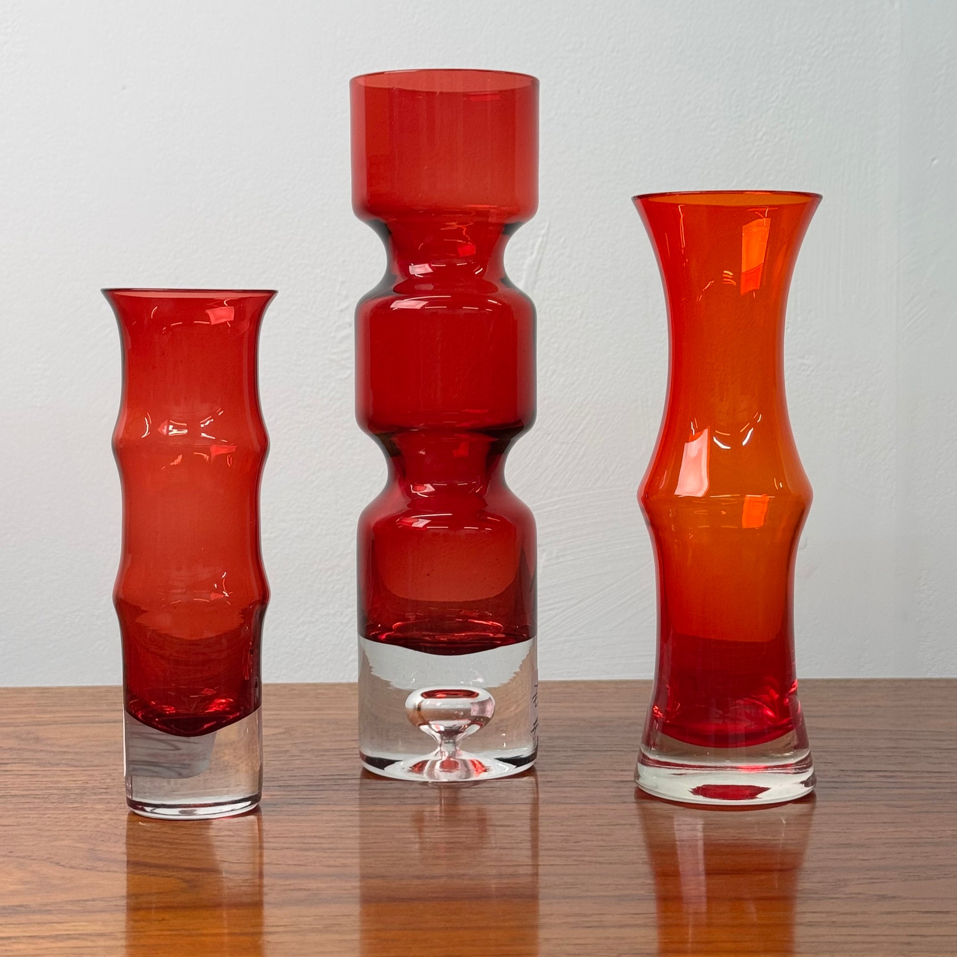 Undulating red glass vase by Bo Borgstrom for Aseda Sweden