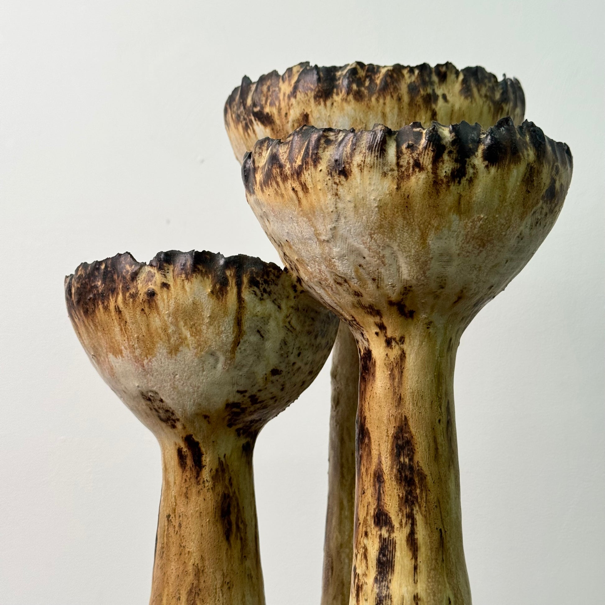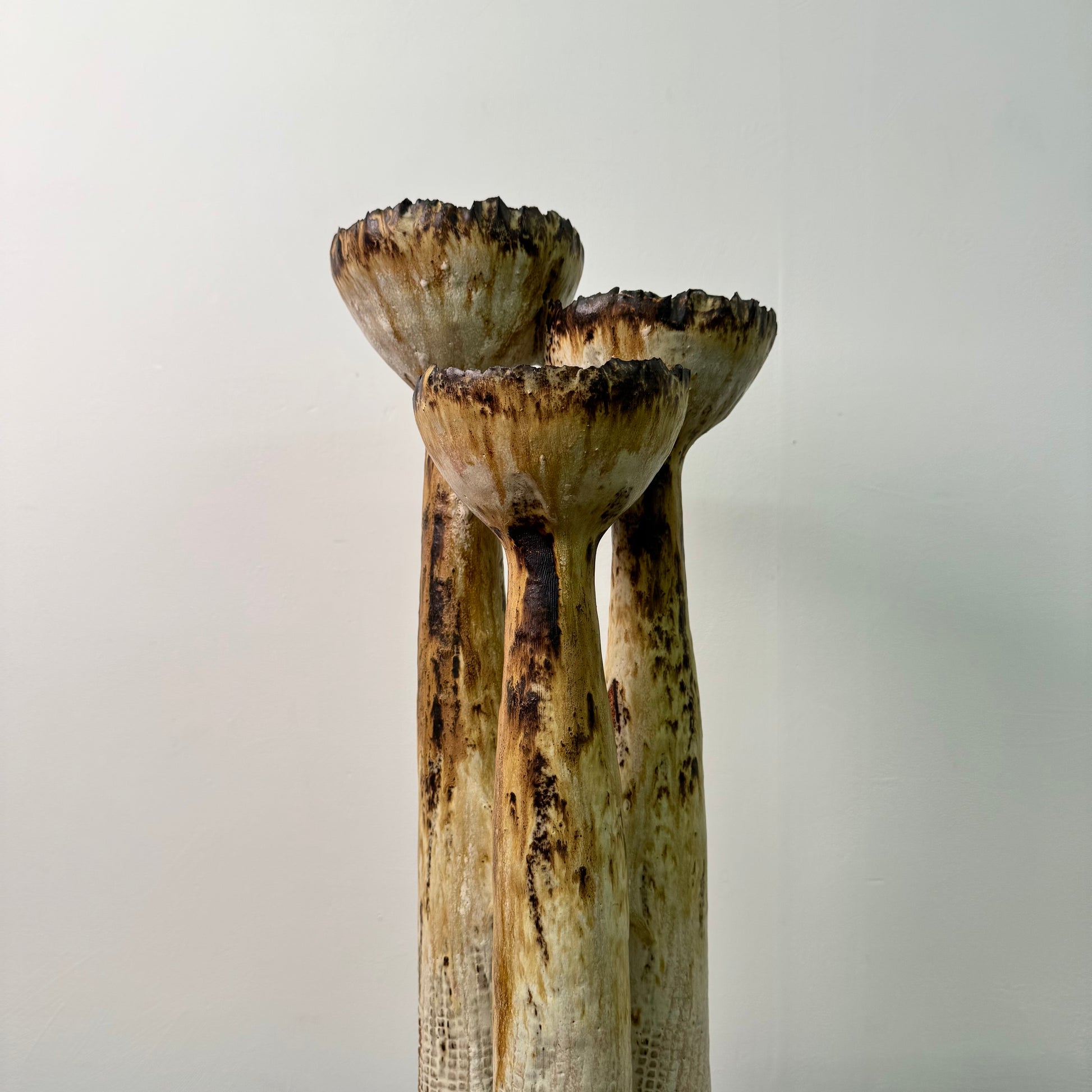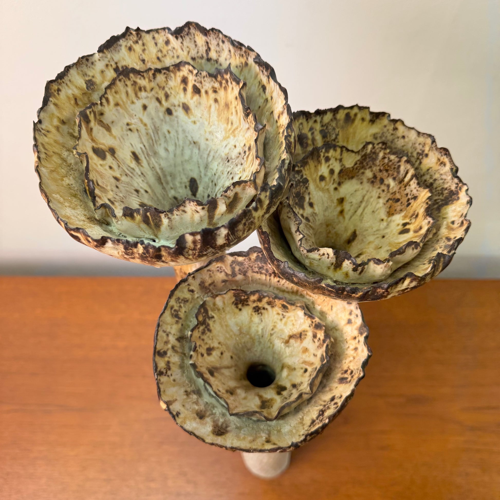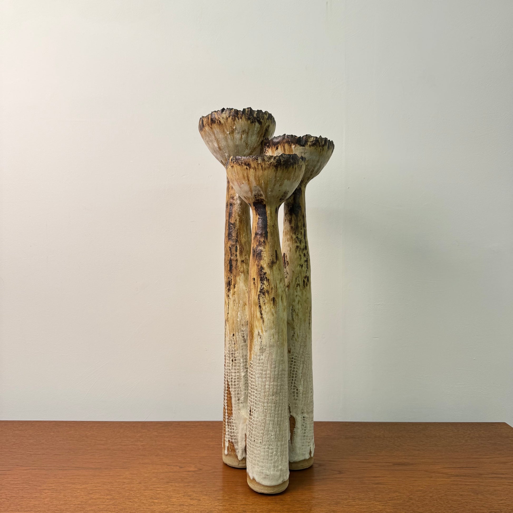An interesting brutalist style slab built vase with impressed decoration and pinched tops