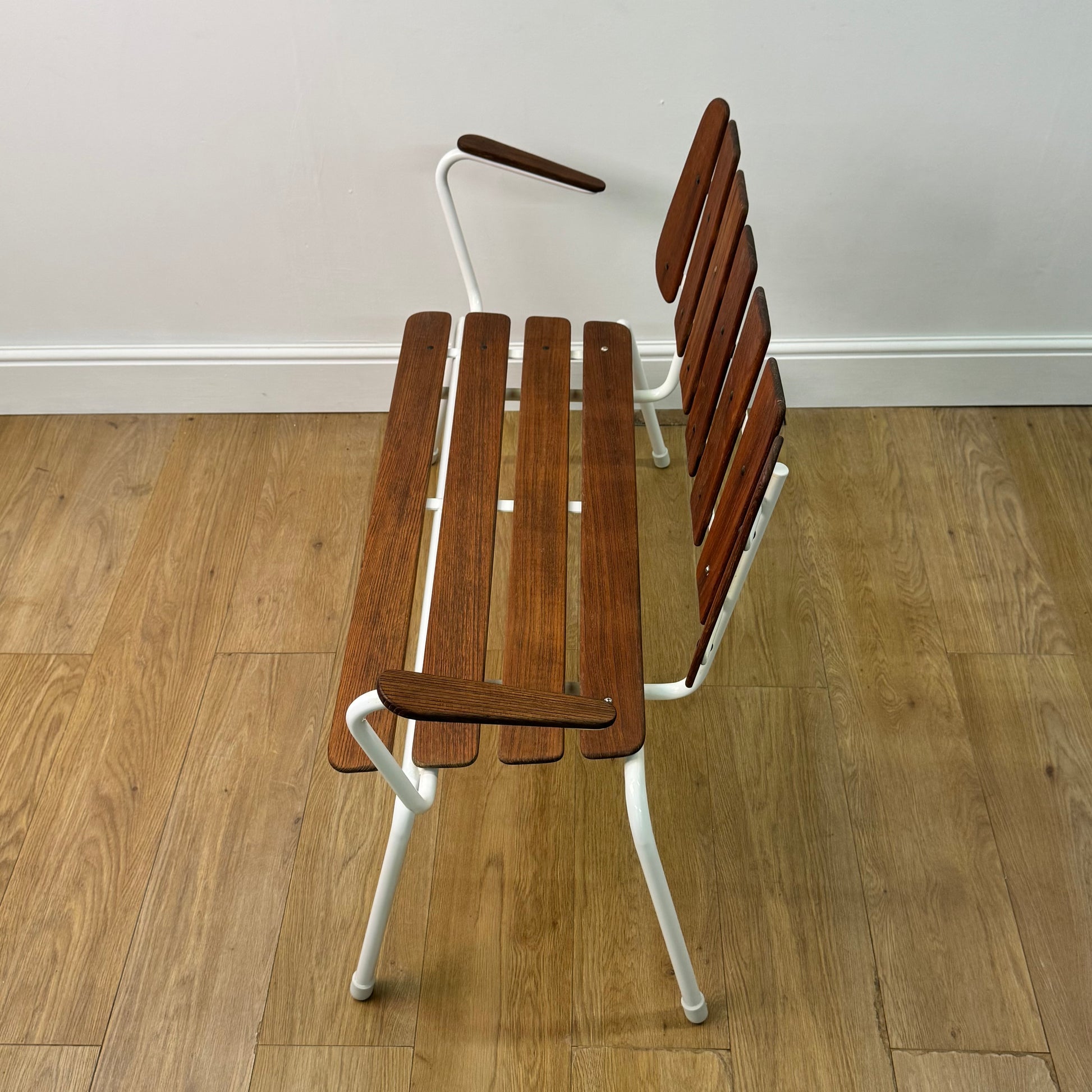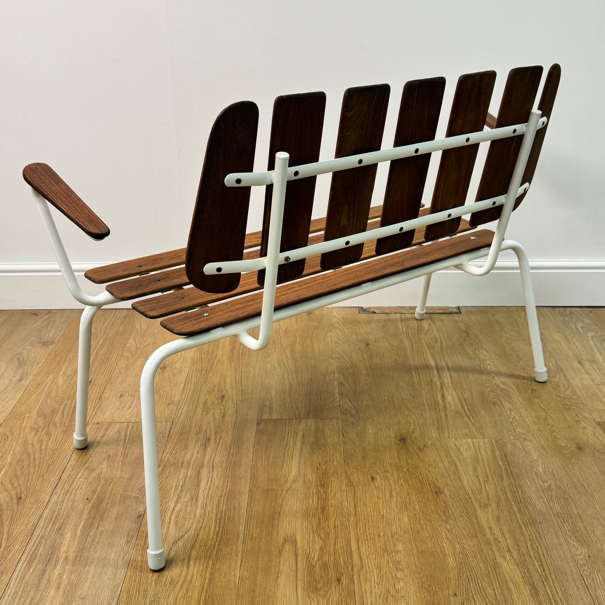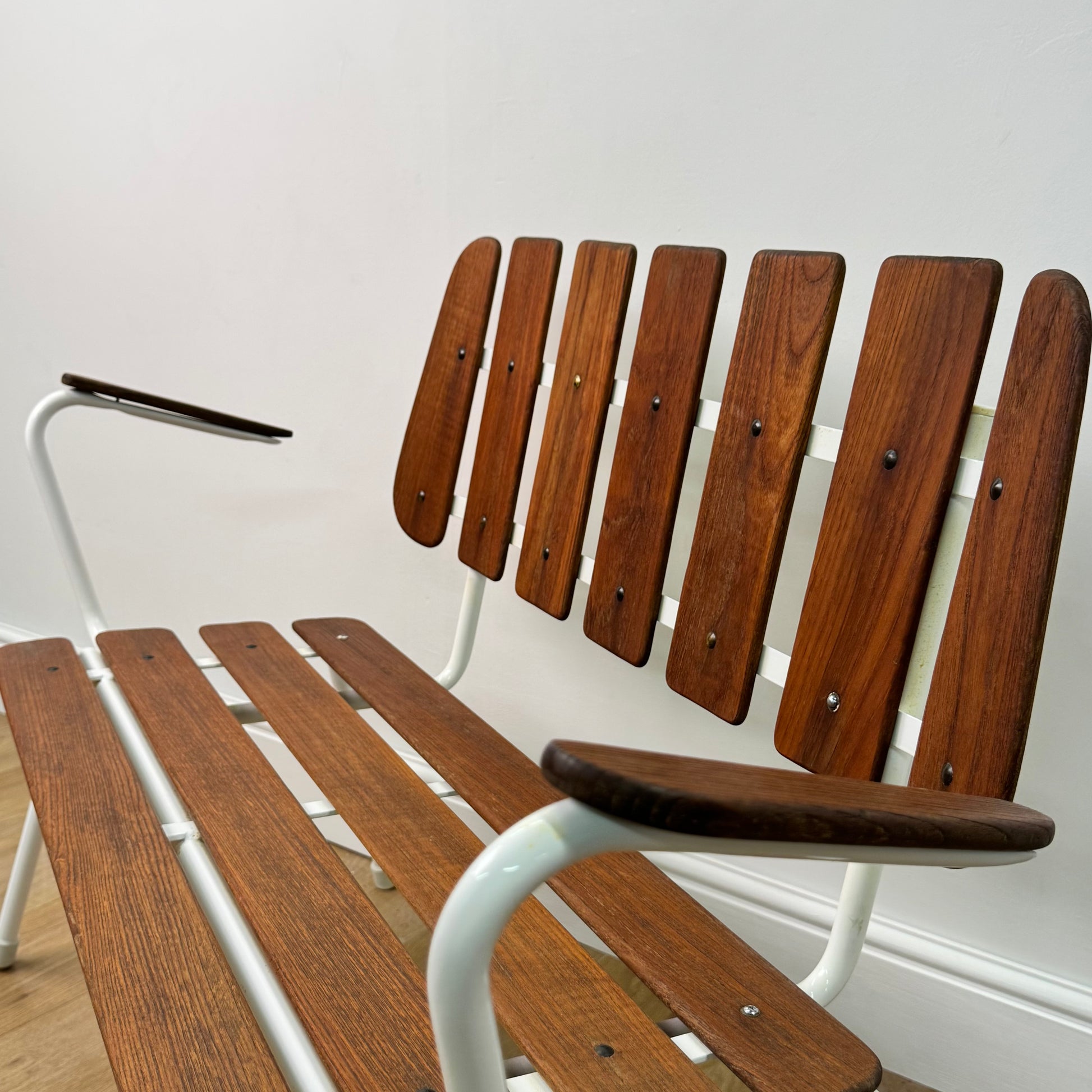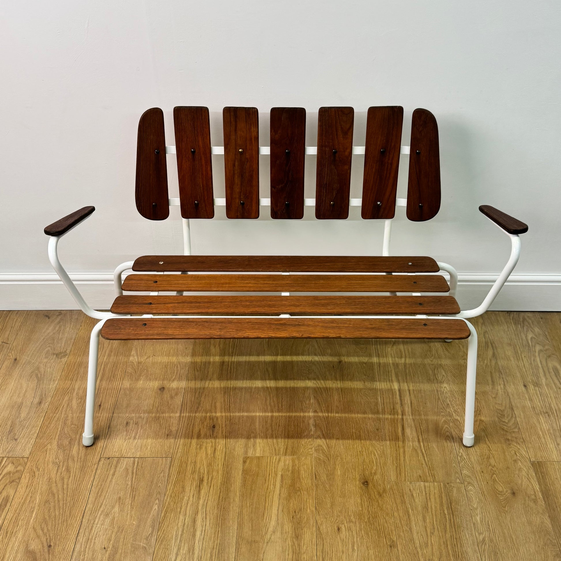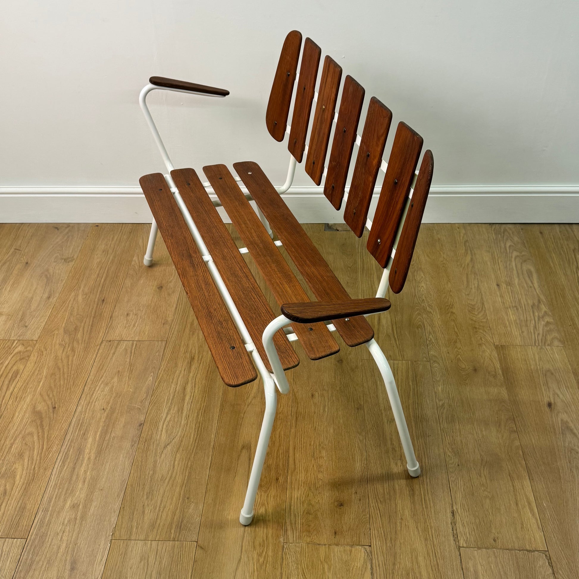 This bench has been fully restored with the frame powder coated and new rubber ferrules