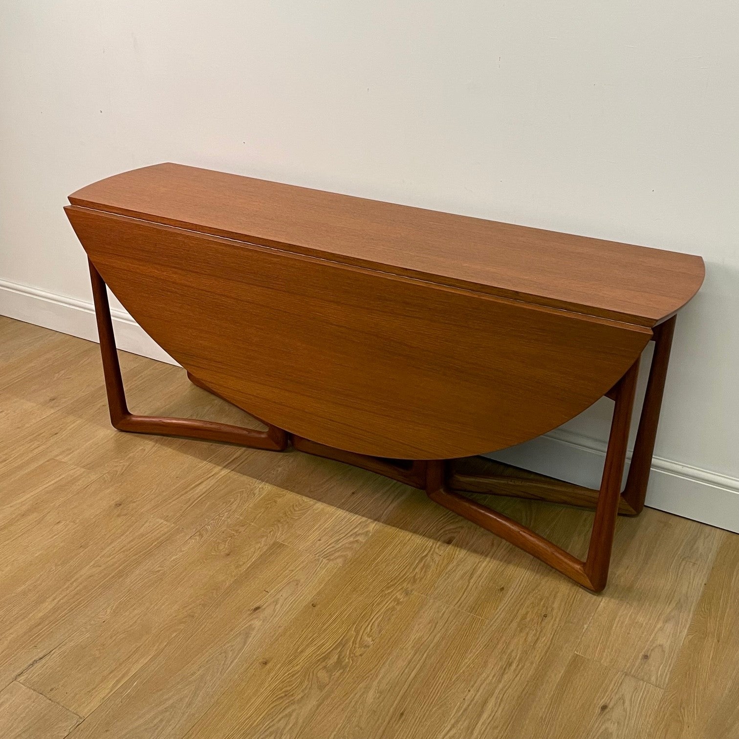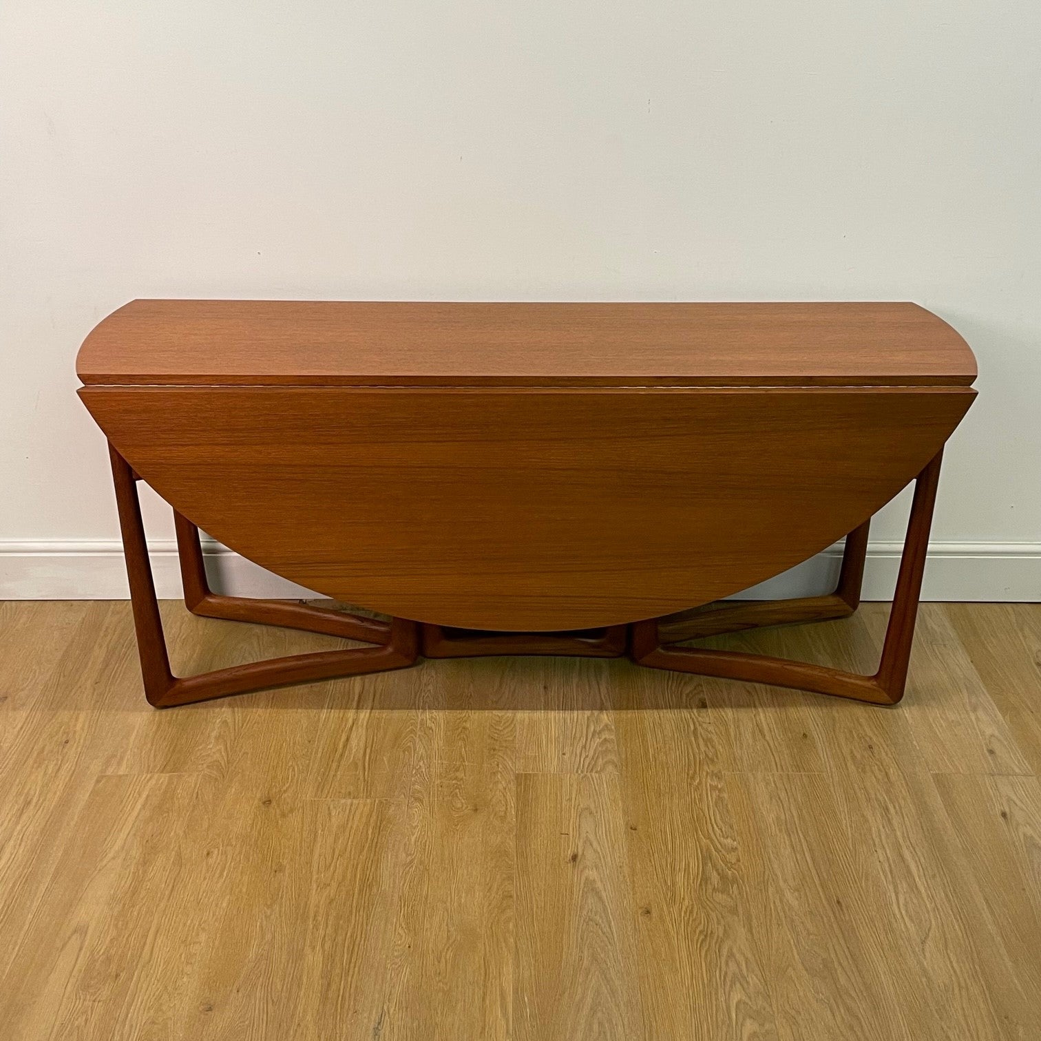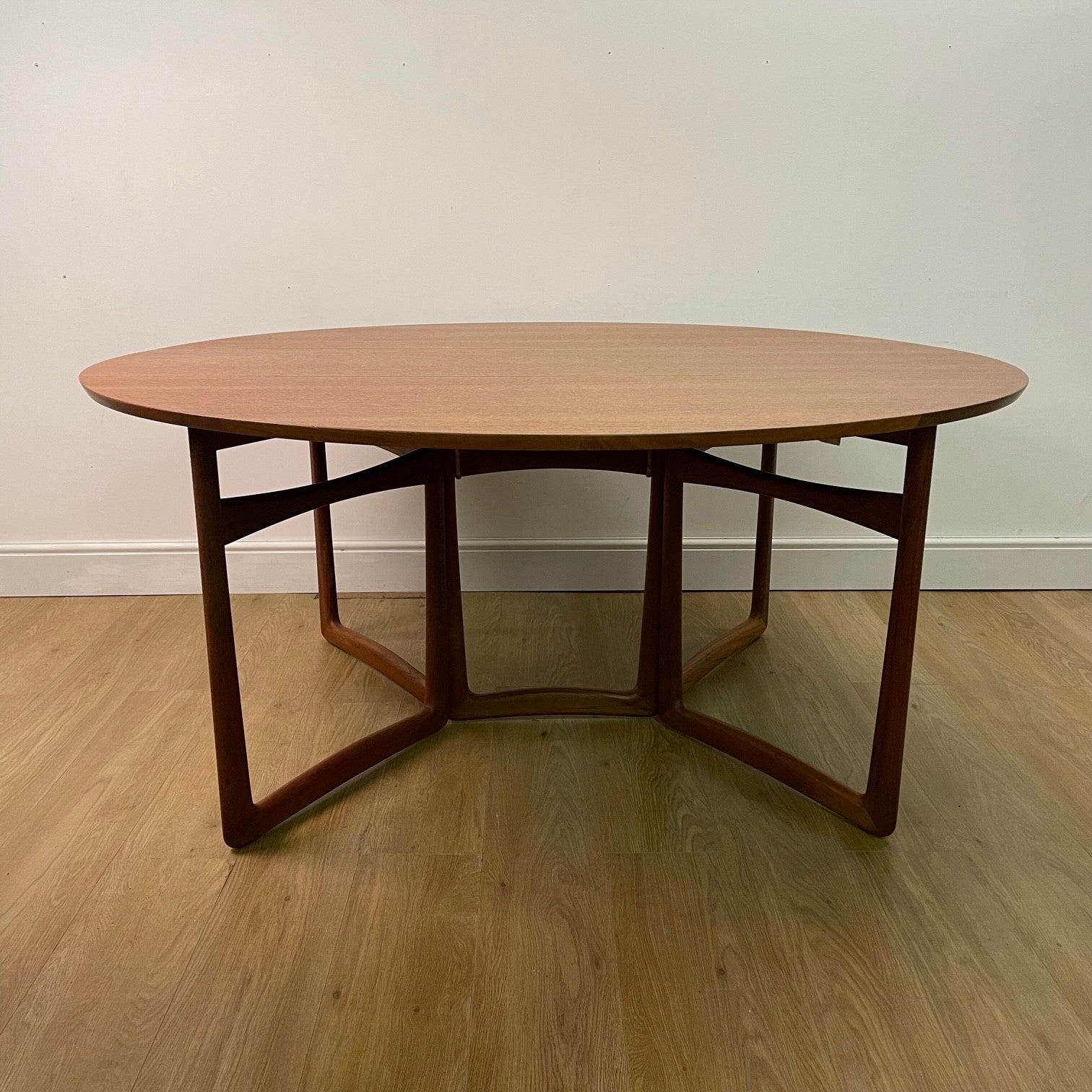 A beautiful and classic mid century teak drop leaf dining table designed by Peter Hvidt & Orla Mølgaard Nielsen