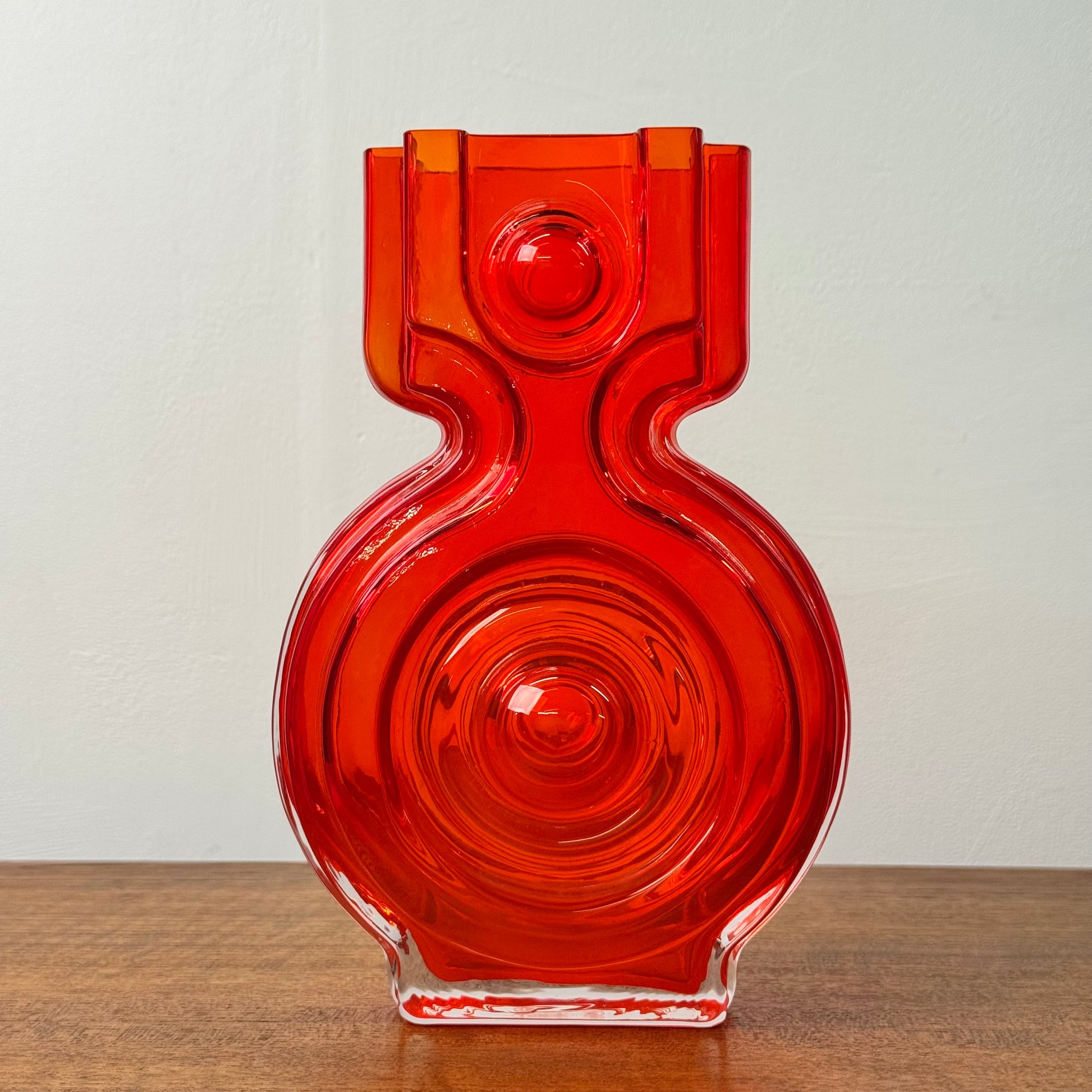 An orange Emma glass vase designed by Helena Tynell for Riihimaen Lasi Finland 1960s