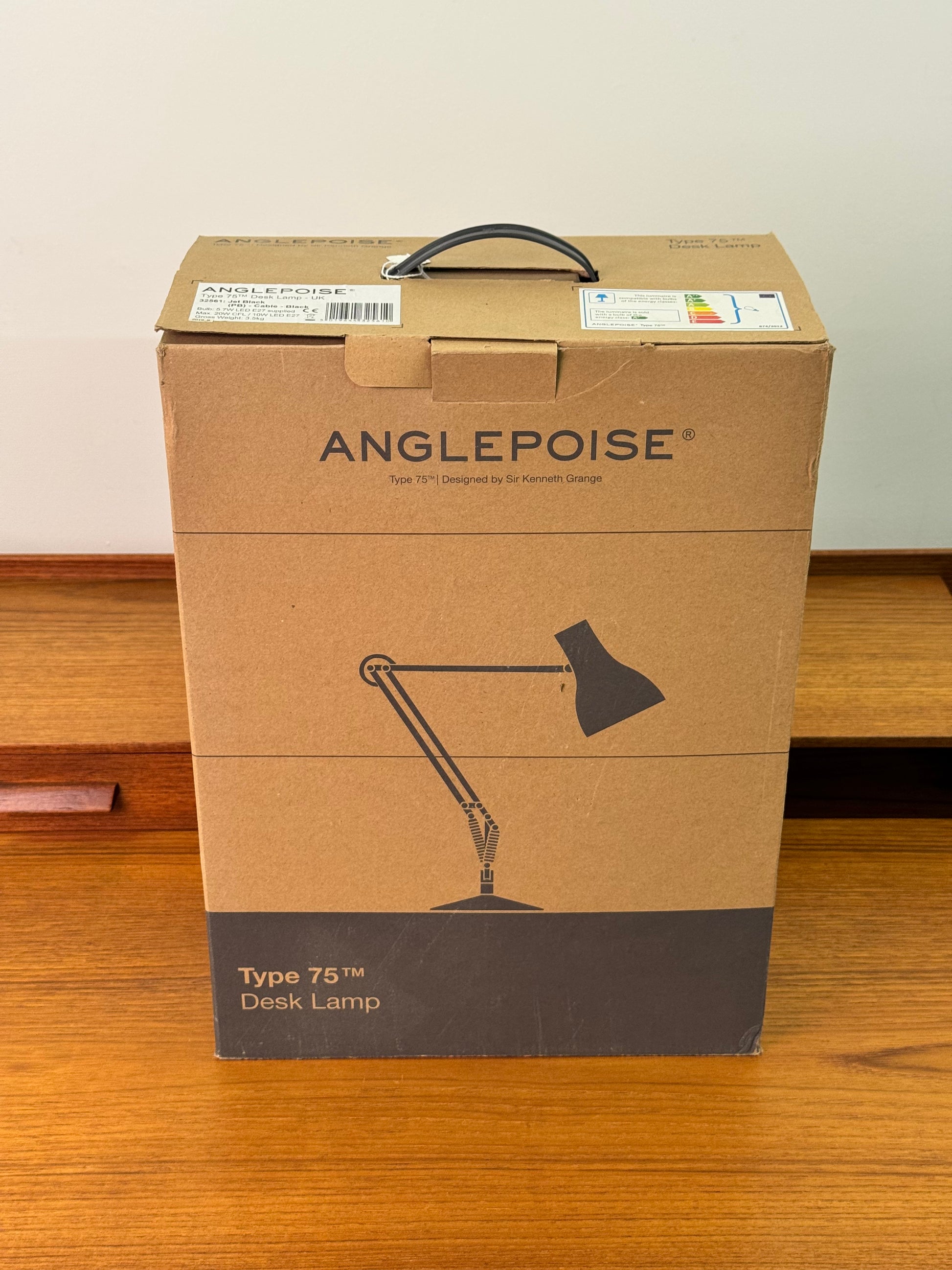 Black coloured model 75 anglepoise desk light brand new and unopened and in its box