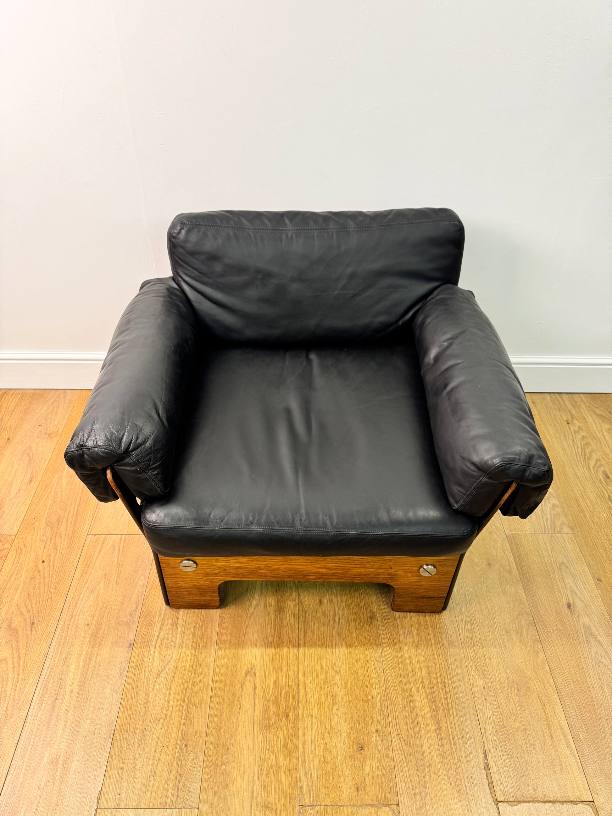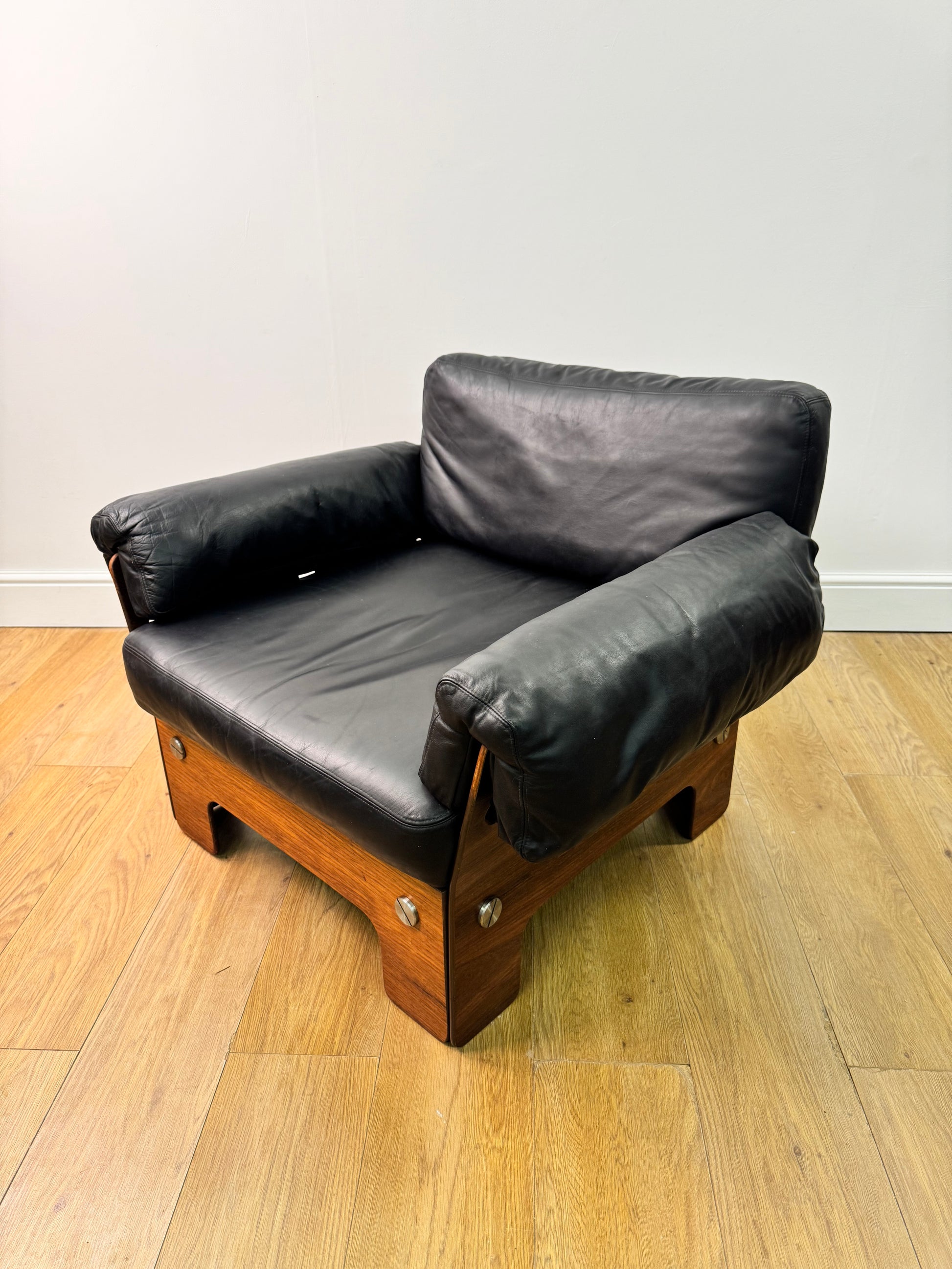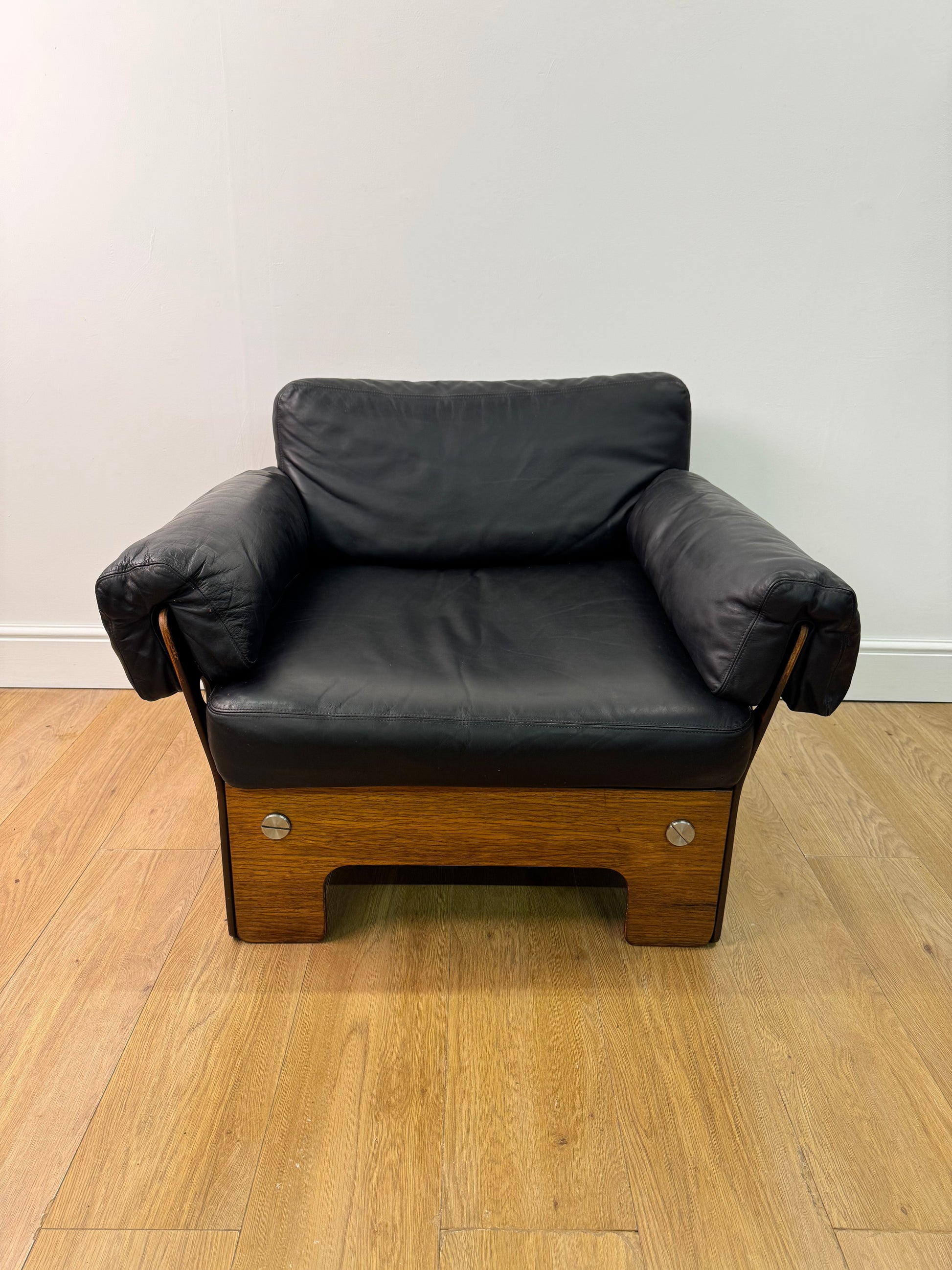 An amazing black leather armchair designed by John Hardy UK 1960s