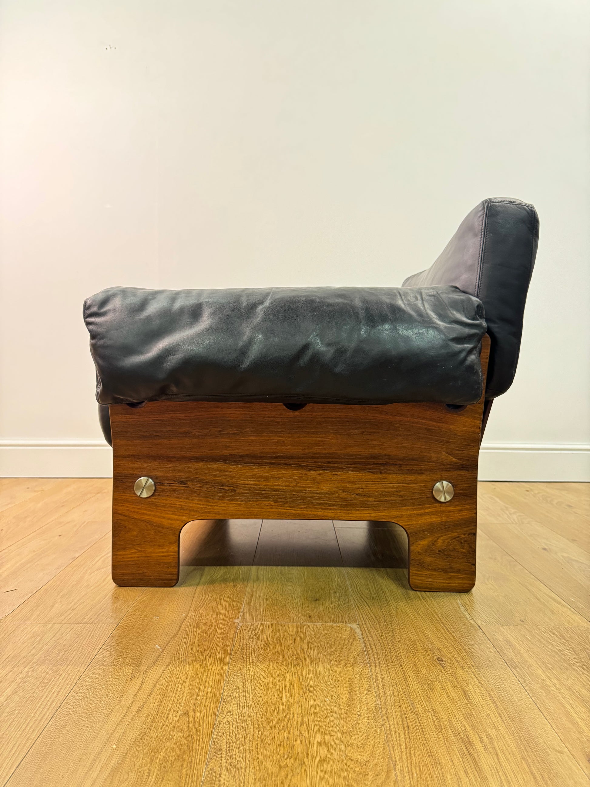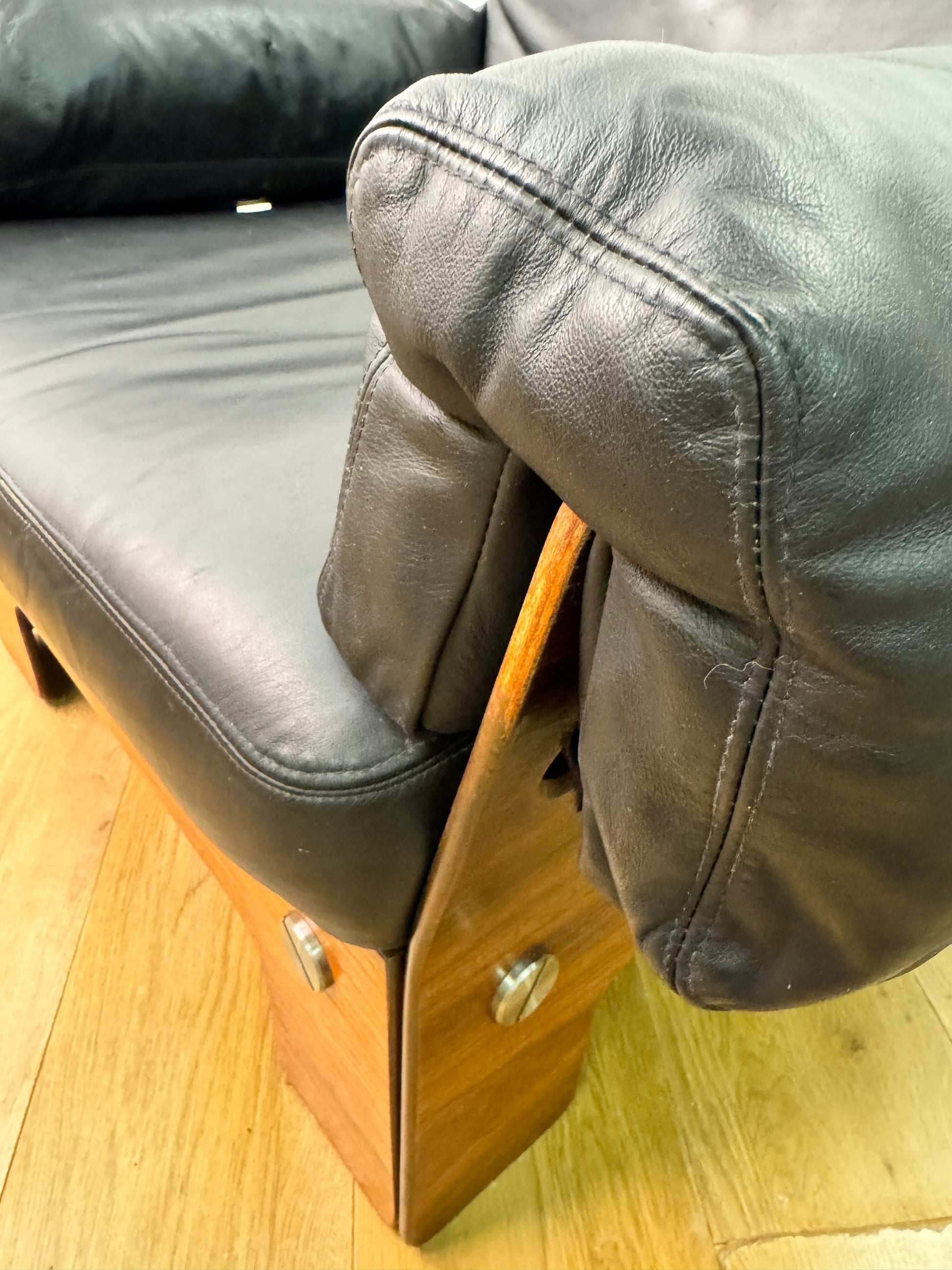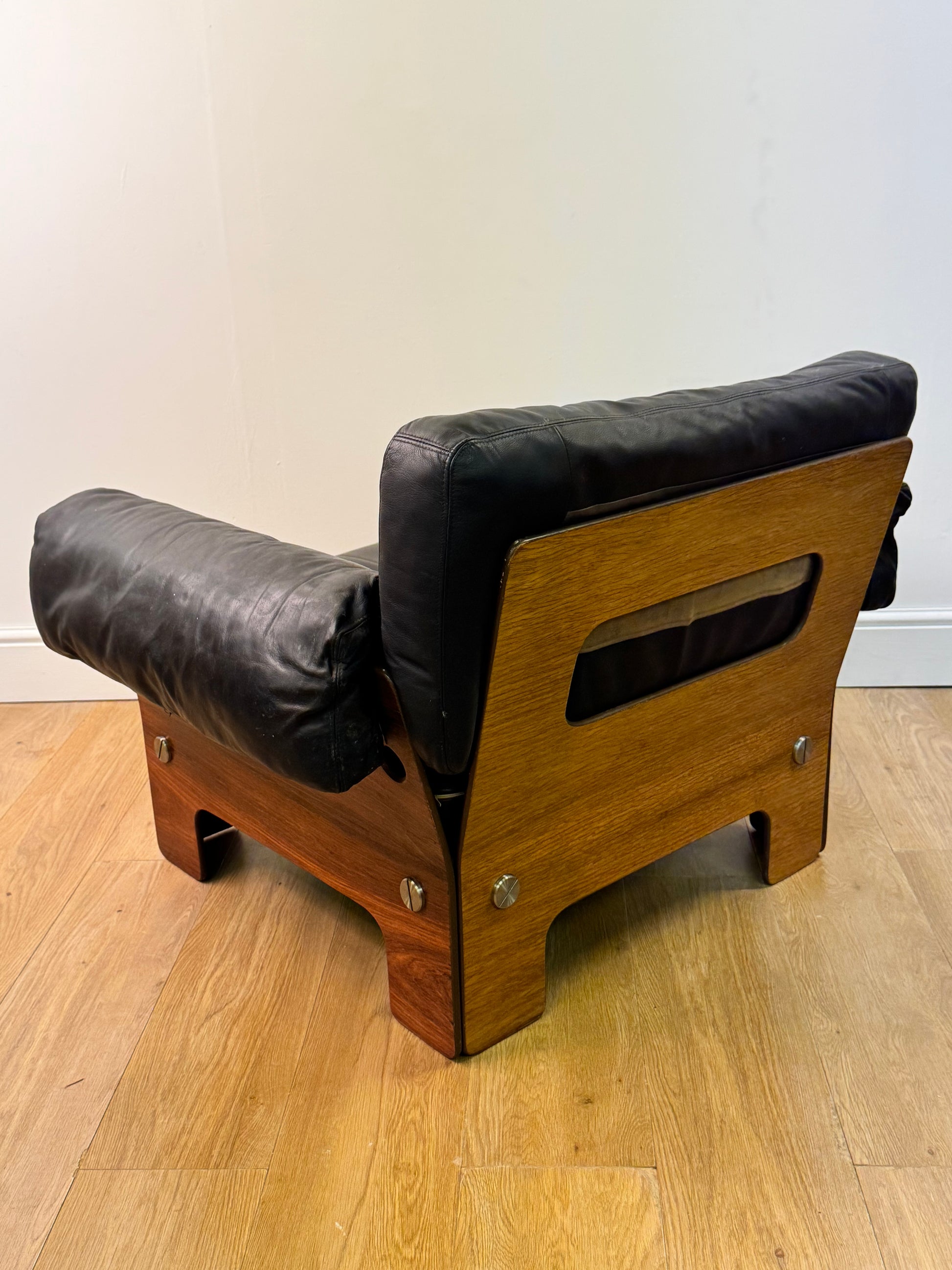 An amazing black leather armchair designed by John Hardy UK 1960s