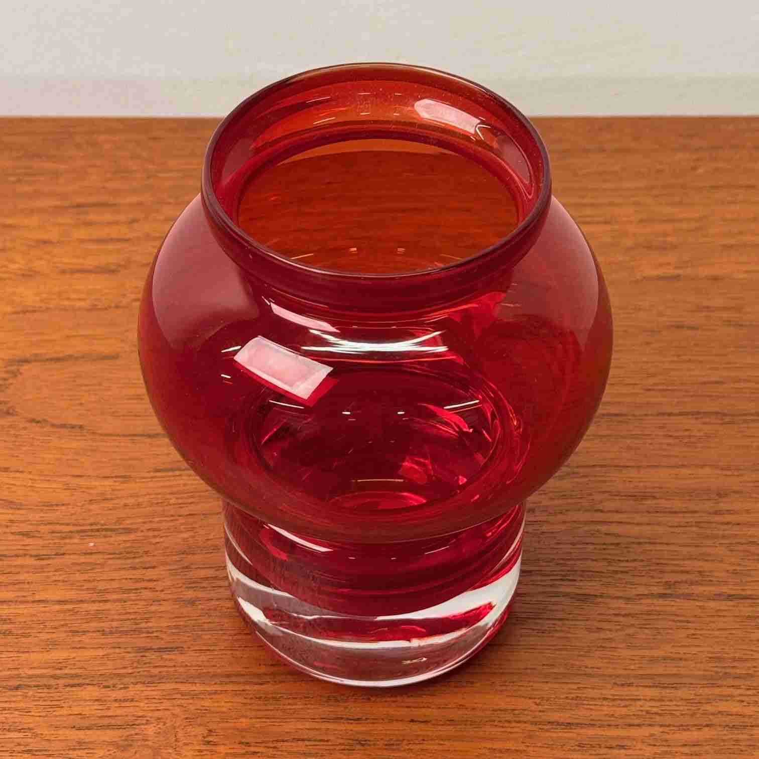 Red glass vase by Riihimaki Finland