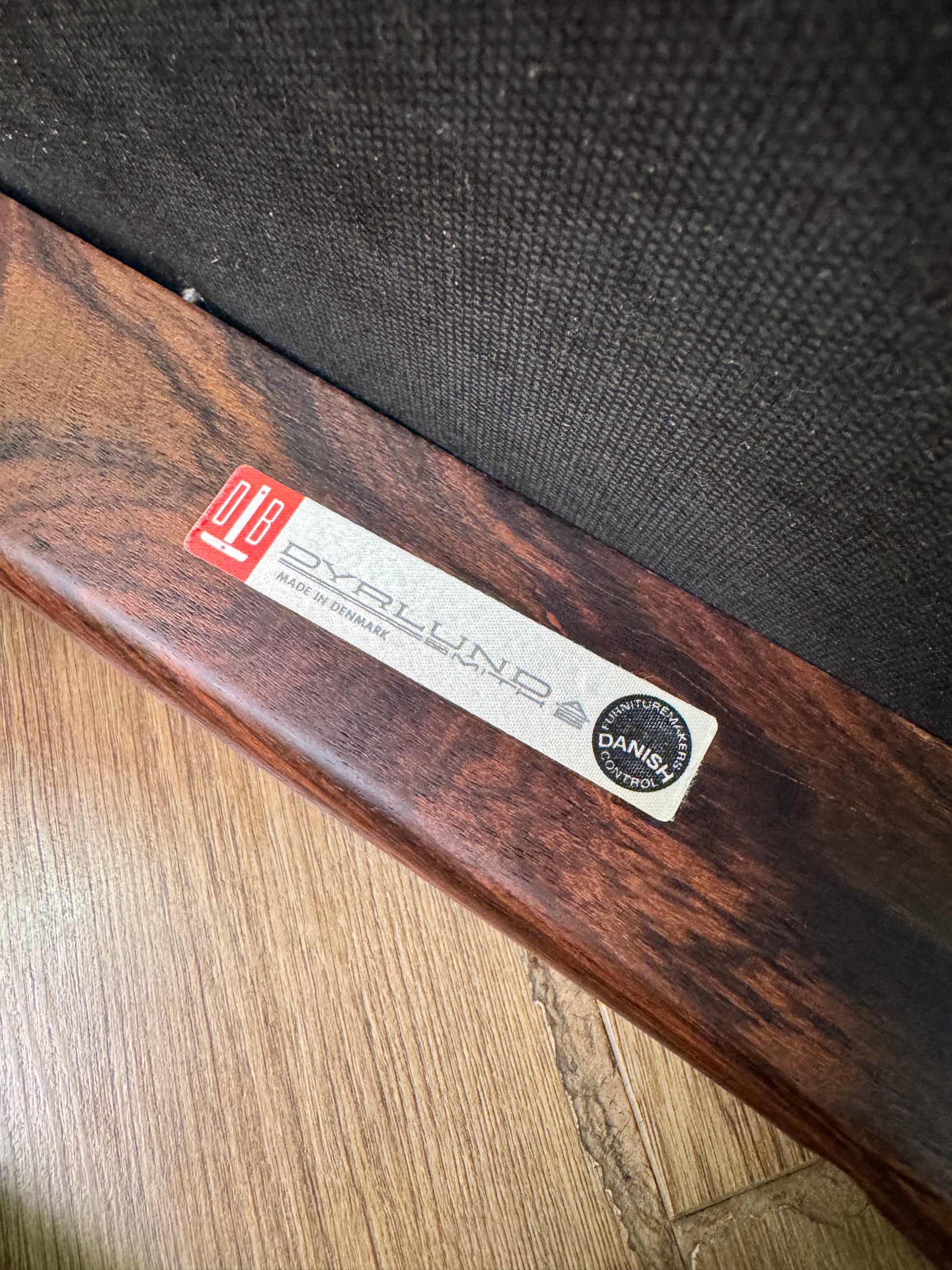 Dyrlund label to the underneath of the seats