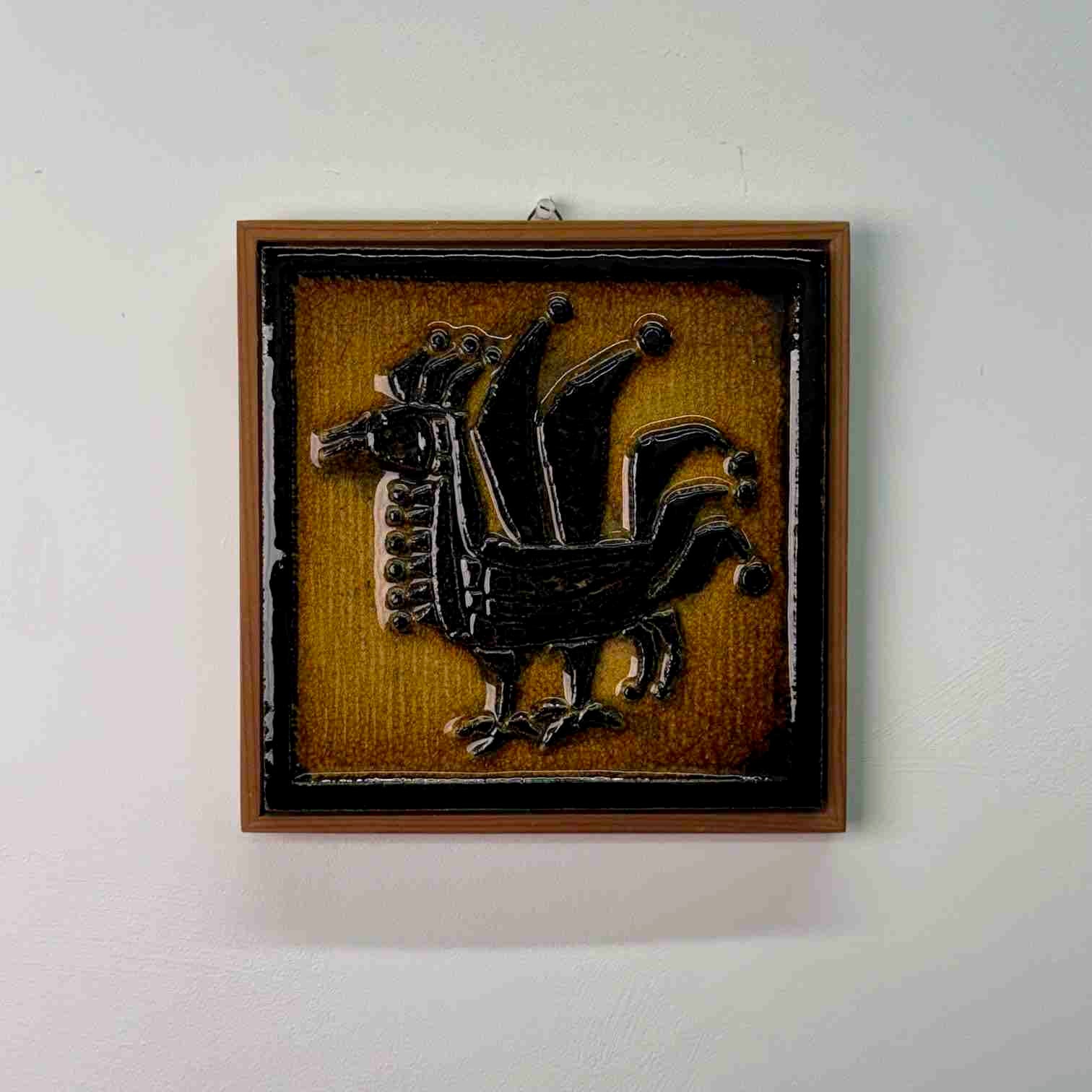 A fabulous 1970s stoneware wall plaque depicting a Viking boat