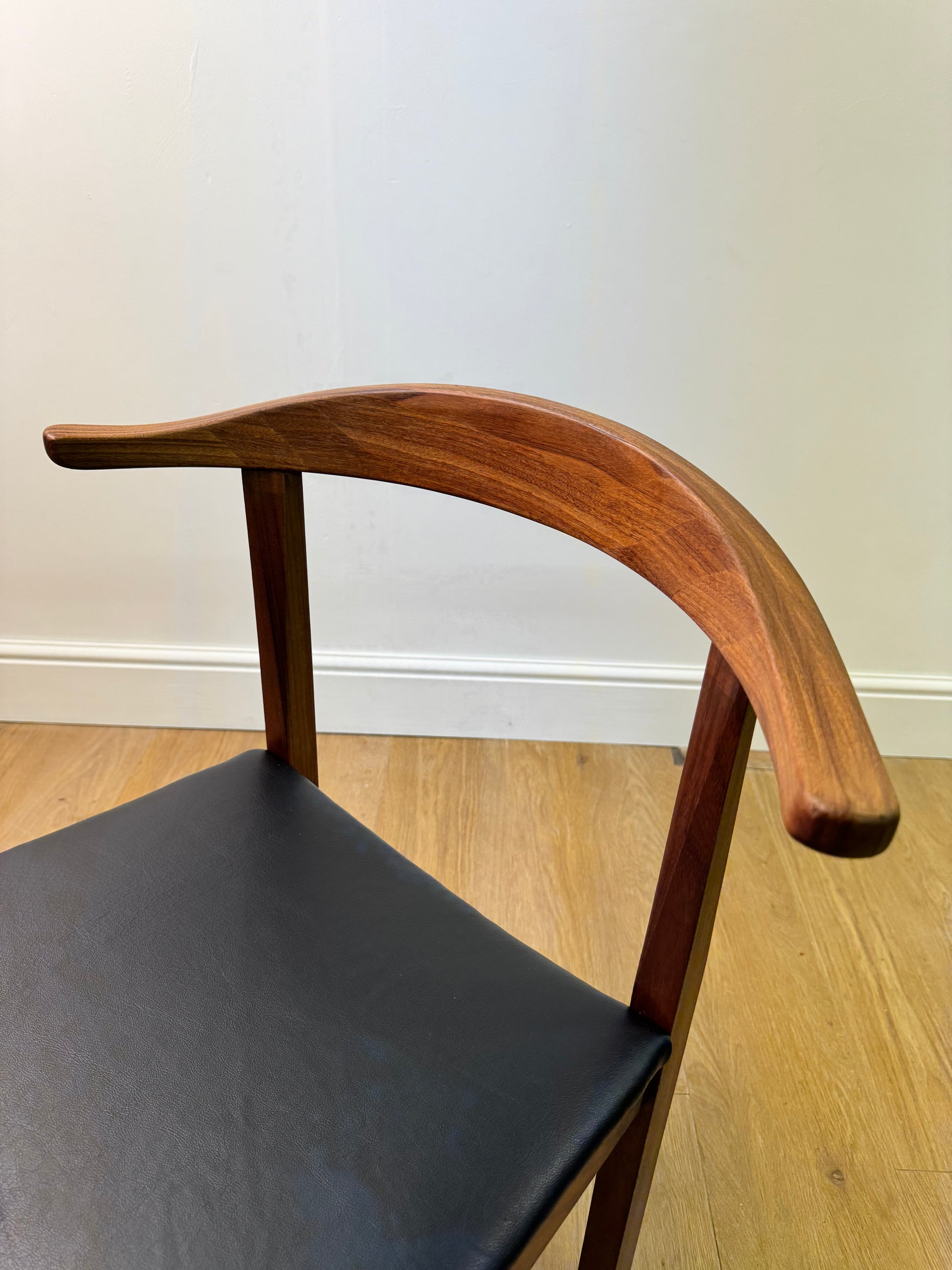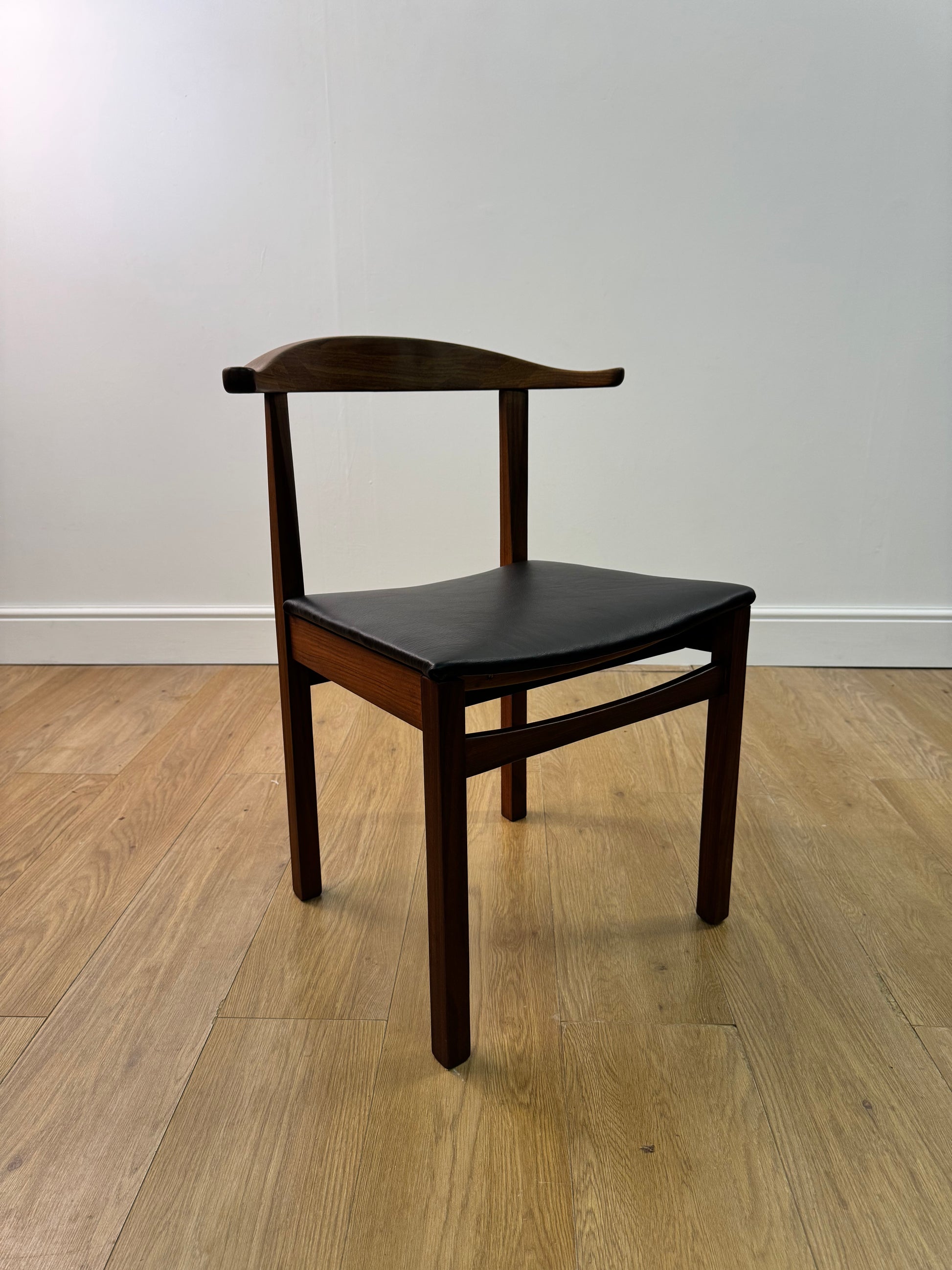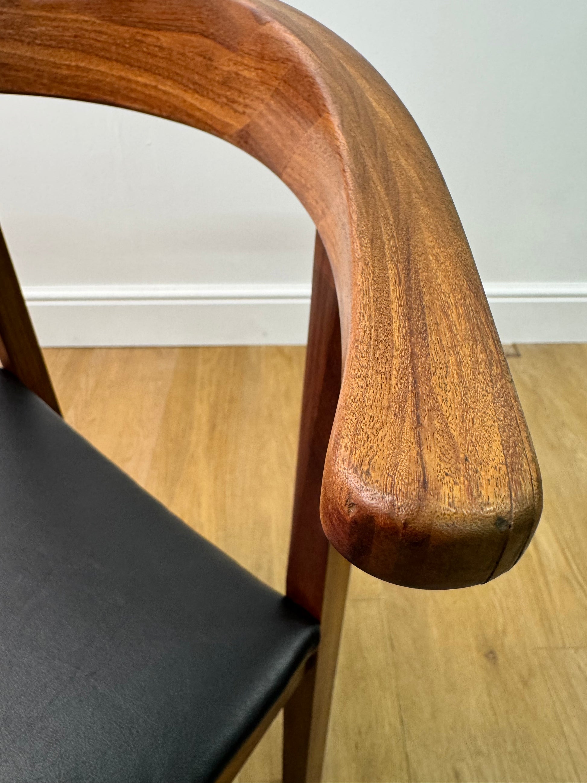 An unusual teak chair with cow horn back rest constructed in layers of laminated wood