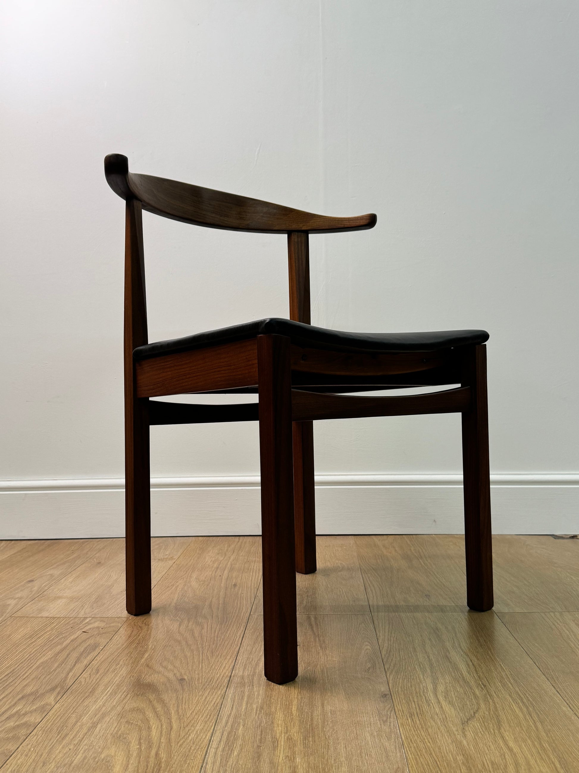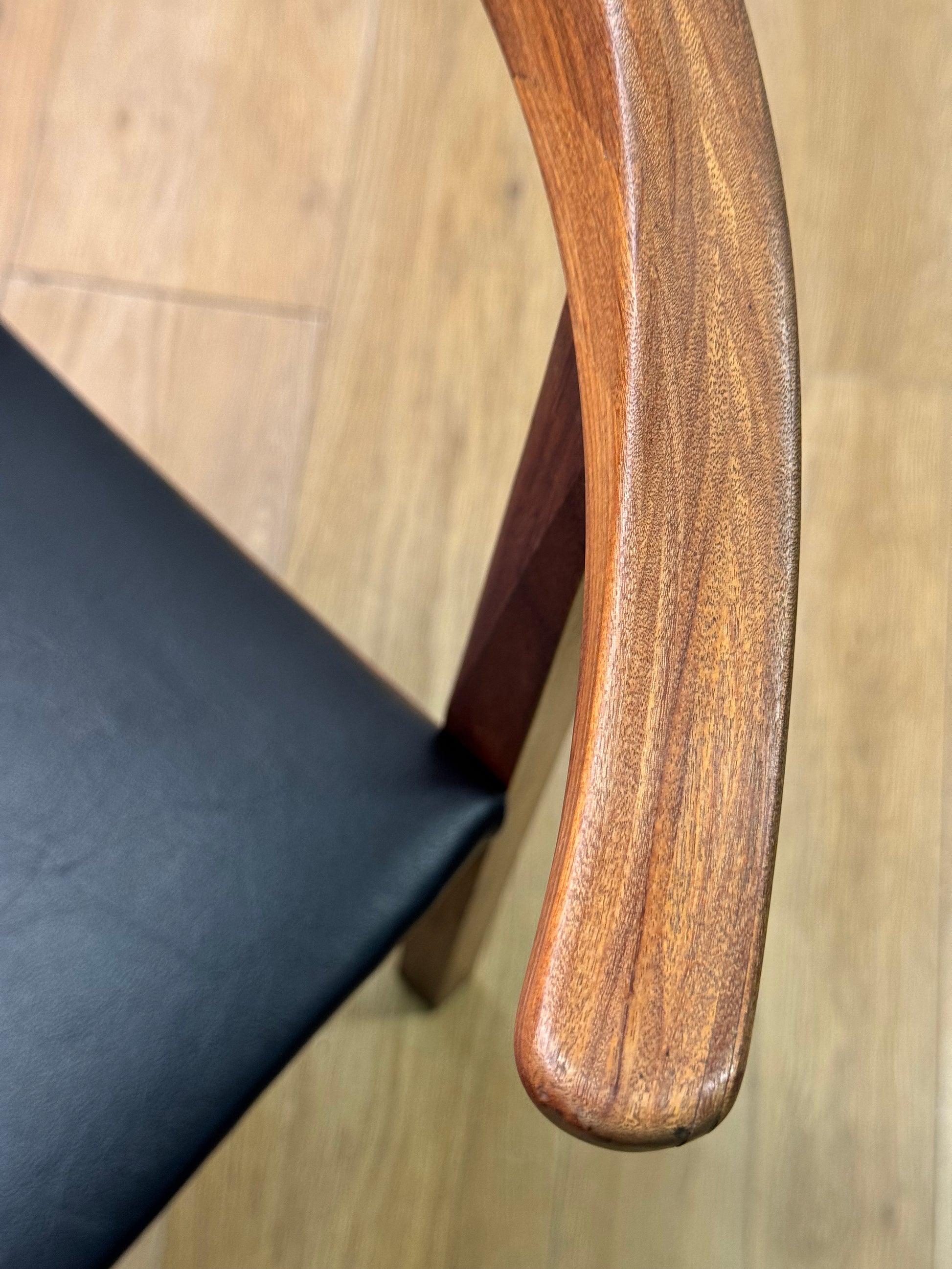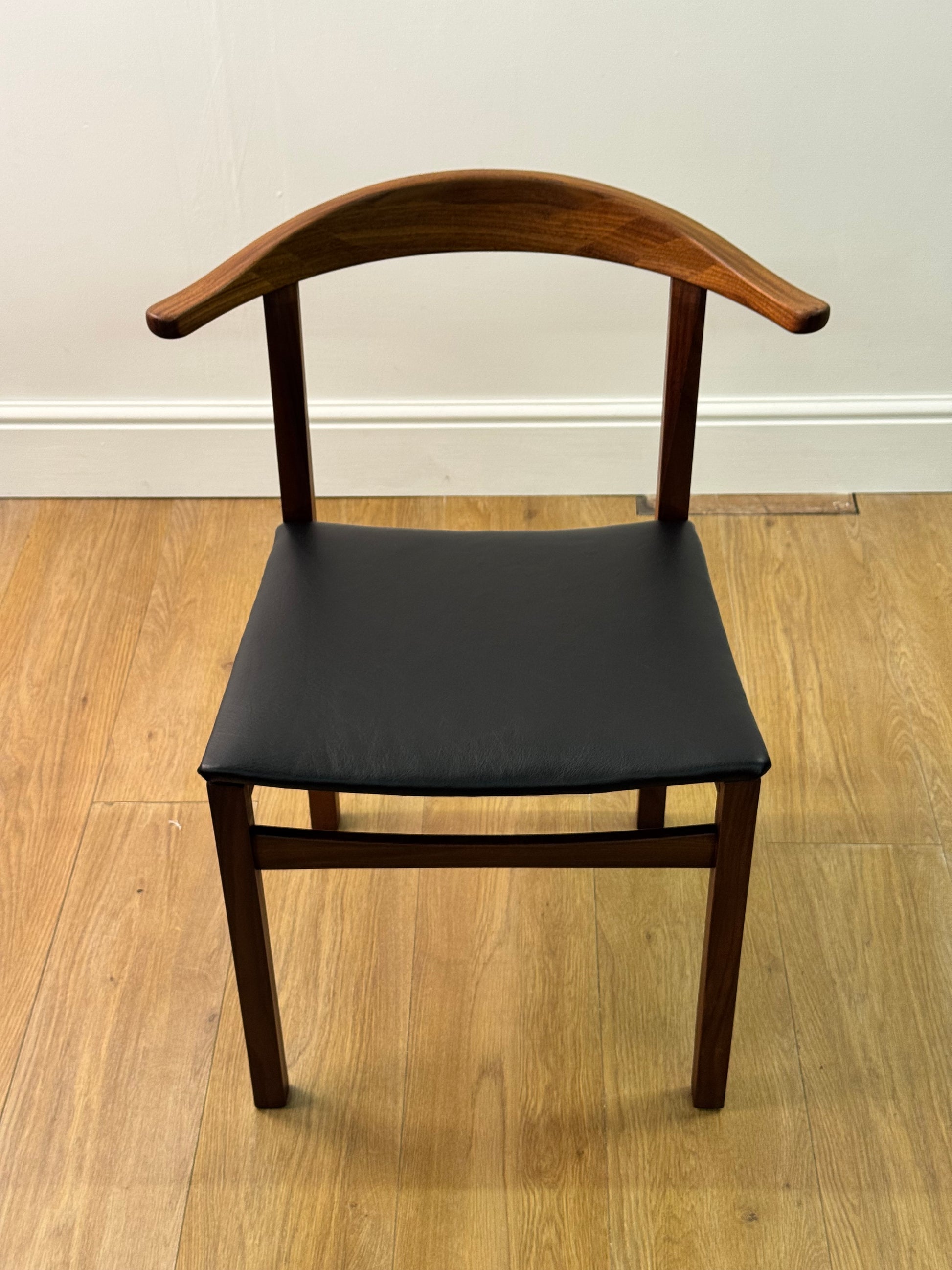 An unusual teak chair with cow horn back rest constructed in layers of laminated wood