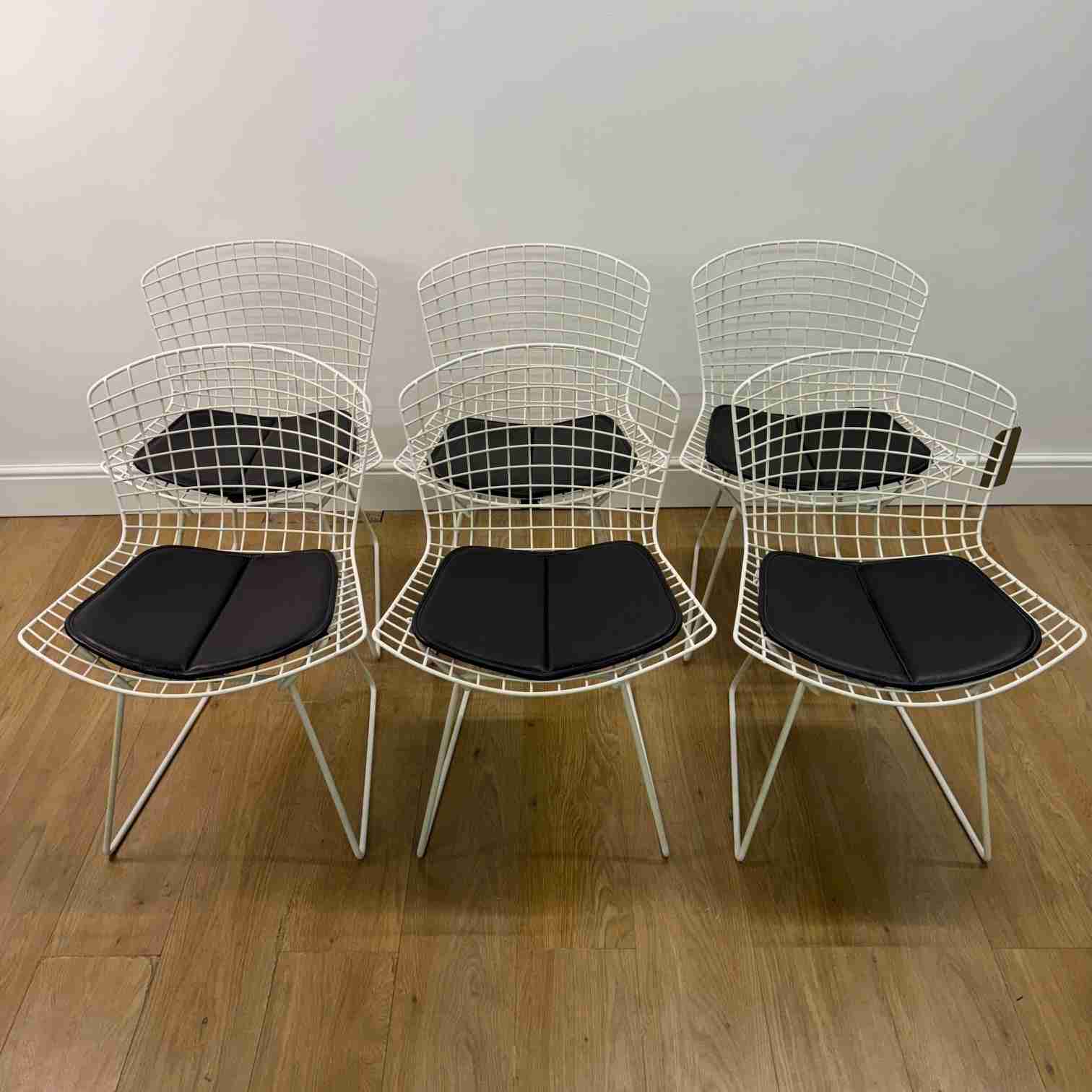 A set of 6 original white wire chairs designed by Harry Bertoia for Knoll 1952